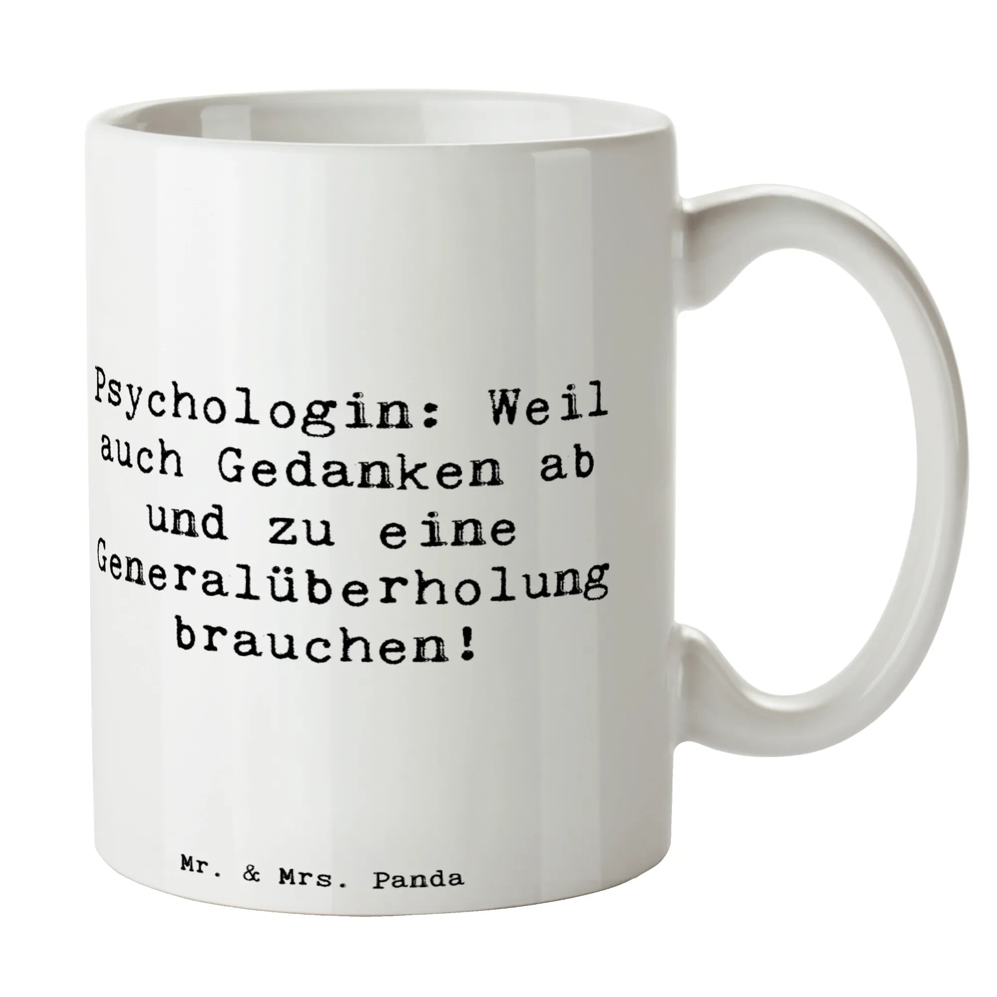 Du suchst nach dem perfekten Geschenk für einen Psychologen oder einfach nach einem schönen Kaffeebecher für dich selbst? Dann ist die wunderschöne Tasse "Psychologin: Weil auch Gedanken ab und zu eine Generalüberholung brauchen!" von Mr. & Mrs. Panda genau das Richtige für dich! Diese bezaubernde Keramiktasse ist nicht nur ein praktisches Accessoire für deinen Büroalltag, sondern bringt auch eine Prise Humor in dein Leben.