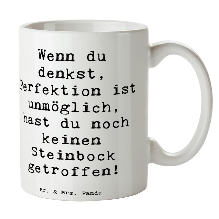 Die Mr. & Mrs. Panda Steinbock Tasse ist das perfekte Geschenk für alle, die in der magischen Welt der Sternzeichen schwelgen! Mit ihrem strahlenden Design und dem charmanten Spruch 'Wenn du denkst, Perfektion ist unmöglich, hast du noch keinen Steinbock getroffen!' ist sie nicht nur ein echter Hingucker, sondern bringt auch die einzigartigen Eigenschaften des Steinbocks zum Ausdruck.