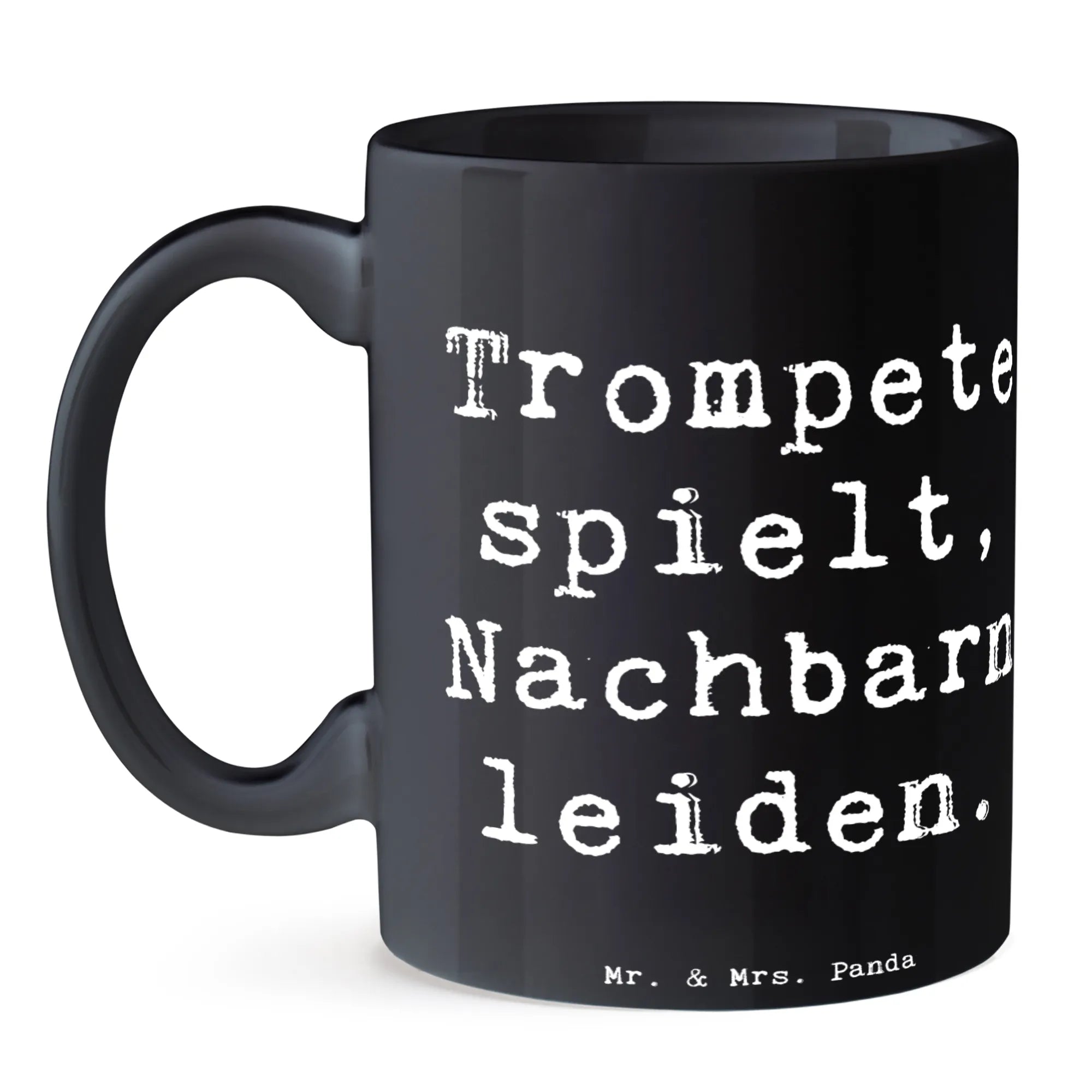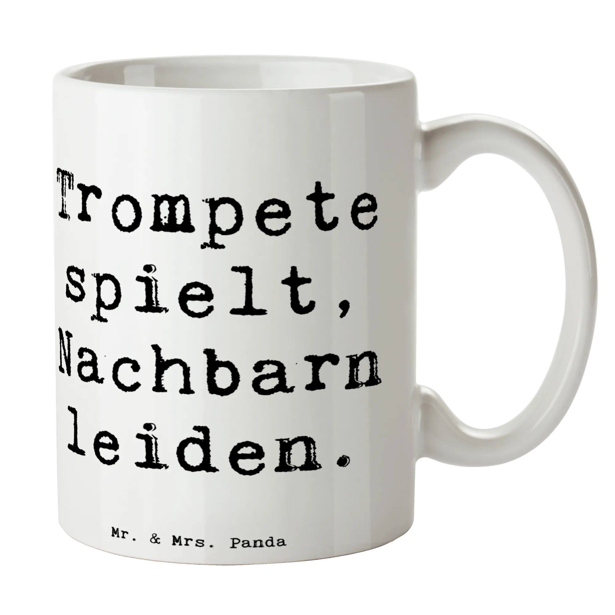 Suchst du ein Geschenk, das sitzt und lacht? Unsere Mr. & Mrs. Panda Tasse mit dem frechen Spruch „Trompete spielt, Nachbarn leiden.“ ist genau das richtige für Trompeter, Jazzfans und alle Freunde der Blasmusik. 🎺 Die Kombination aus jazzigem Motiv, kräftiger Illustration und witzigem Text macht diese Kaffeetasse zum Hingucker – egal ob im Proberaum, Büro oder zuhause.