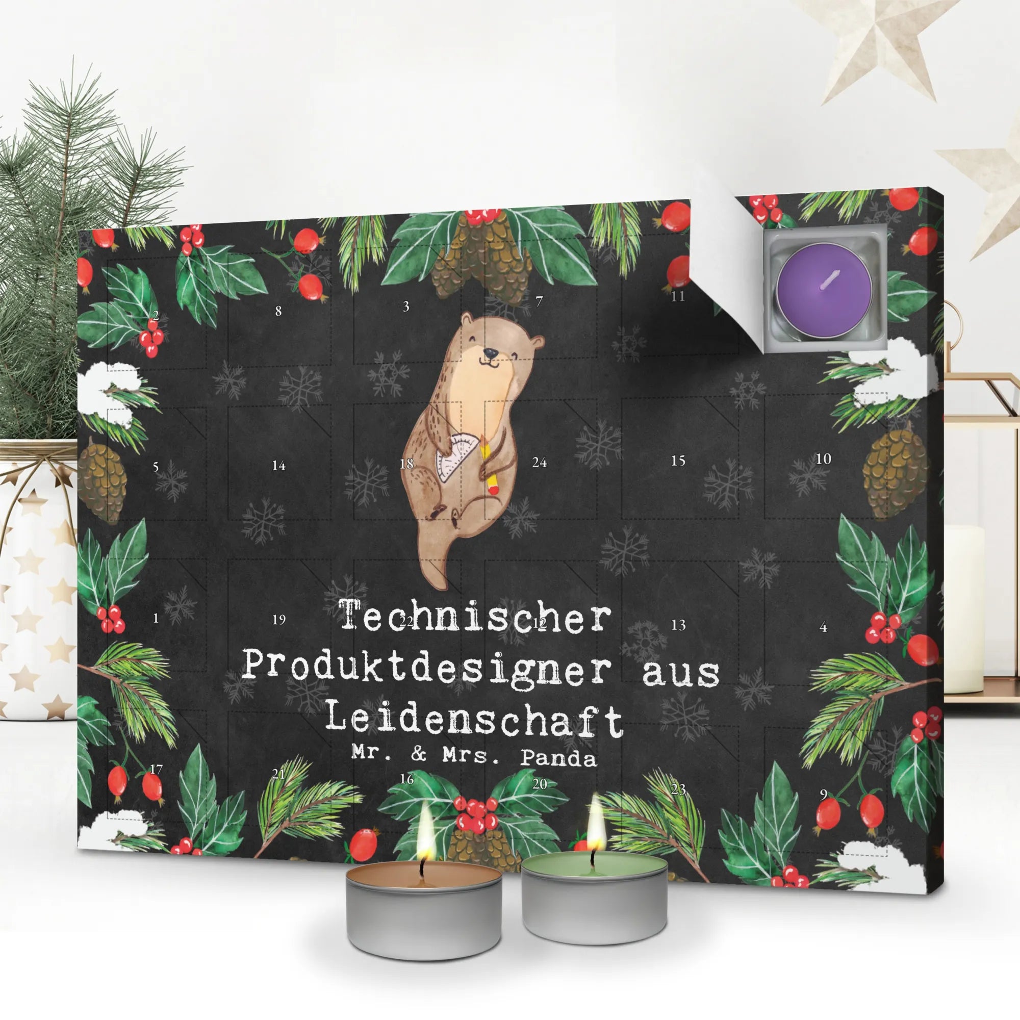 Der Duftkerzen Adventskalender mit dem Motiv 'Technischer Produktdesigner aus Leidenschaft' von Mr. & Mrs. Panda ist das perfekte Geschenk für alle kreativen Köpfe und Berufstätigen in der technischen Gestaltung. 🌟 Er bringt nicht nur einen Hauch von festlicher Stimmung in die kalte Jahreszeit, sondern auch die Möglichkeit, jeden Tag einen neuen, wundervollen Duft zu entdecken. Mit liebevoll gestalteten Aquarellbildern von Mrs. Panda, erscheint der Kalender in einem stabilen Design aus 300 Gramm Karton, das sowohl zum Aufstellen als auch zum Aufhängen geeignet ist.✨