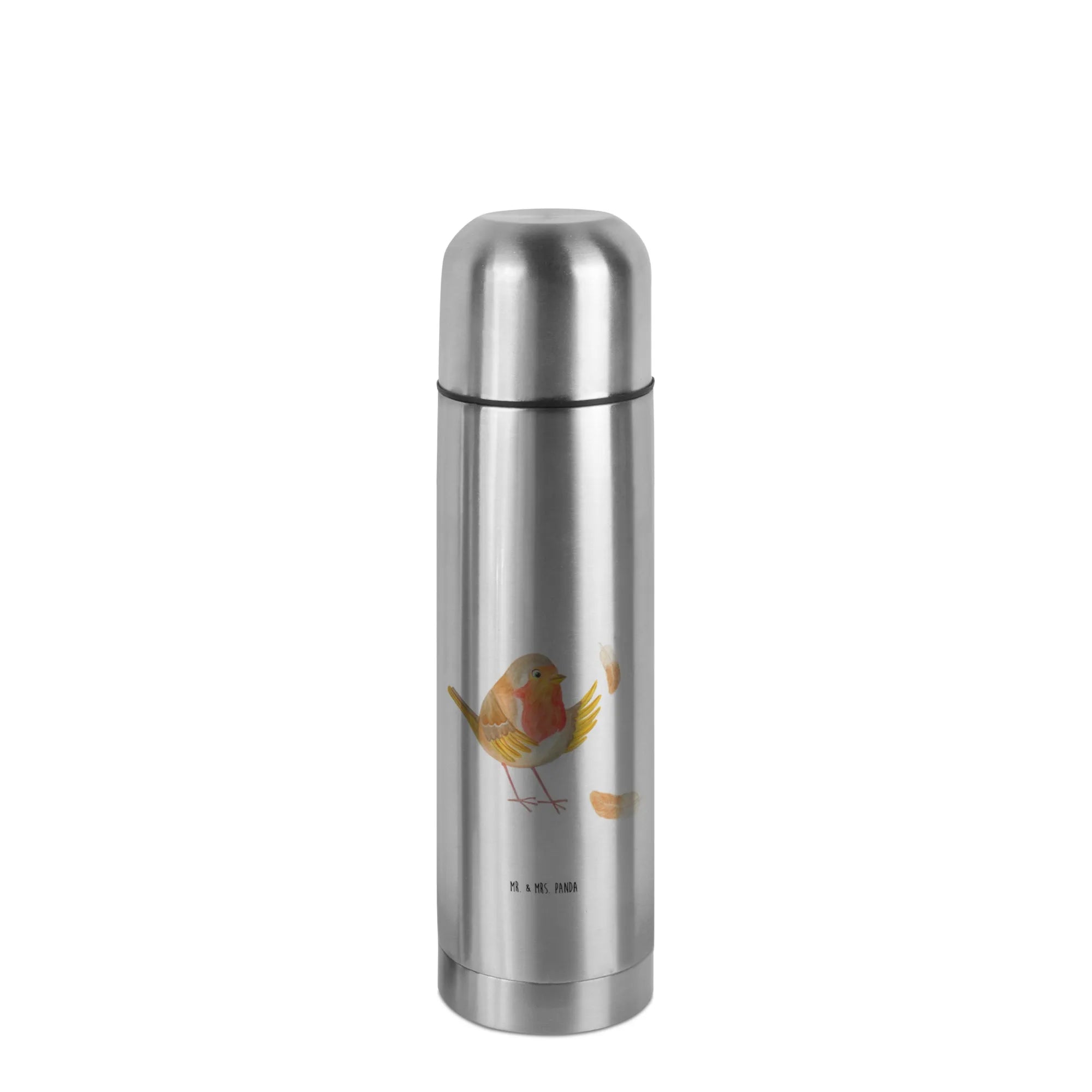 Das niedliche Rotkehlchen, das von Mrs. Panda mit viel Liebe handgezeichnet wurde, sitzt umgeben von bunten Federn und strahlt eine friedliche Ruhe aus. Diese Thermoskanne hält deine Getränke bis zu 24 Stunden heiß und begleitet dich beim Wandern, im Büro oder bei einem Picknick im Park.