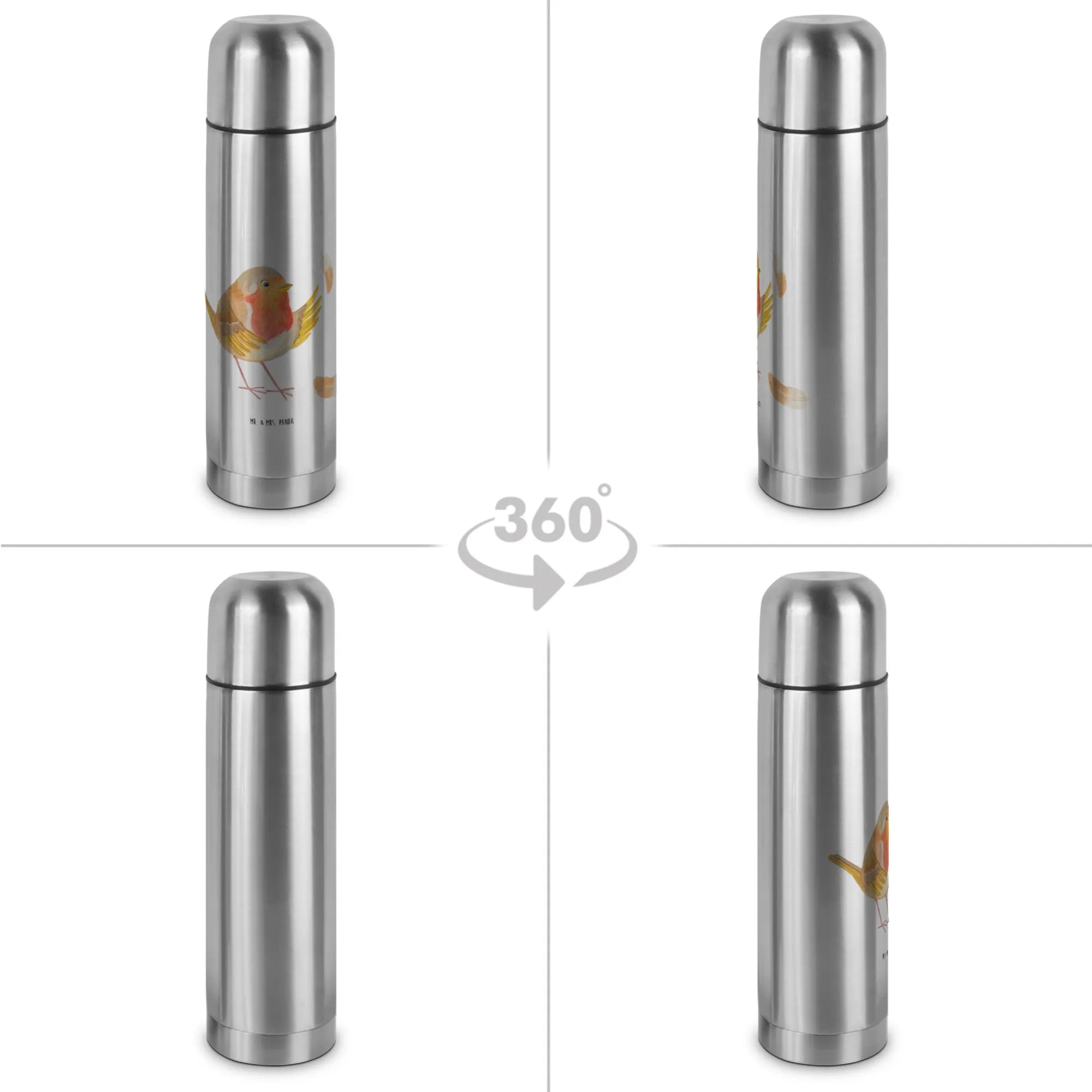 Die wunderschöne Thermoskanne "Rotkehlchen mit Federn" aus der Small World Kollektion von Mr. & Mrs. Panda ist der perfekte Begleiter für all deine Abenteuer! Sie kombiniert nicht nur Funktionalität, sondern auch eine liebevolle Gestaltung, die Herzen höher schlagen lässt.