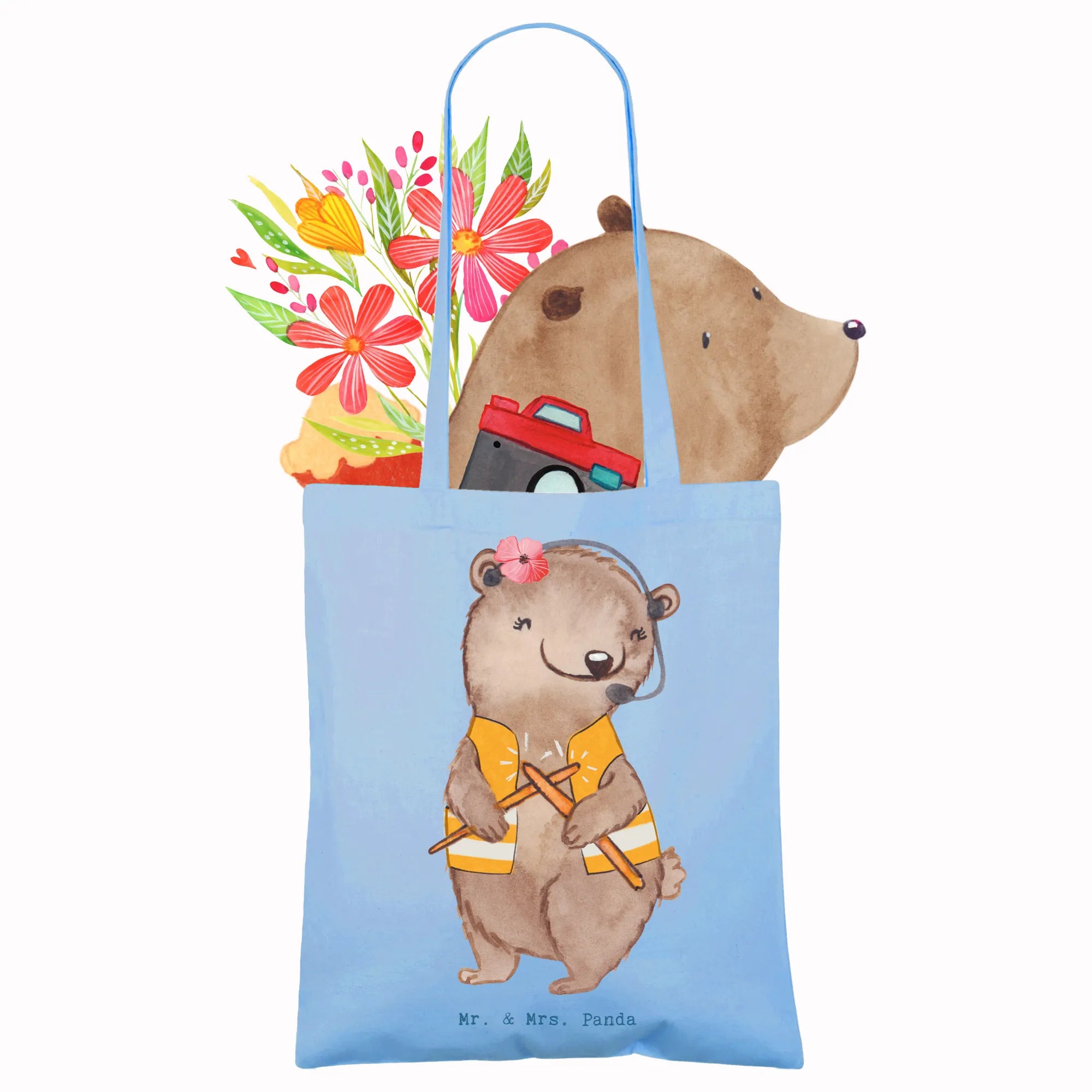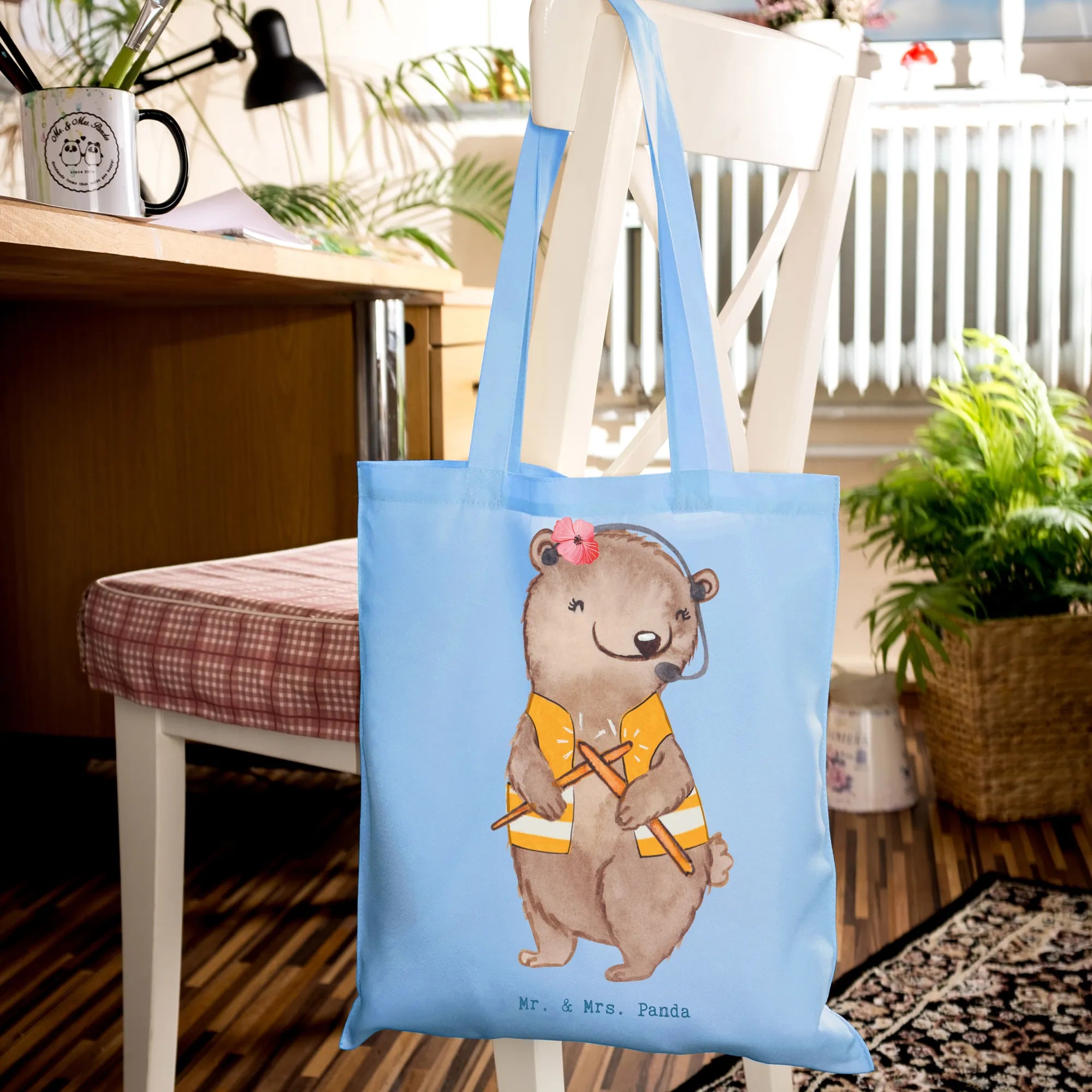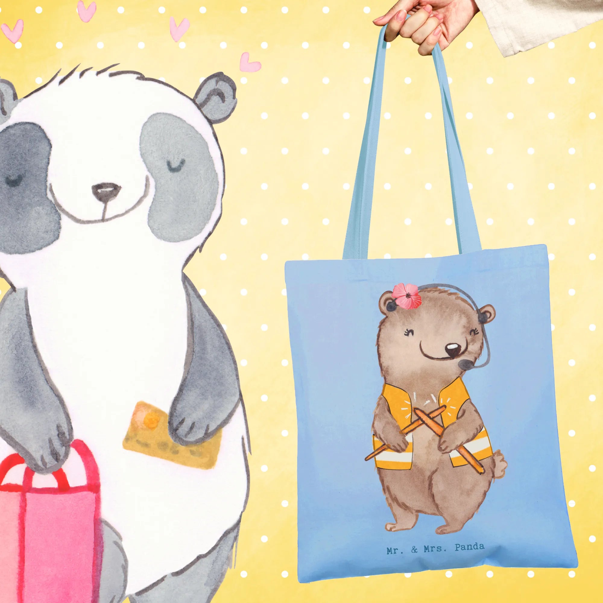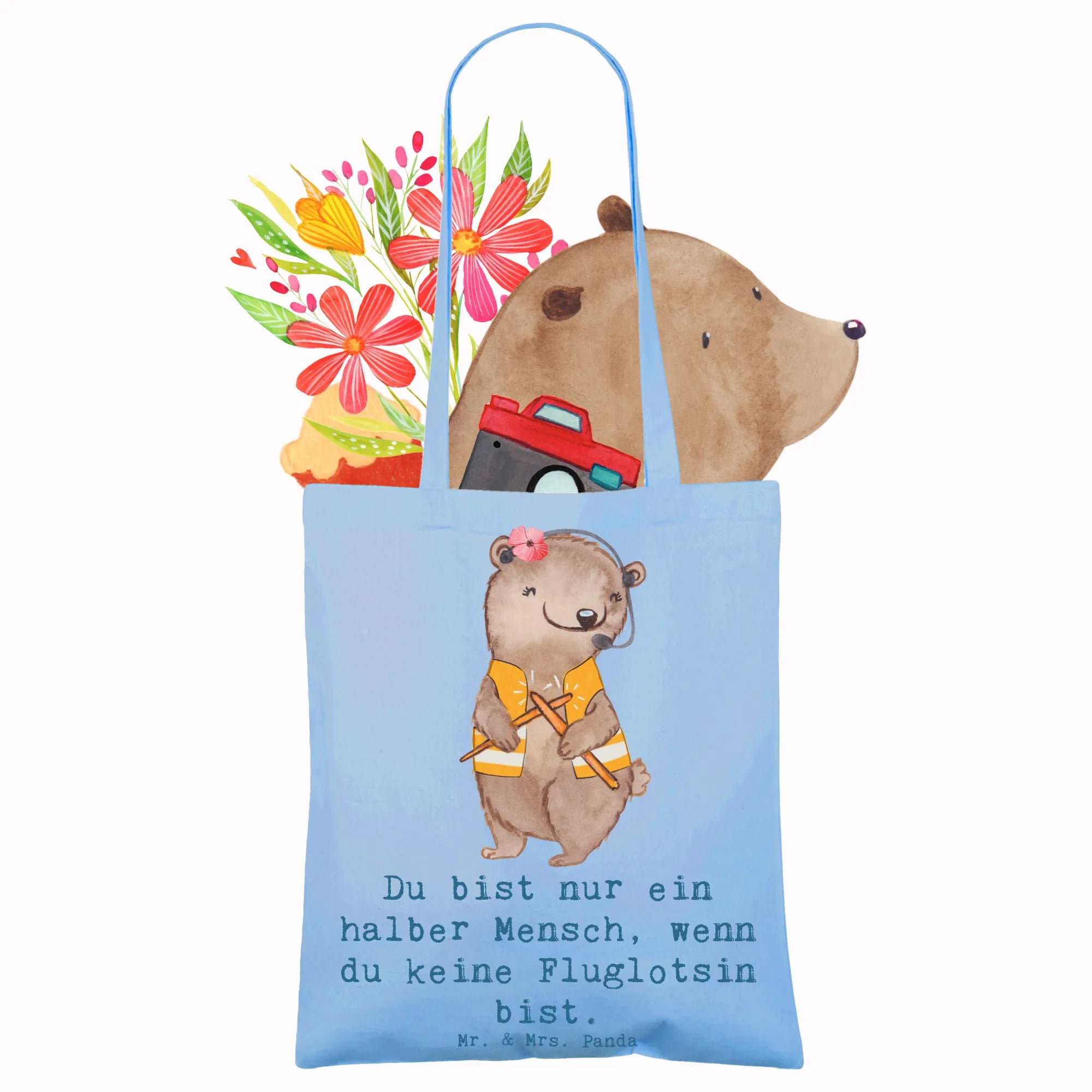 Eine wunderschöne Tragetasche von Mr. & Mrs. Panda: Die Tragetasche "Fluglotsin mit Herz" ist ein liebevoll gestaltetes Geschenk für alle, die die Luftfahrt und Menschen gleichermaßen mögen. Das handgezeichnete Aquarellmotiv zeigt eine niedliche Fluglotsin mit Headset und einem kleinen Herz – ein echter Blickfang für Alltag, Uni oder Shopping.