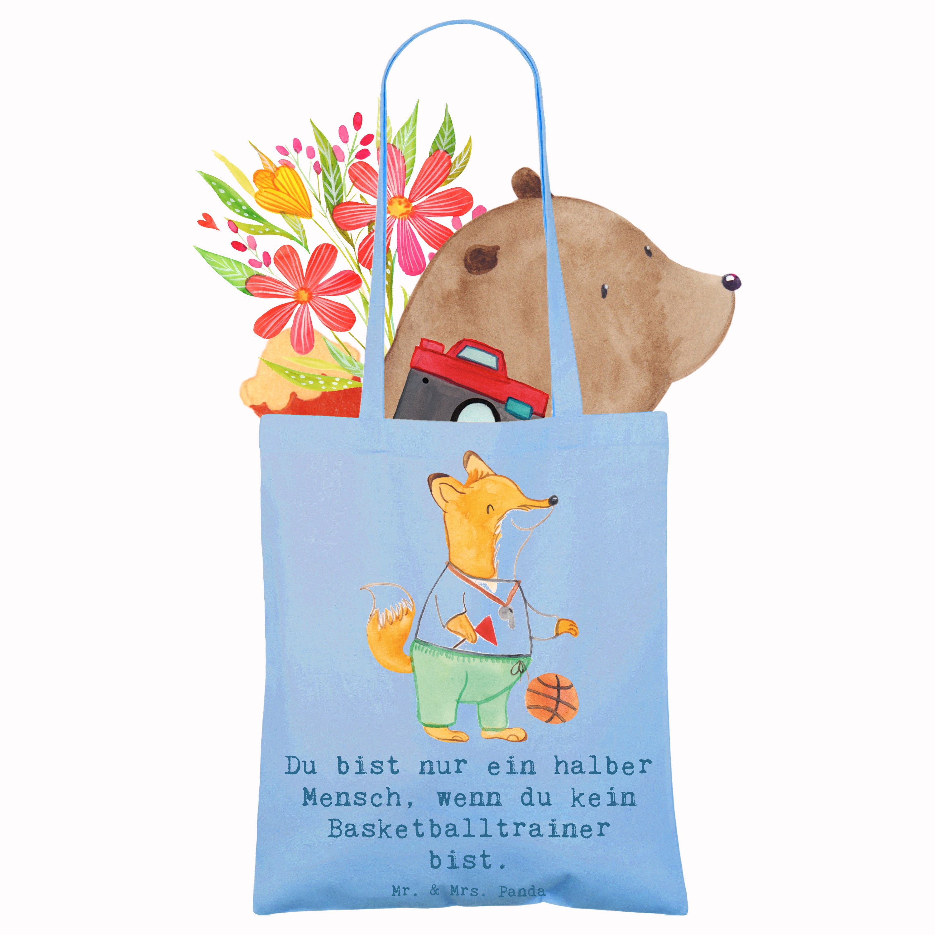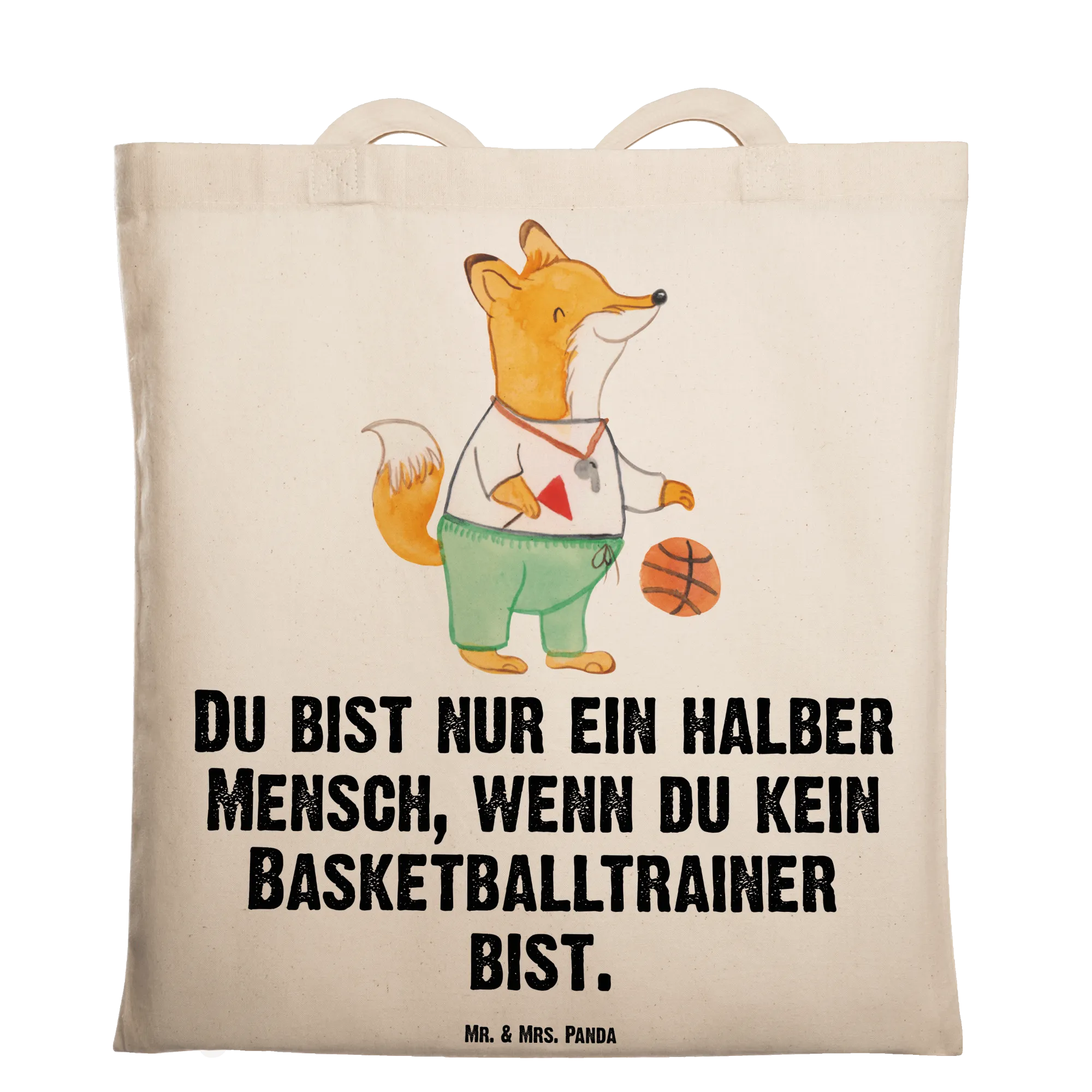 Eine liebevolle Tragetasche von Mr. & Mrs. Panda – perfekt für alle Basketballfans und Trainer! Unser süßer Fuchs mit Trillerpfeife und Basketball begeistert mit einem warmherzigen Spruch: „Du bist nur ein halber Mensch, wenn du kein Basketballtrainer bist.“ Diese Tasche ist ein großartiges Geschenk für Trainer, Vereinsmitglieder oder Kollegen und bringt auf charmante Weise Wertschätzung und Humor zusammen.