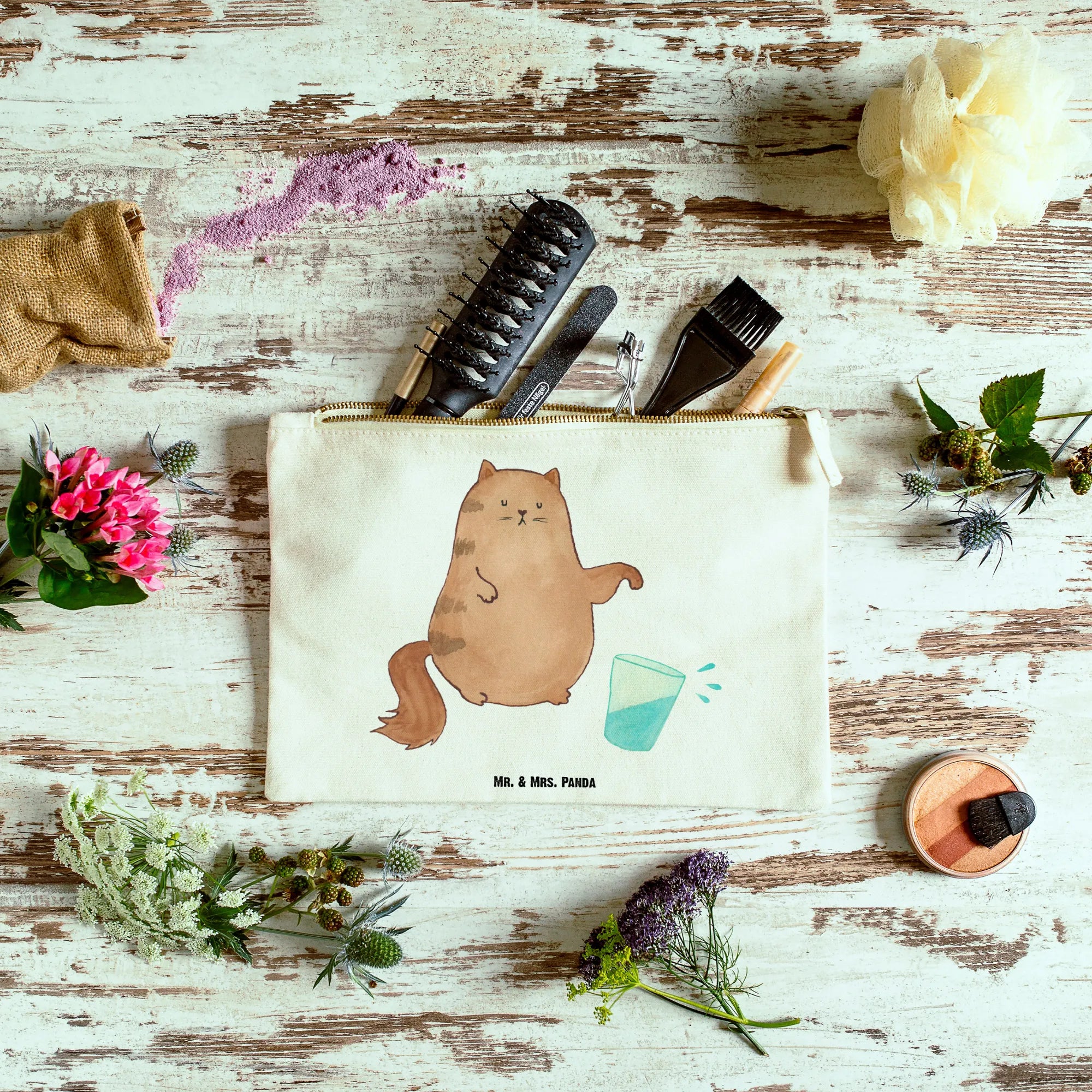 torebka na makijaż kot szklanka wody - Größe S Klein - z napisem