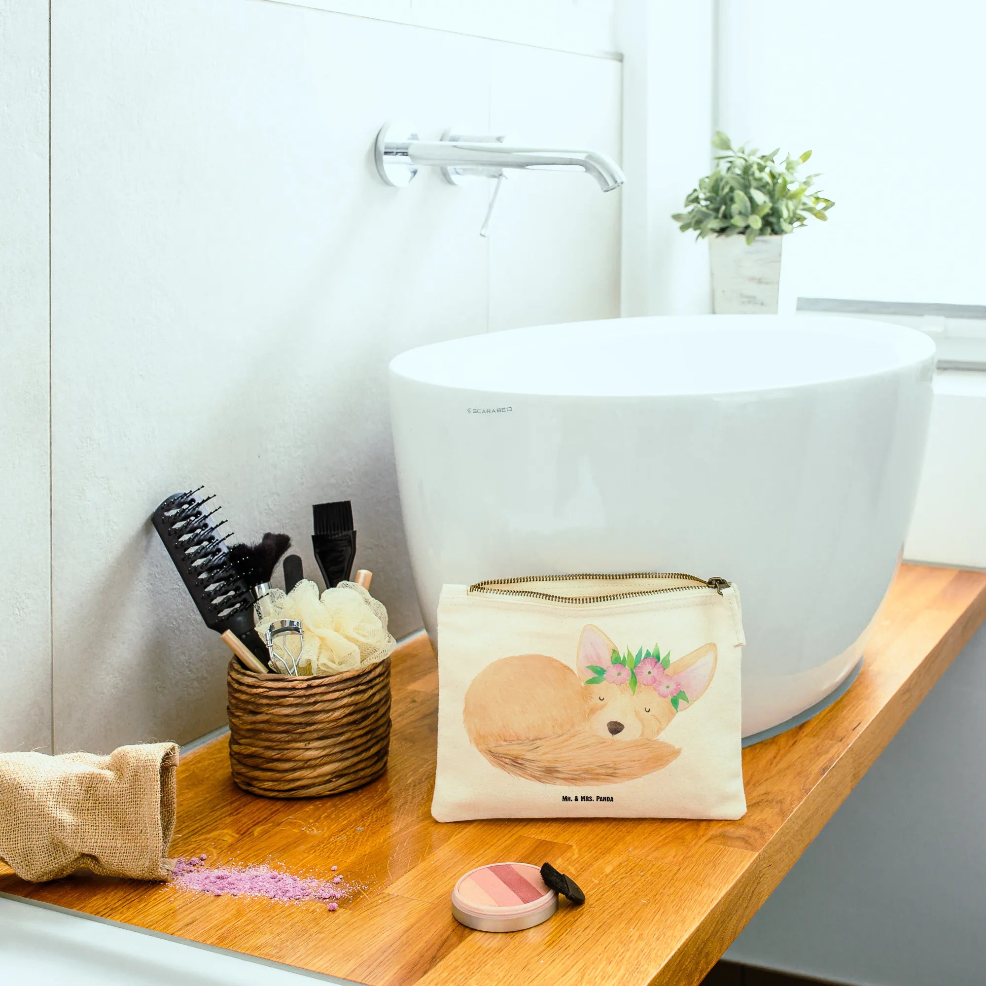 torebka na makijaż lis pustynny kwiaty Waschbeutel, Schminkbeutel, beauty case, utensilientasche, Schminktasche, Waschtasche, Kosmetiktasche, pencil case, Mäppchen, Stiftemäppchen, aufbewahrungstasche, beauty tasche, Kulturtasche, Etui, Federmappe, aufbewahrungsbeutel, Schlampermäppchen, Schminktäschchen, Kosmetikbeutel, Kulturbeutel, kosmetiktäschchen, pinsel tasche, toiletry bag, Afrika, Wildtiere, Glücklich, Wüstenfuchs, Blumen, Blumenkranz, Wüste