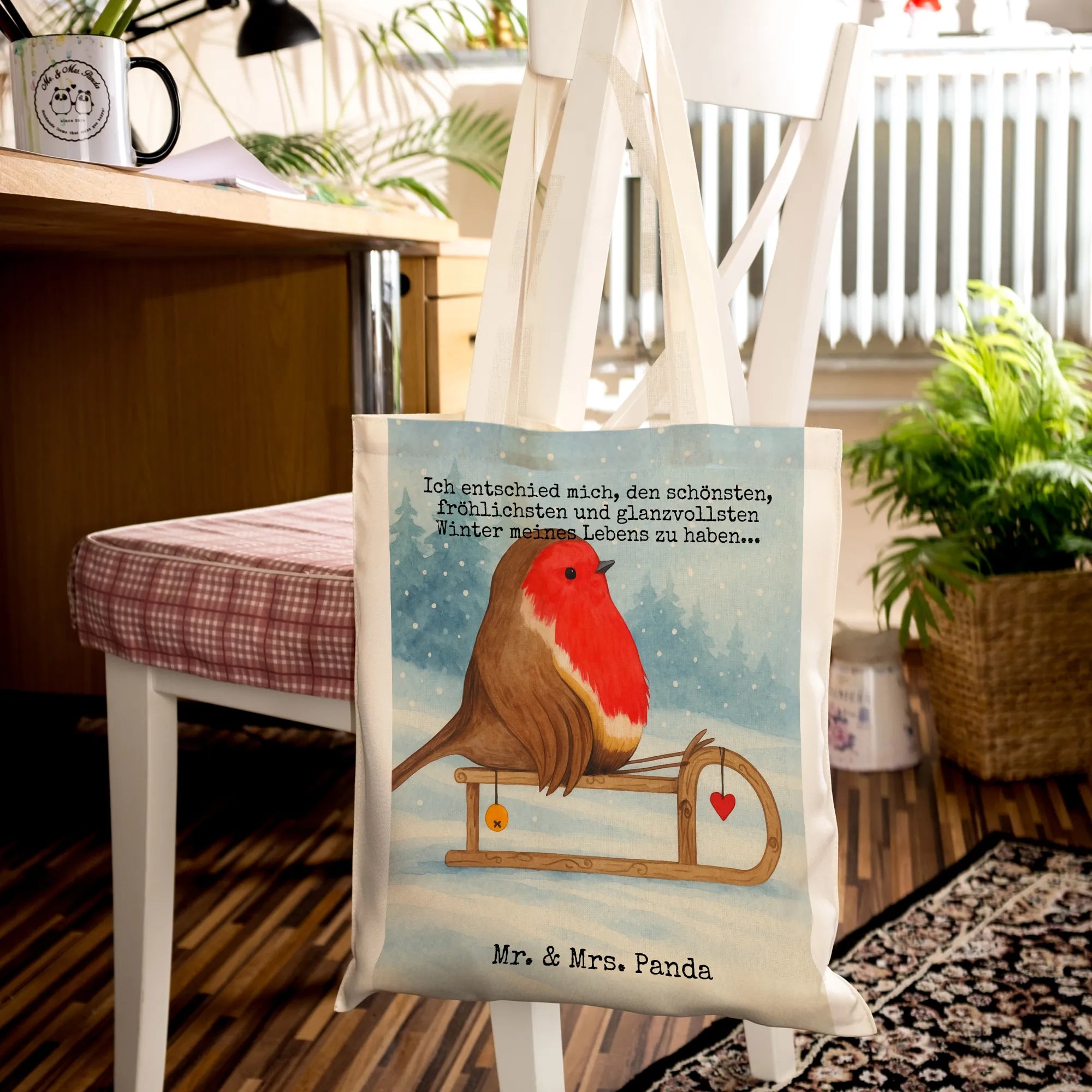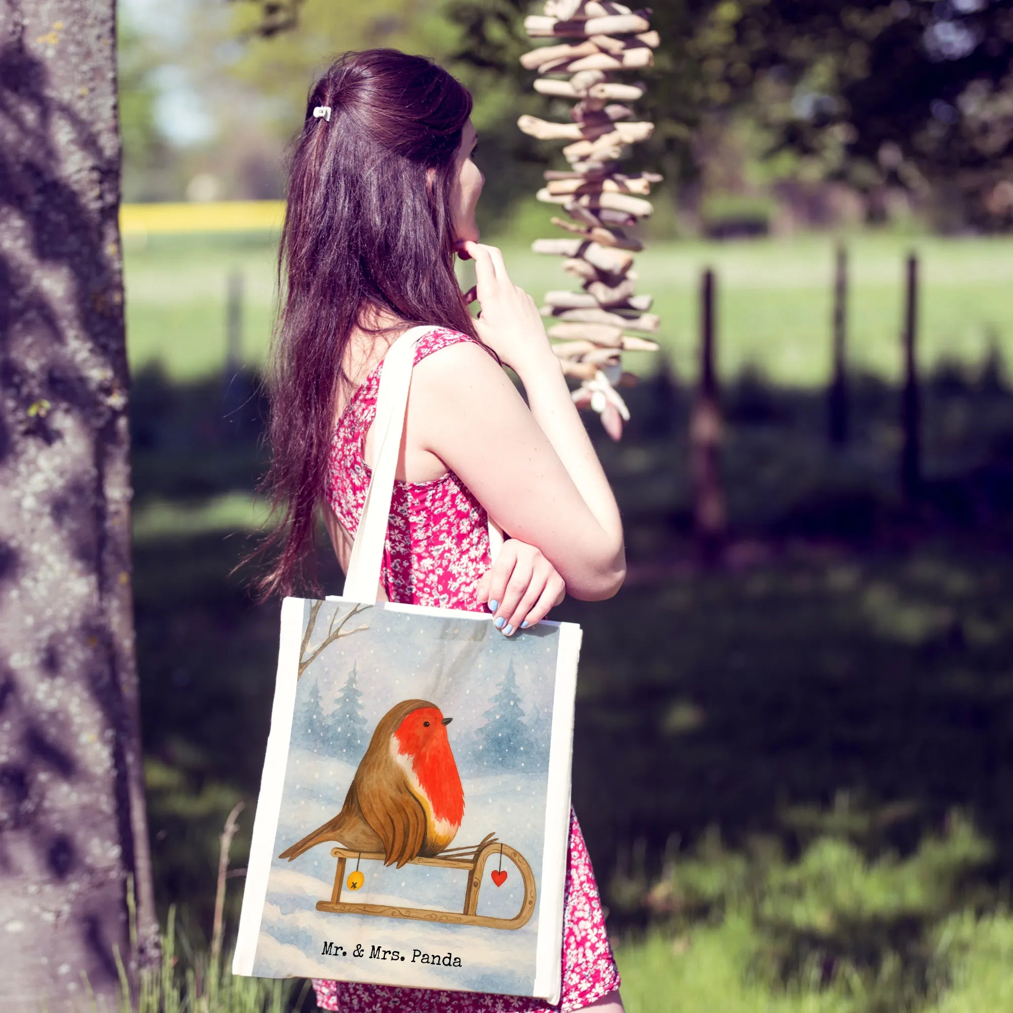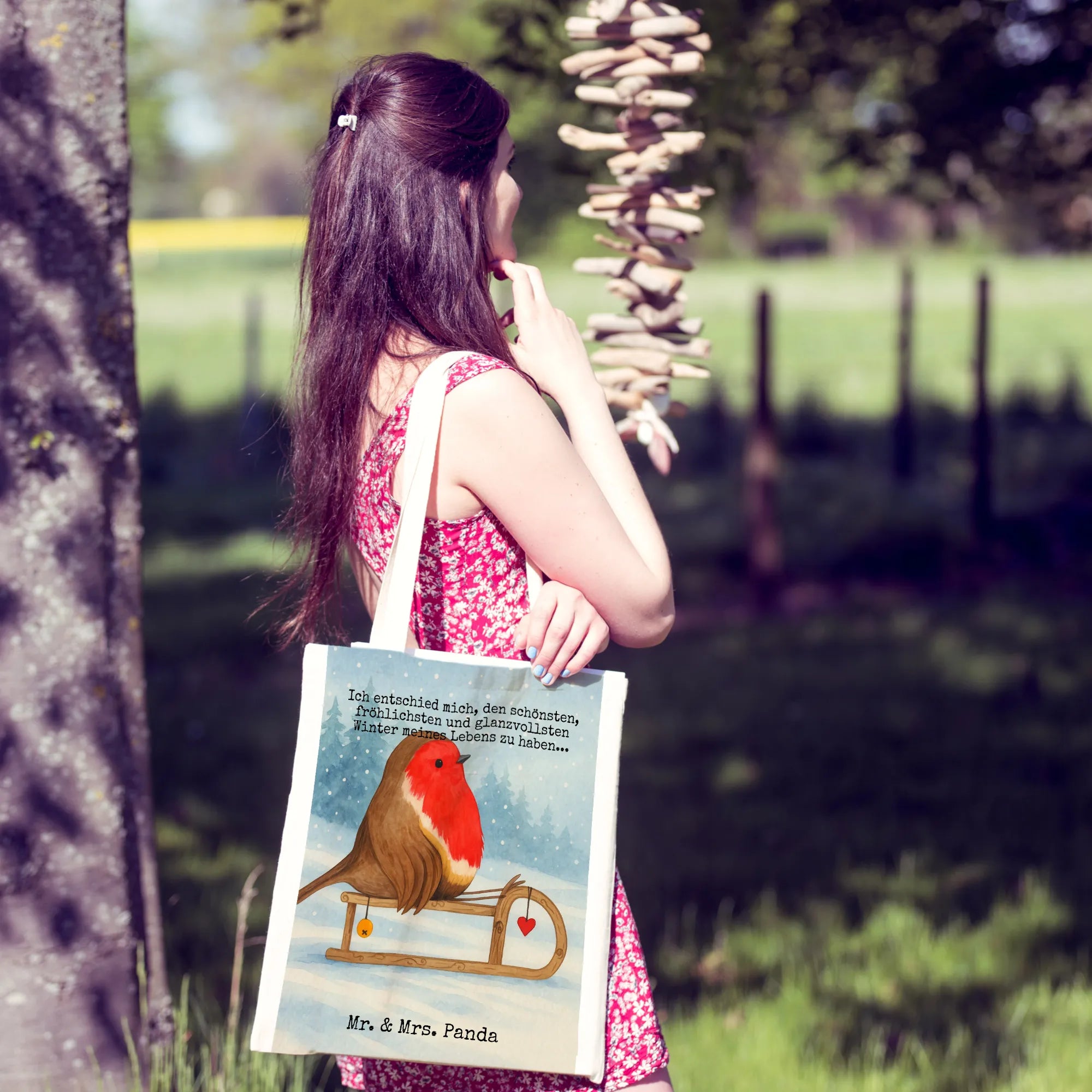 Tragetasche Rotkehlchen Schlitten Design - mit Spruch