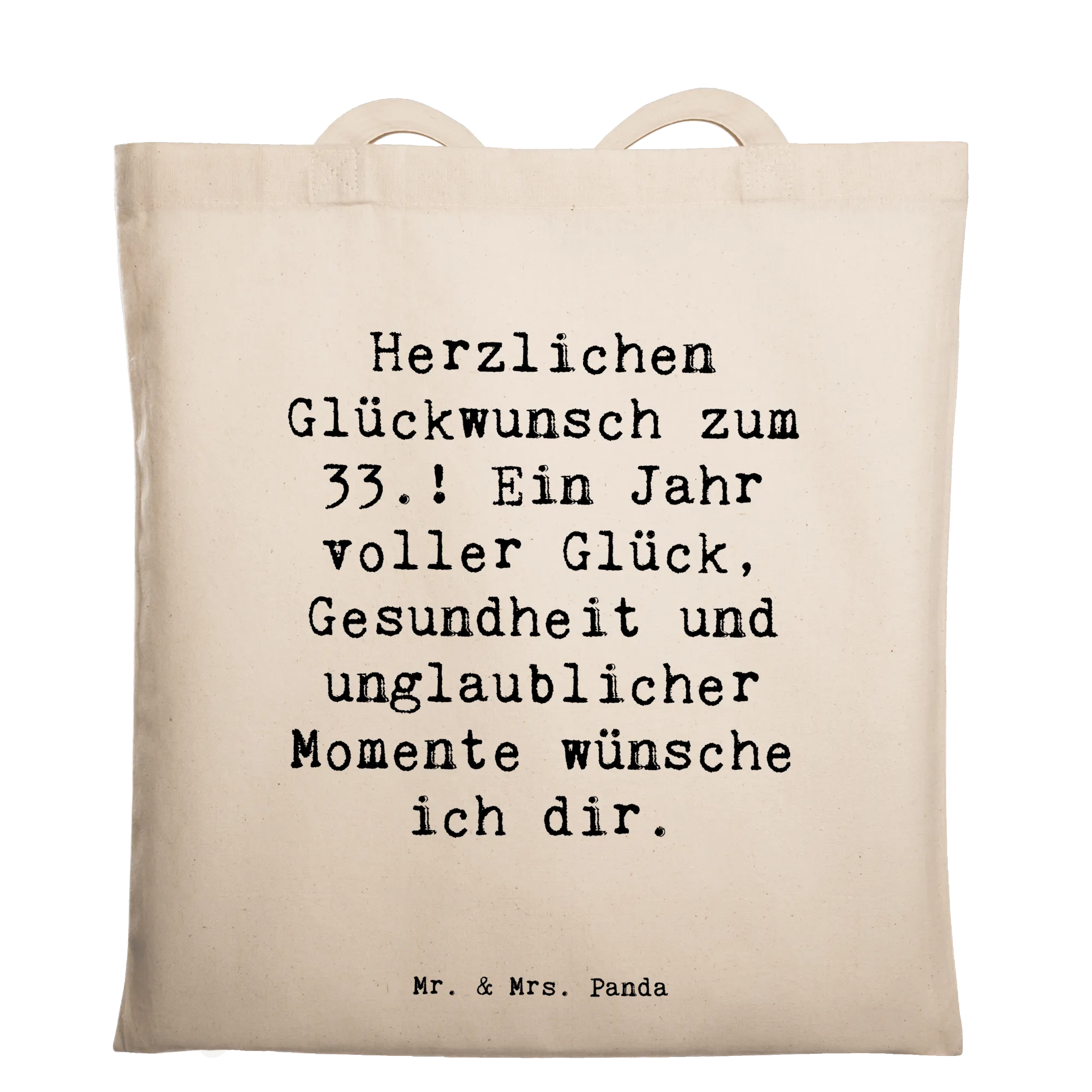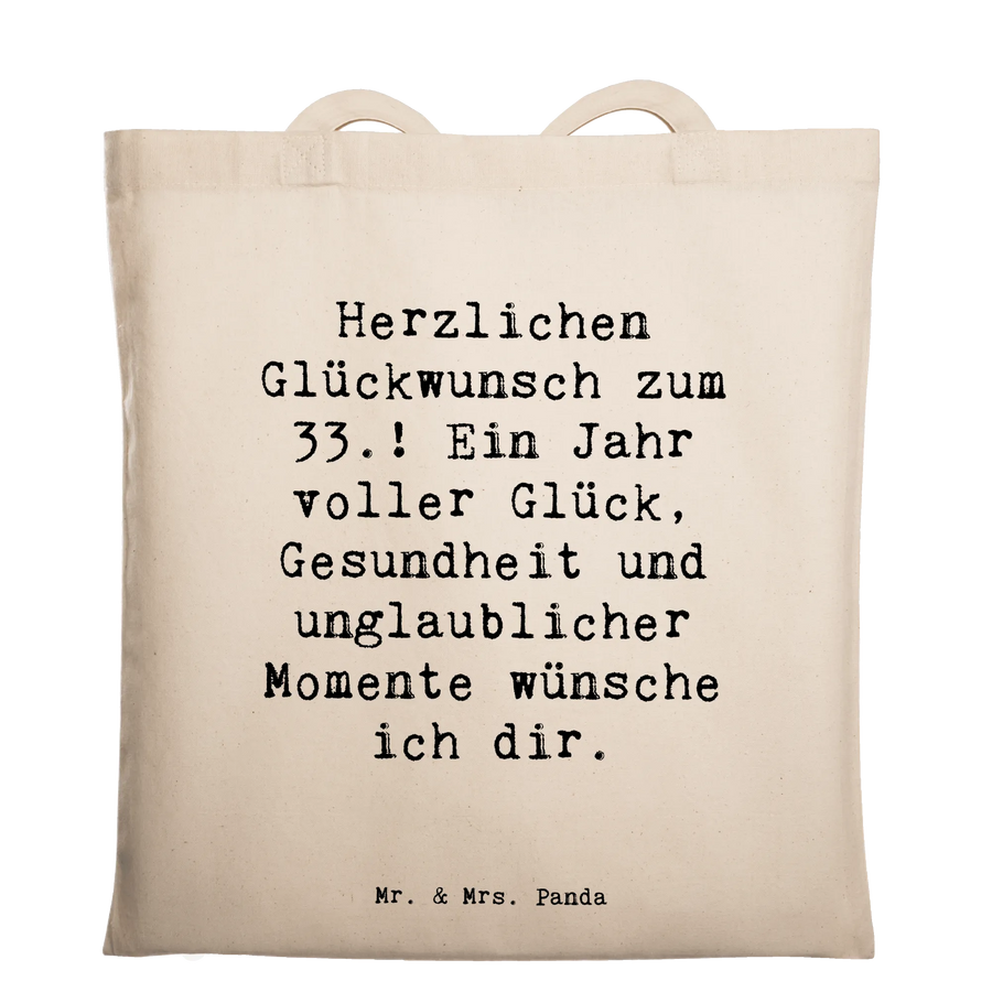 Finde bei Mr. & Mrs. Panda die ideale Auswahl an Geburtstagspräsenten, die in Erinnerung bleiben – diese Tragetasche ist ein liebevoller Begleiter für den 33. Geburtstag.