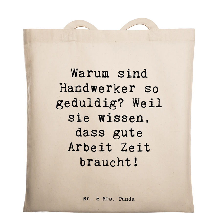 Tragetasche Spruch Warum sind Handwerker so geduldig? Weil sie wissen, dass gute Arbeit Zeit braucht! - Transparent