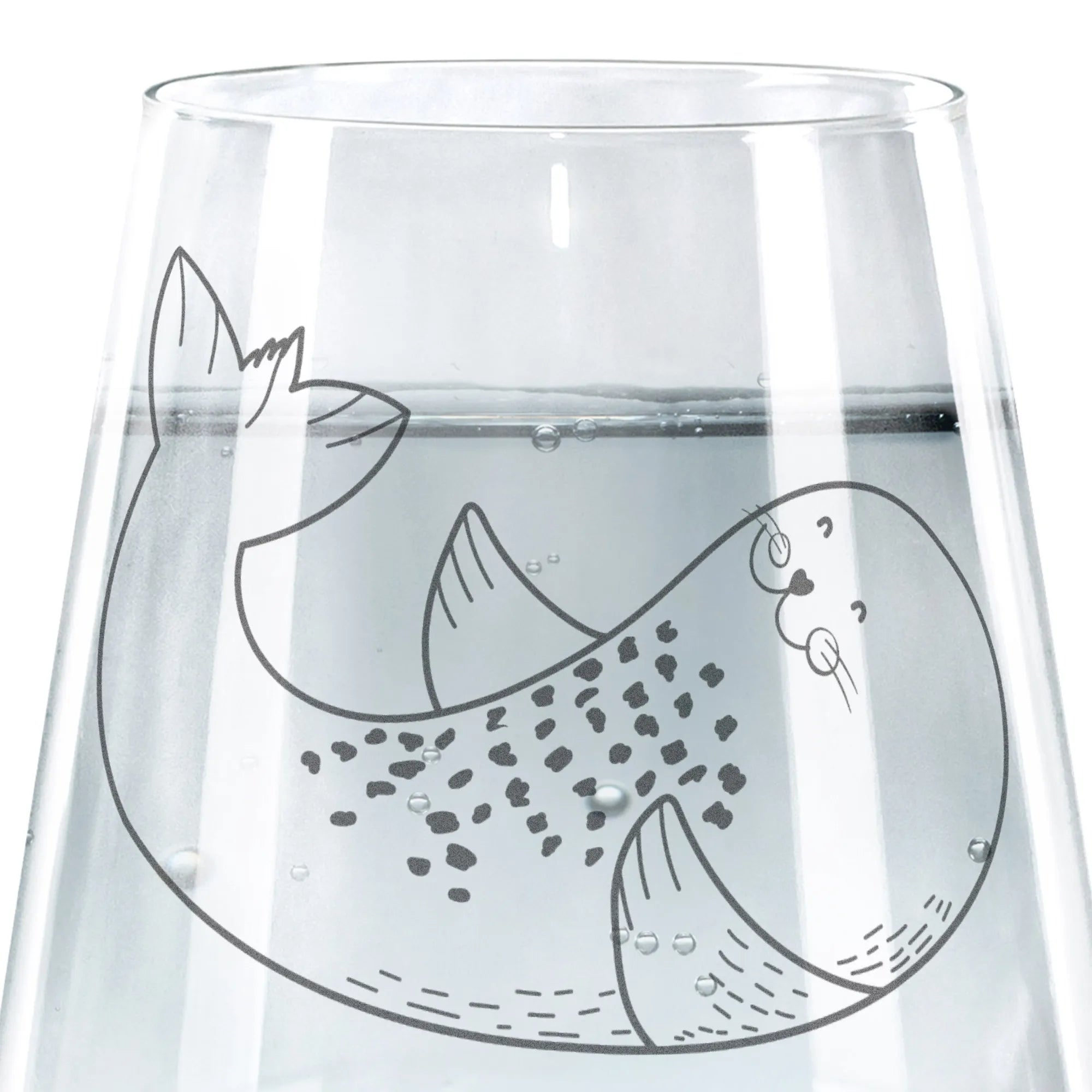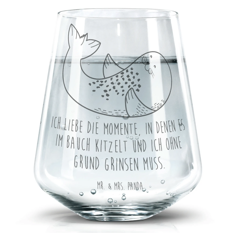 Das Trinkglas mit der niedlichen Robbe liegend aus der Small World Kollektion von Mr. & Mrs. Panda ist der perfekte Begleiter für alle, die das Meer und all seine herzigen Kreaturen lieben!