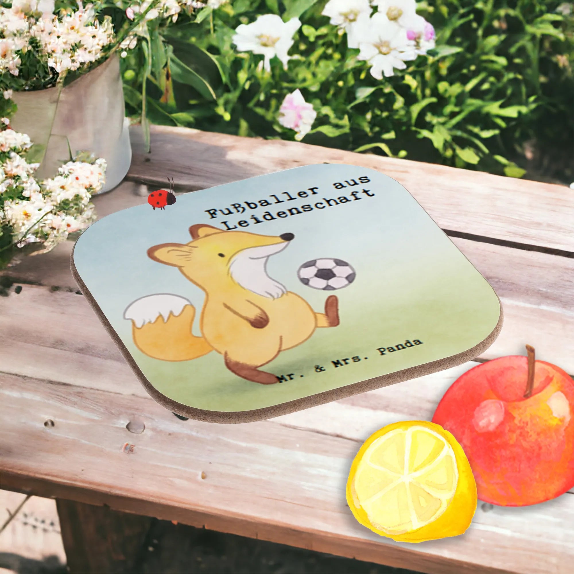 Unser quadratischer Untersetzer von Mr. & Mrs. Panda bringt Spaß und Funktionalität in dein Zuhause. Mit einem zuckersüßen Fuchs, der stolz den Ball kickt, und dem Schriftzug „Fußballer aus Leidenschaft“ ist dieser Glasuntersetzer ideal für alle, die Fußball lieben – ob Profi, Hobbyspieler oder Trainer.