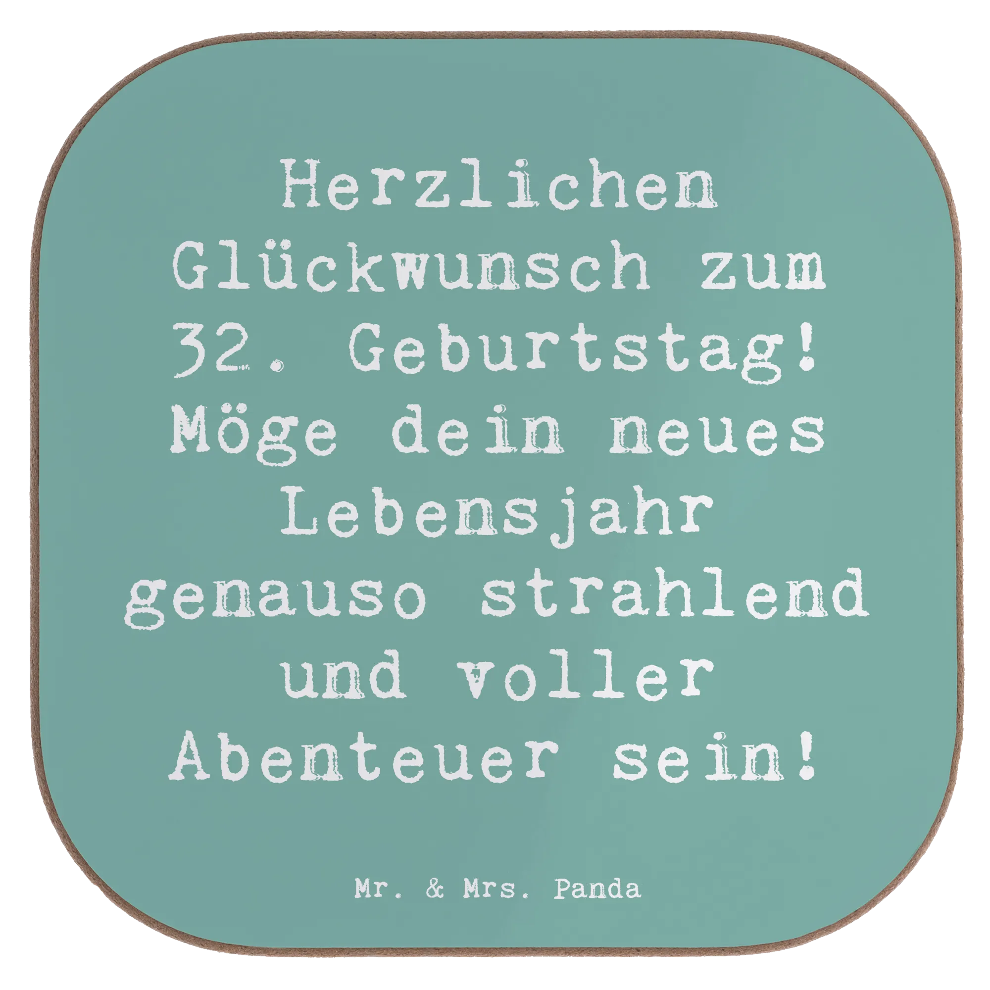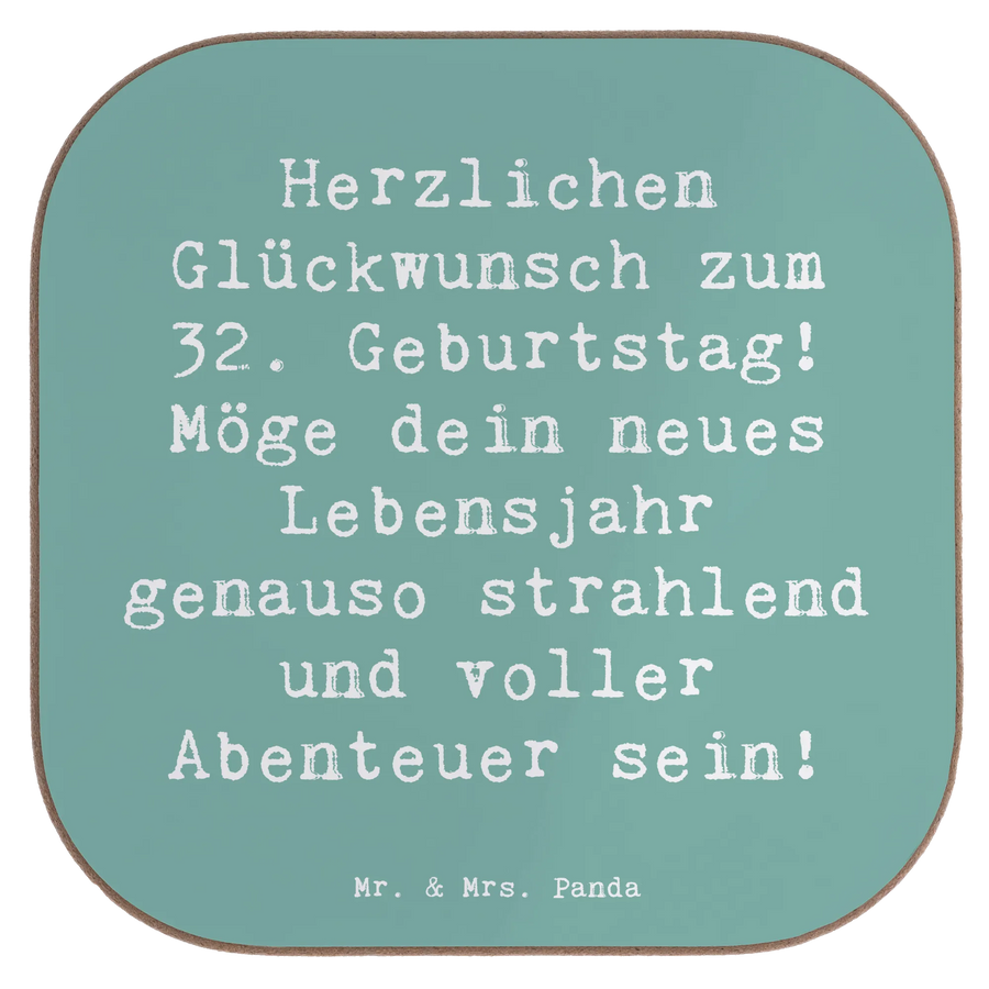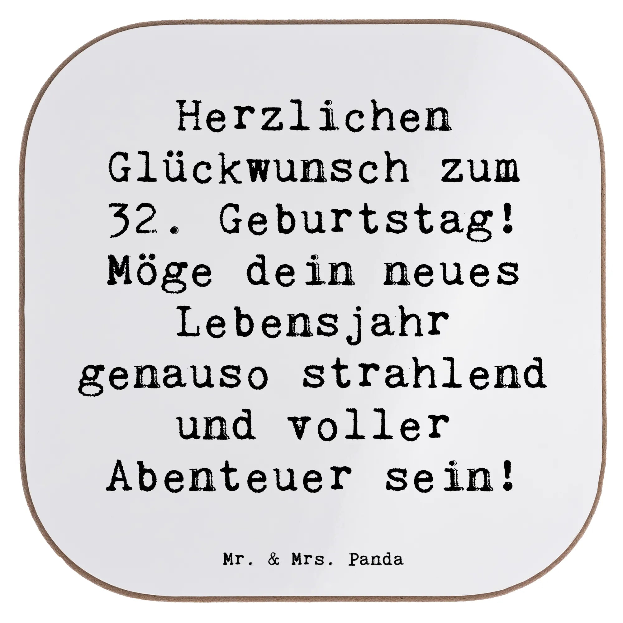 Untersetzer Spruch 32. Geburtstag Abenteuer – Mr. & Mrs. Panda