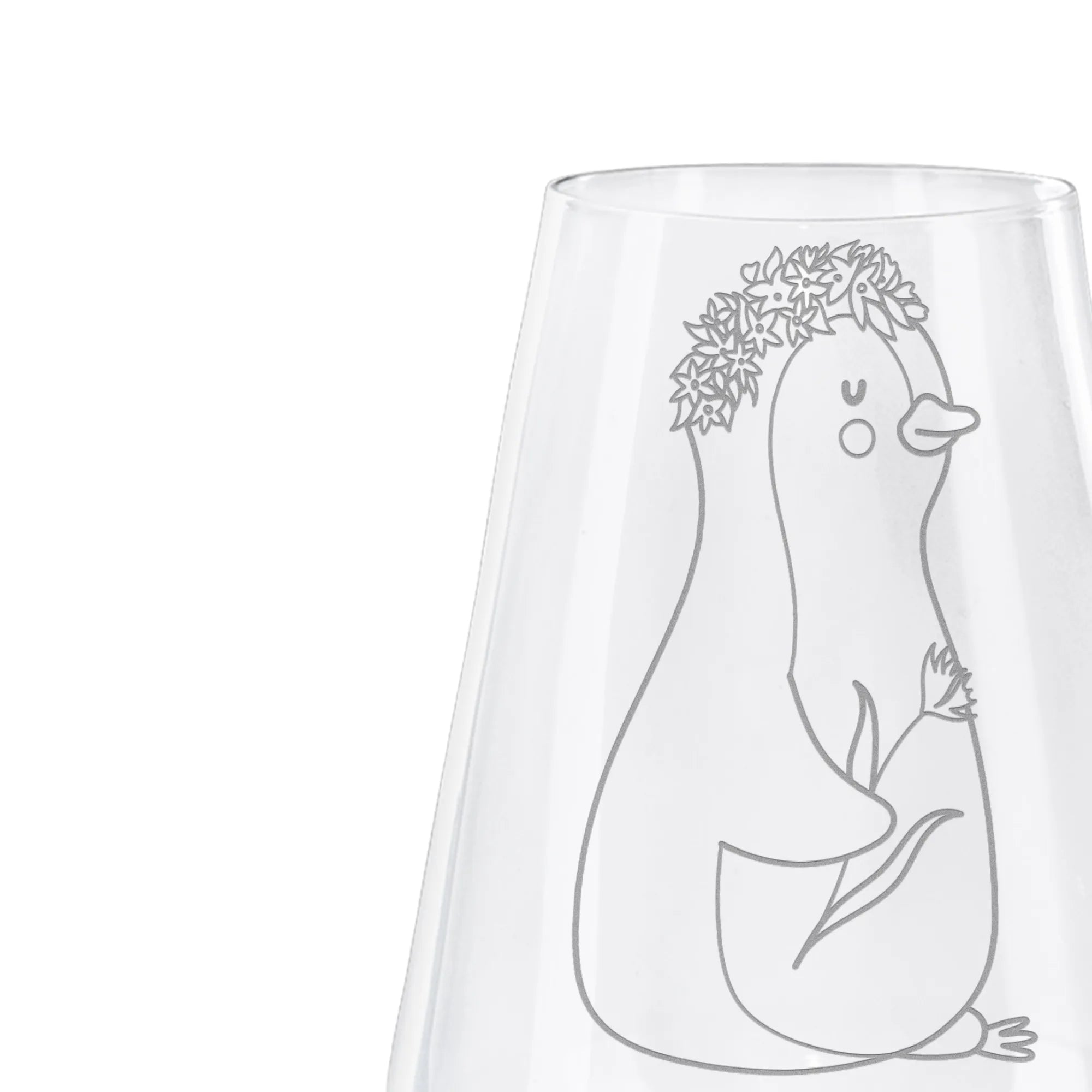 Weißwein Glas Pinguin Blumen - mit Spruch
