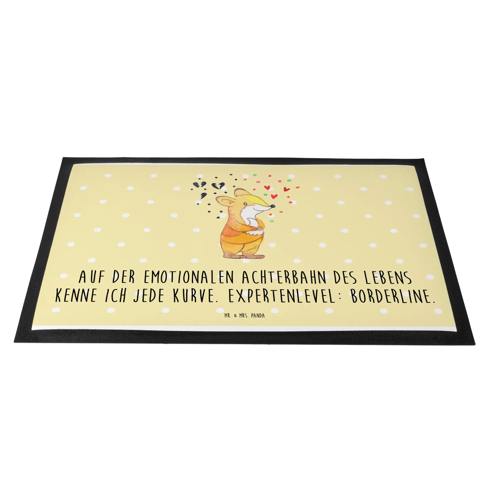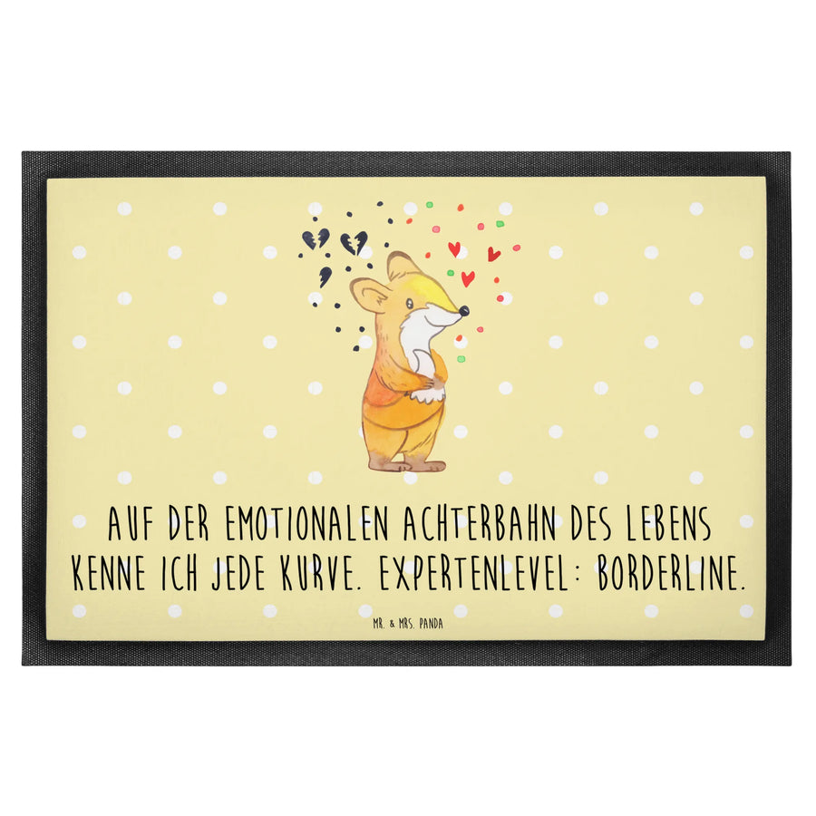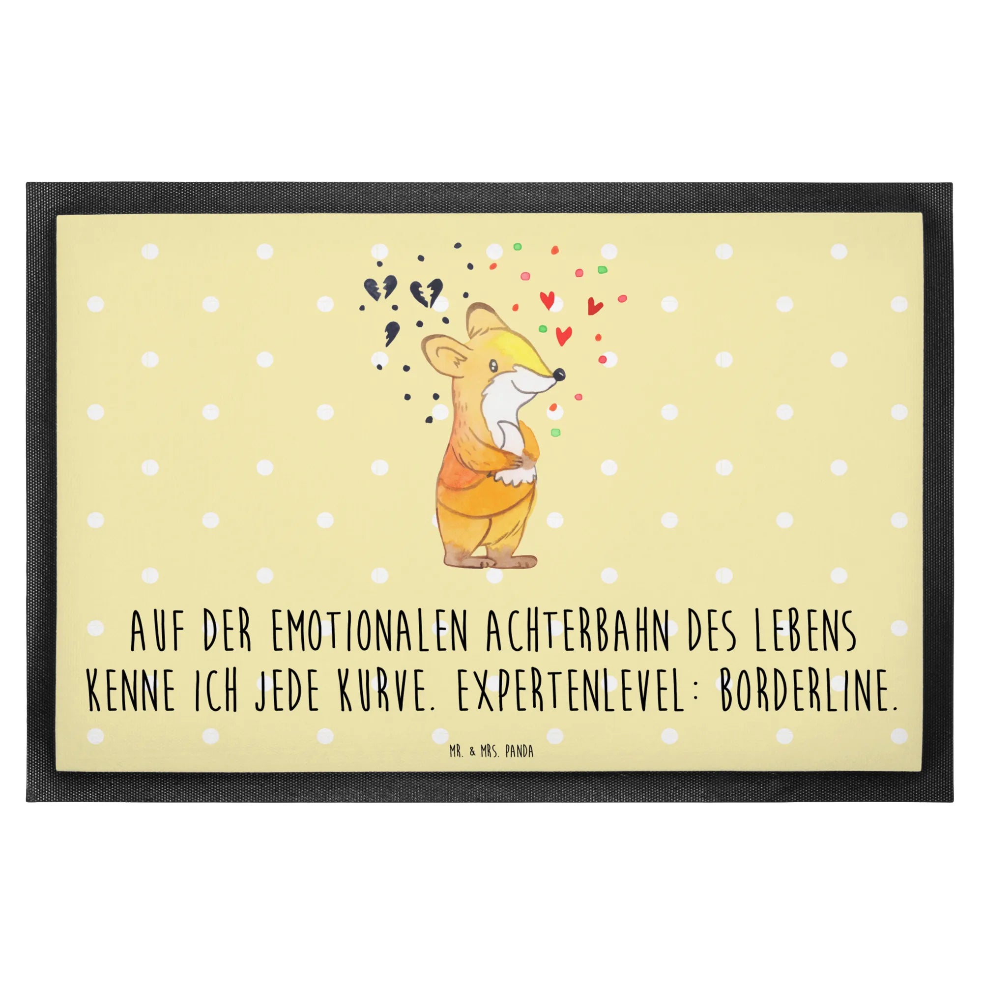Die Fußmatte mit dem Motiv Fuchs Borderline von Mr. & Mrs. Panda ist nicht nur ein praktischer Schmutzfänger, sondern auch ein liebevolles Zeichen der Anerkennung und Respekt gegenüber Menschen, die jeden Tag mit Herausforderungen zu kämpfen haben. Mit einem tollen Slogan "Auf der emotionalen Achterbahn des Lebens kenne ich jede Kurve. Expertenlevel: Borderline." steht diese Matte symbolisch für Stärke, Mut und die besonderen Fähigkeiten, die Menschen mit Handicaps in ihr Leben bringen.