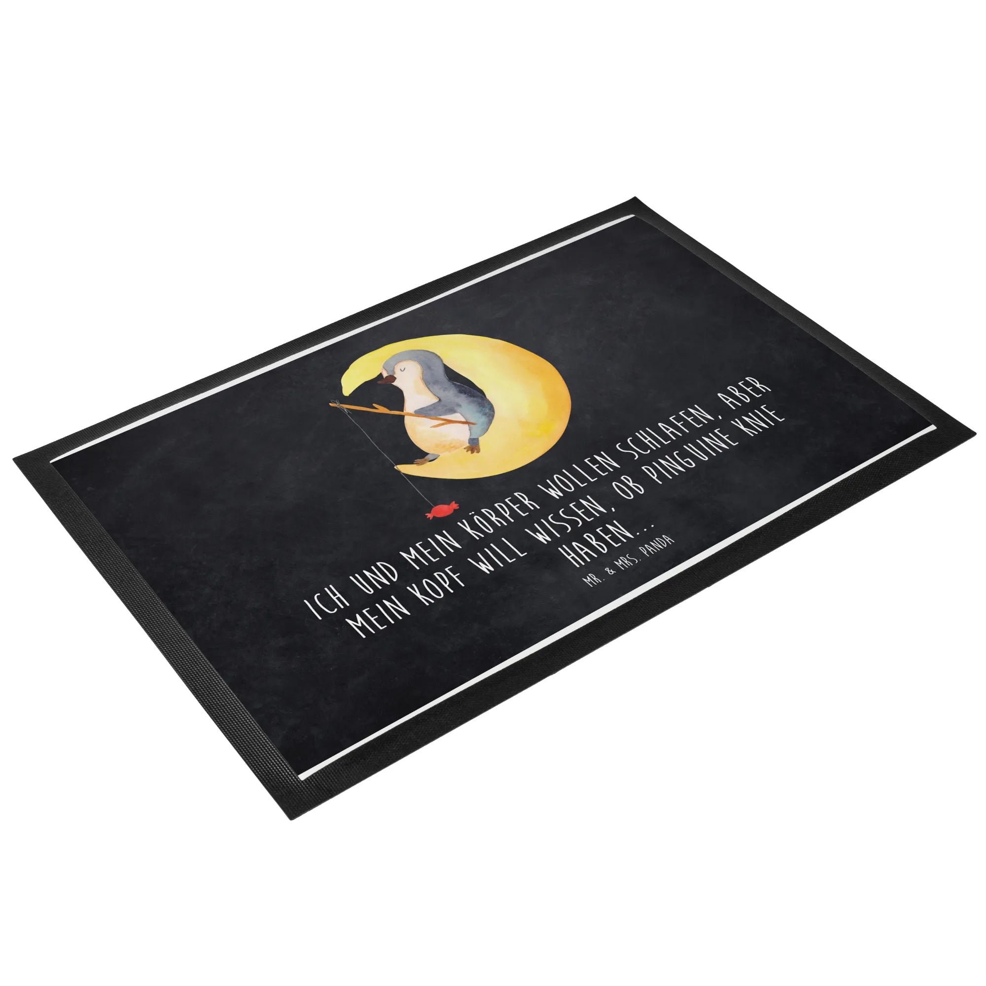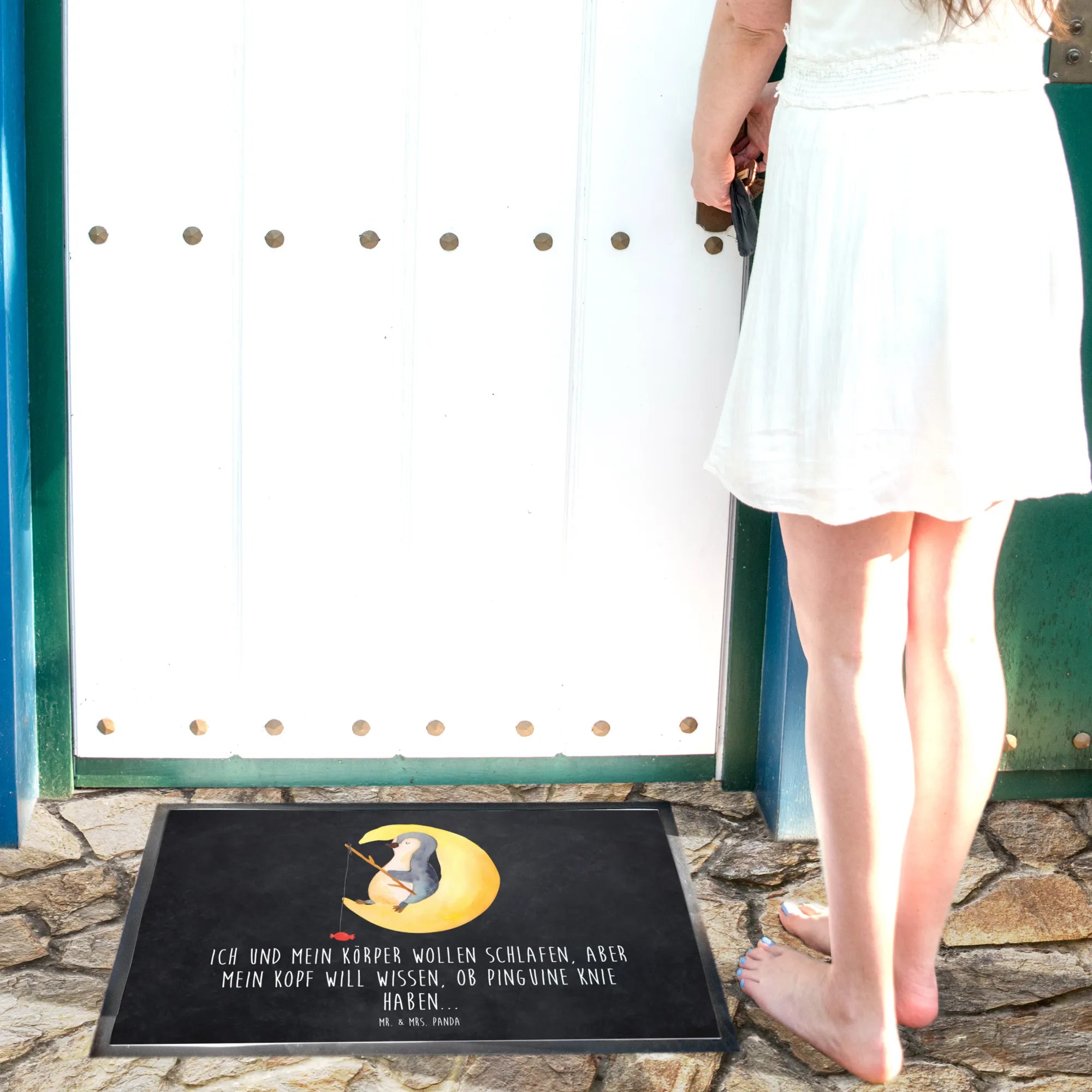 wycieraczka pingwin księżyc - 60 x 90 cm - z napisem - Czarny