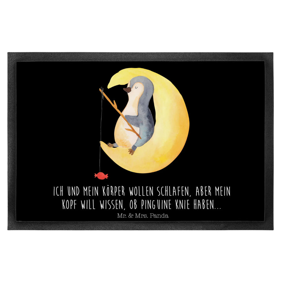 wycieraczka pingwin księżyc - 40 x 60 cm - z napisem - Czarny