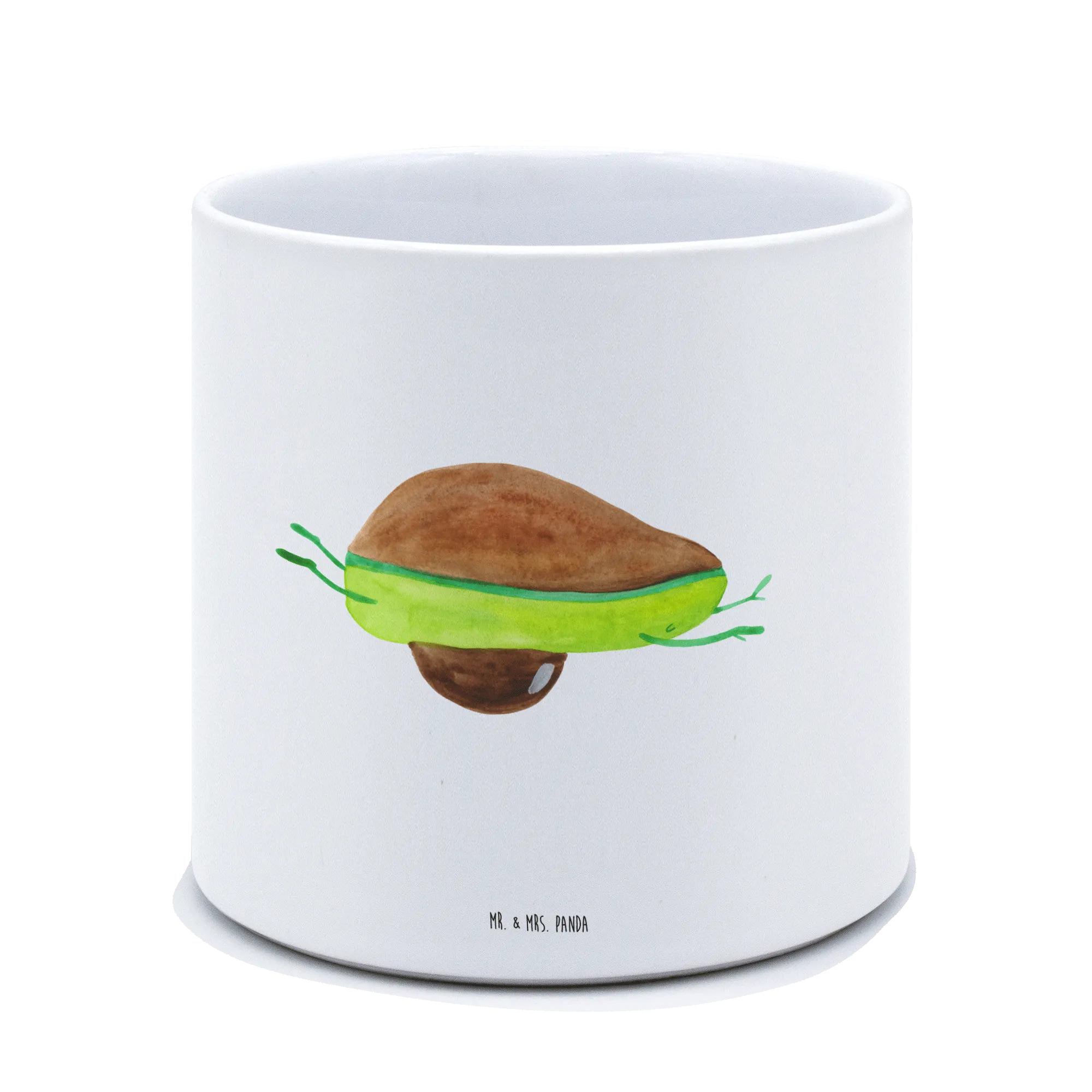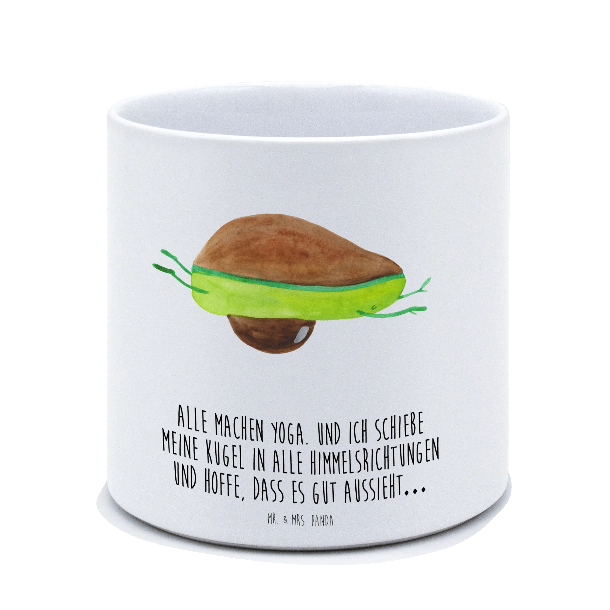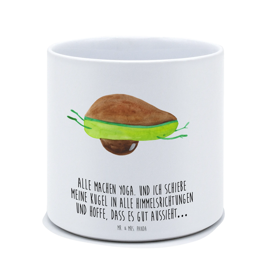 Der XL Blumentopf Avocado Yoga von Mr. & Mrs. Panda ist nicht nur ein praktisches, sondern auch ein äußerst dekoratives Element für jeden Raum. Mit seinen glatten, glänzenden Keramik-Oberflächen und dem niedlichen Motiv einer tollpatschigen Avocado, die Yoga macht, sorgt dieser Blumentopf für einen echten Blickfang – egal ob auf der Fensterbank, dem Balkon oder der Terrasse.