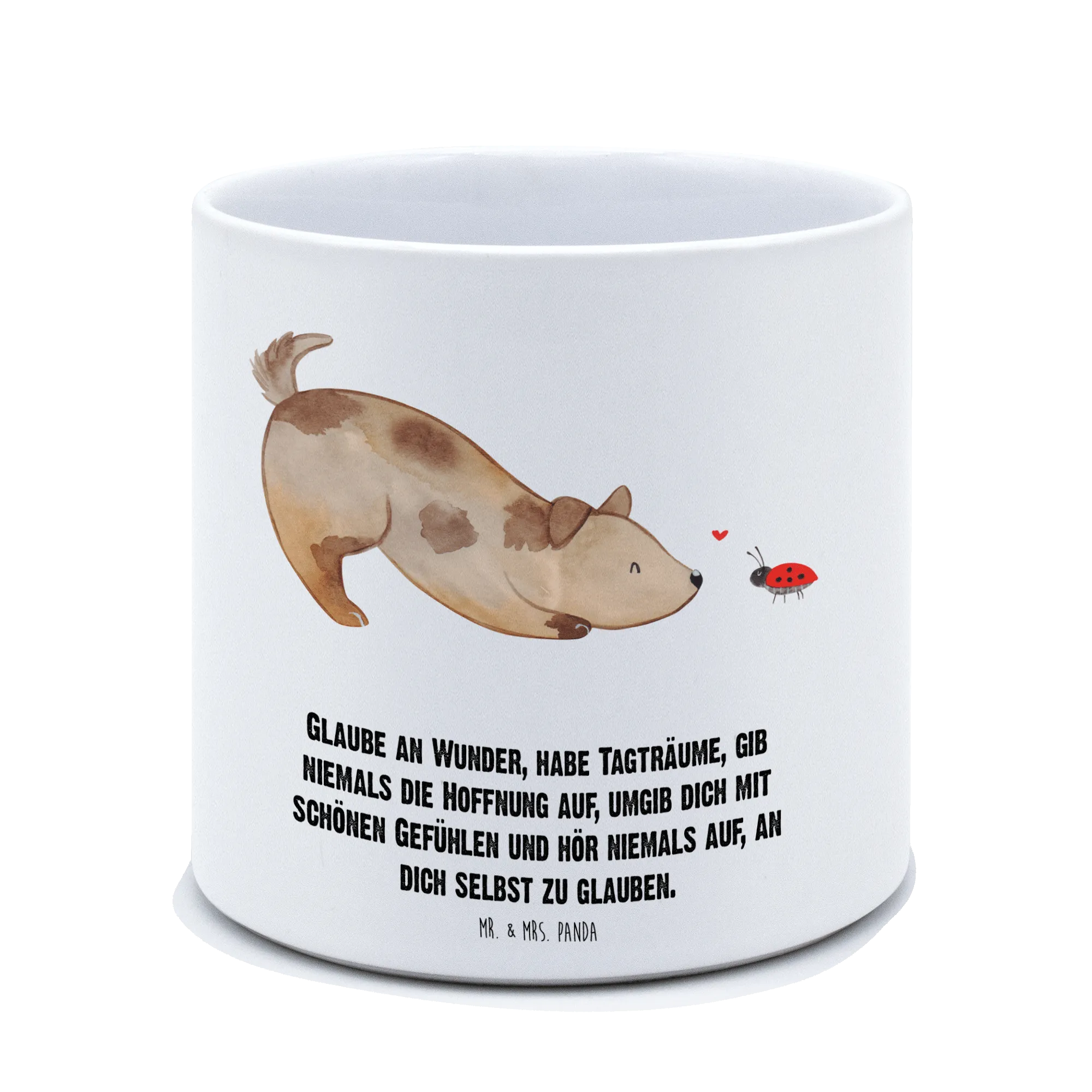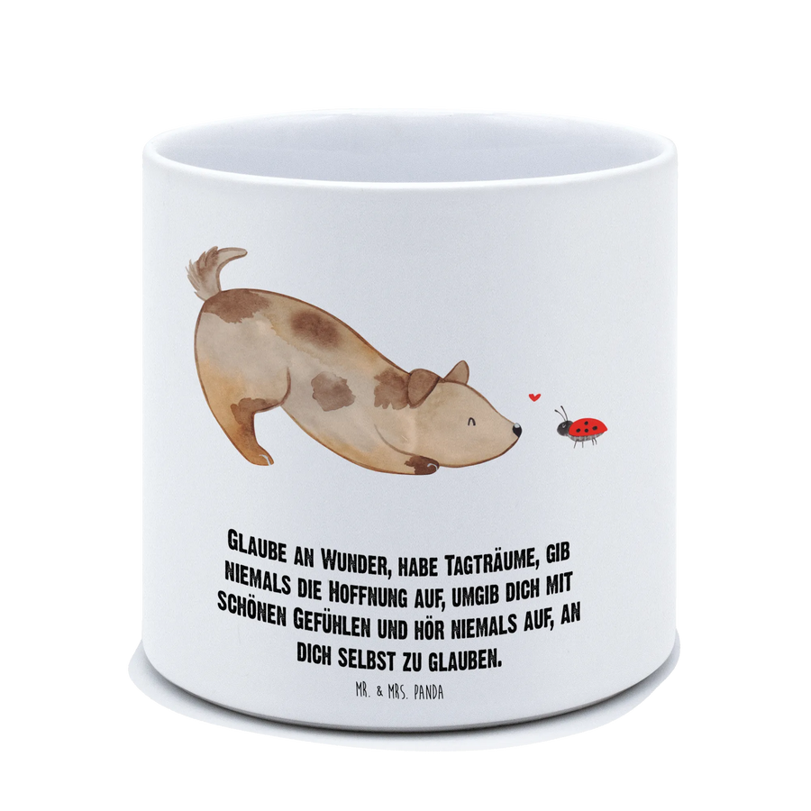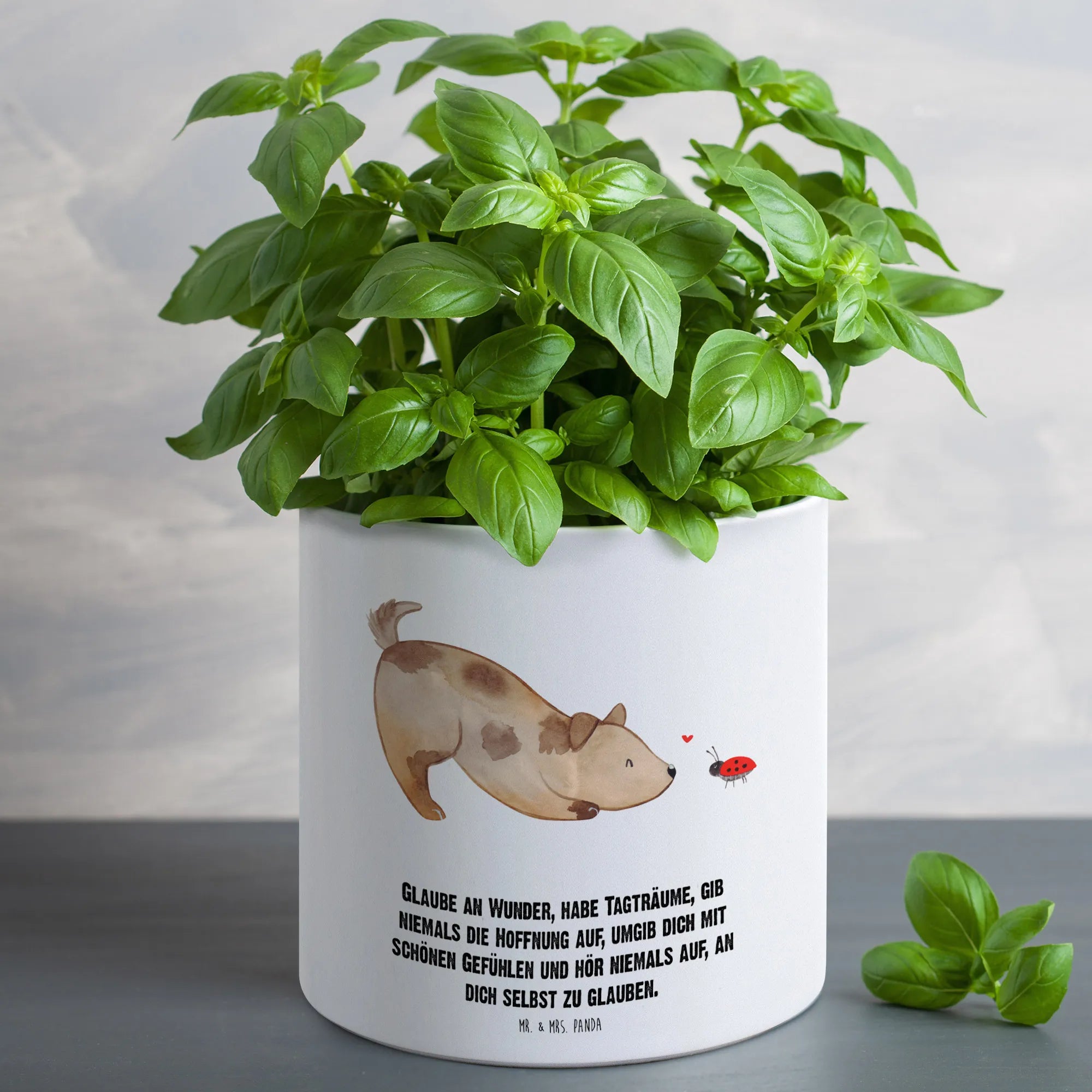 Entdecke den XL Blumentopf Hund Marienkäfer von Mr. & Mrs. Panda – das perfekte Geschenk für alle Tierliebhaber und Hundebesitzer! Mit seinem niedlichen Design, das einen fröhlichen Hund zeigt, der begeistert vor einem kleinen Marienkäfer sitzt, bringt dieser Blumentopf nicht nur Freude in dein Zuhause, sondern verleiht auch jeder Pflanze, sei es ein üppiges Grün oder frische Kräuter, einen liebevollen Charakter.