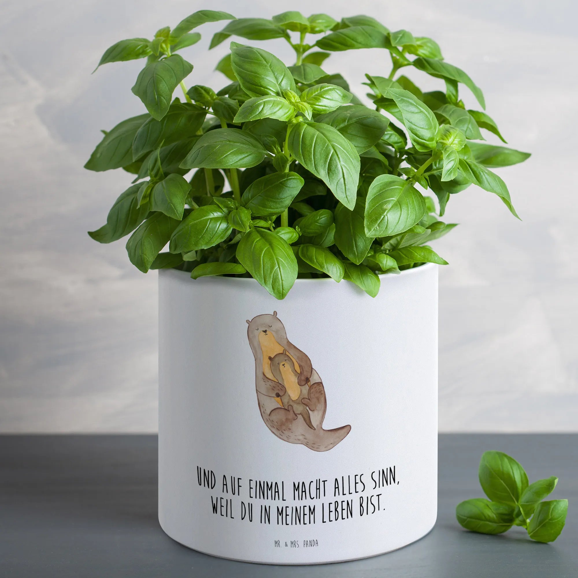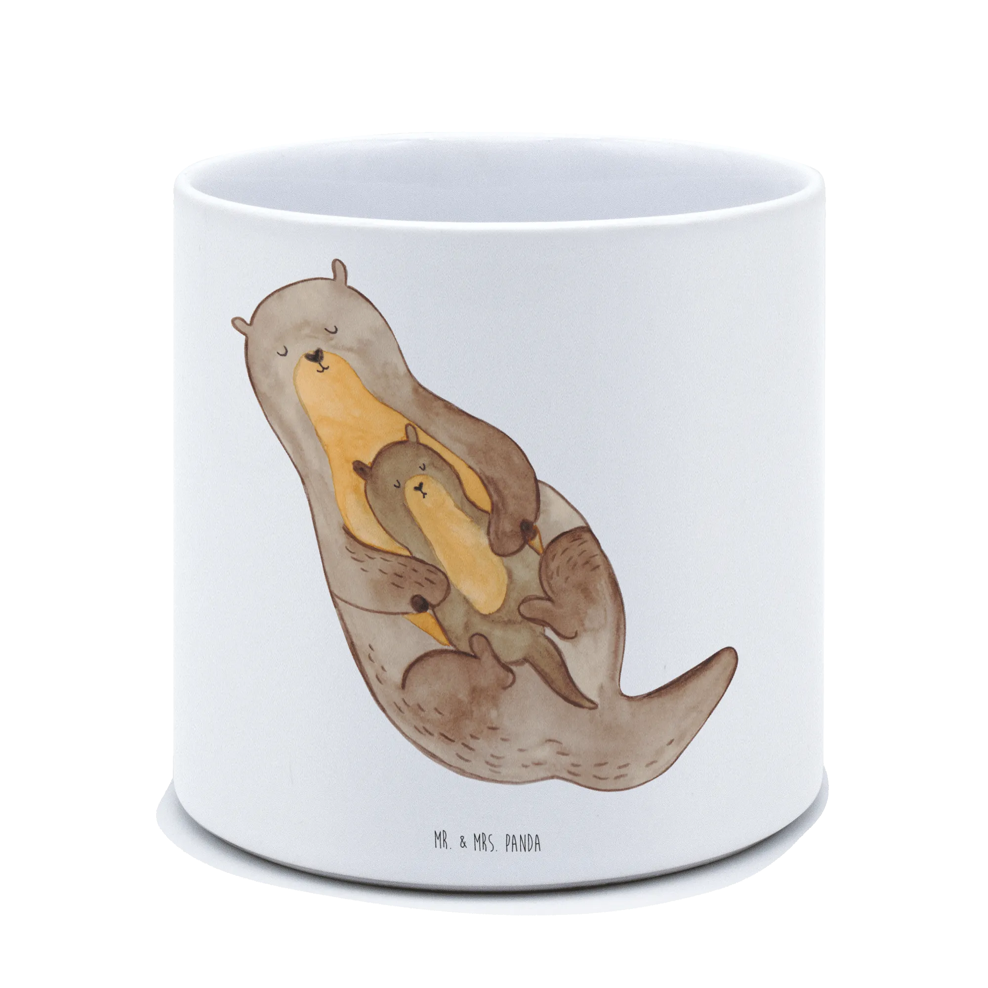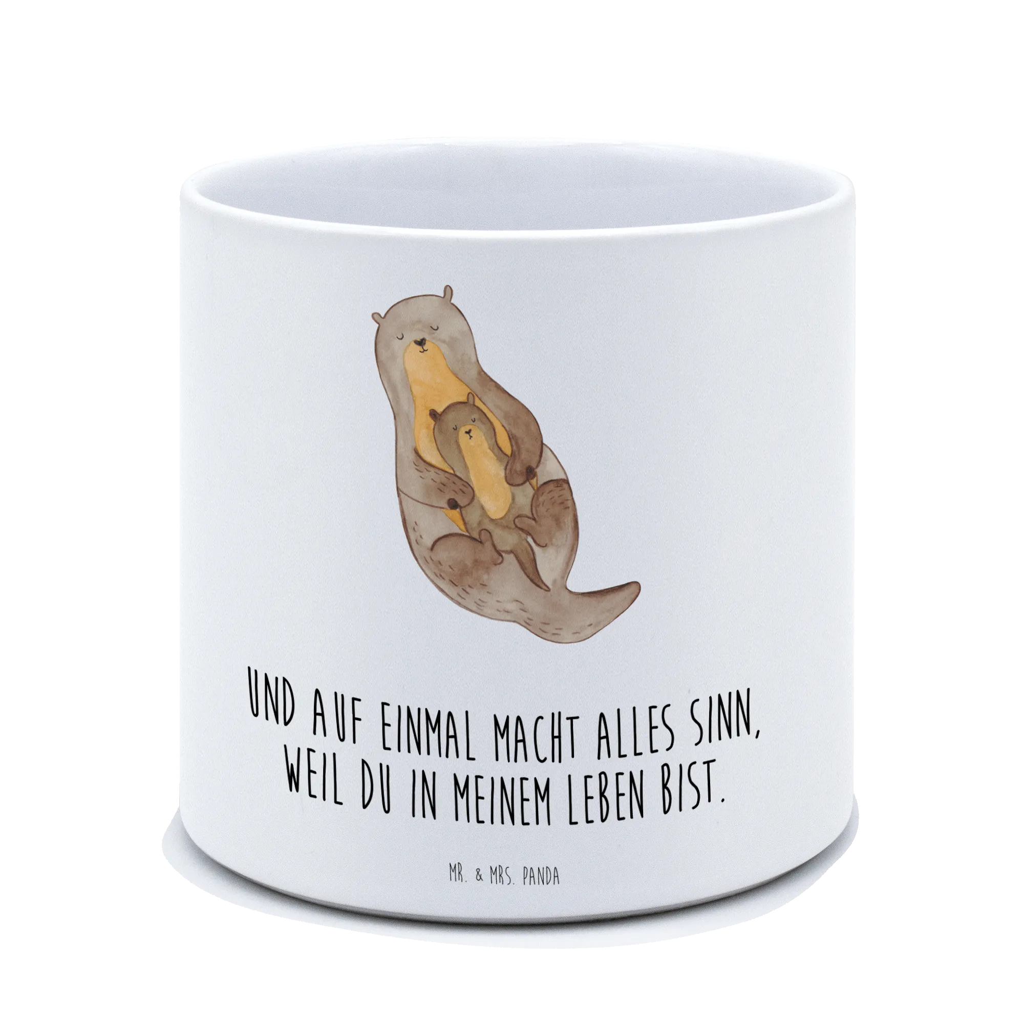Der XL Blumentopf "Otter mit Kind" von Mr. & Mrs. Panda ist nicht nur ein wunderschönes Deko-Element, sondern auch ein perfektes Geschenk für Tierliebhaber und Pflanzenfreunde. Mit einem eindrucksvollen Motiv, das einen süßen Otter zeigt, der sein Kind liebevoll umarmt, bringt dieser Blumentopf eine gemütliche und herzliche Atmosphäre in jedes Zuhause. Der Blumentopf ist aus hochwertiger, glänzender Keramik gefertigt und hat eine Größe von 135 mm in der Höhe und 142 mm im Durchmesser, was ihn ideal für größere Pflanzen oder Kräuter macht. Egal, ob auf dem Balkon, der Terrasse, im Garten oder auf der Fensterbank – dieser Pflanzkübel ist für drinnen und draußen geeignet und sorgt dafür, dass deine Pflanzen immer im besten Licht stehen.
