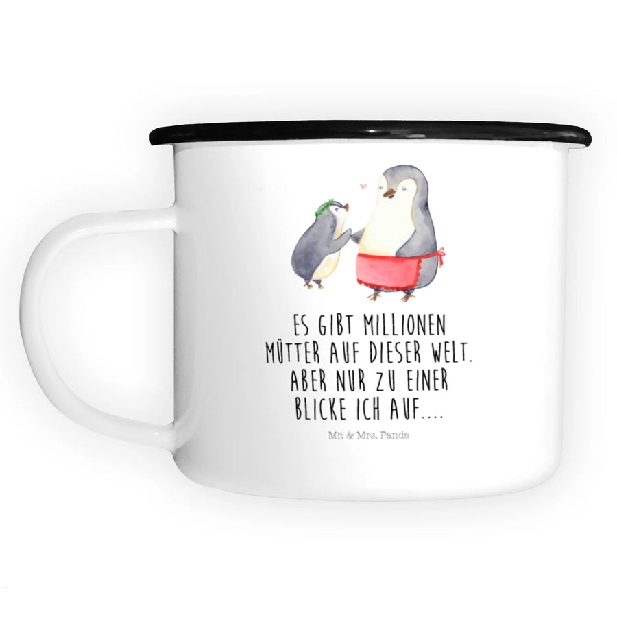 XL emaliowany kubek Pingwin z dzieckiem - z napisem - Biały