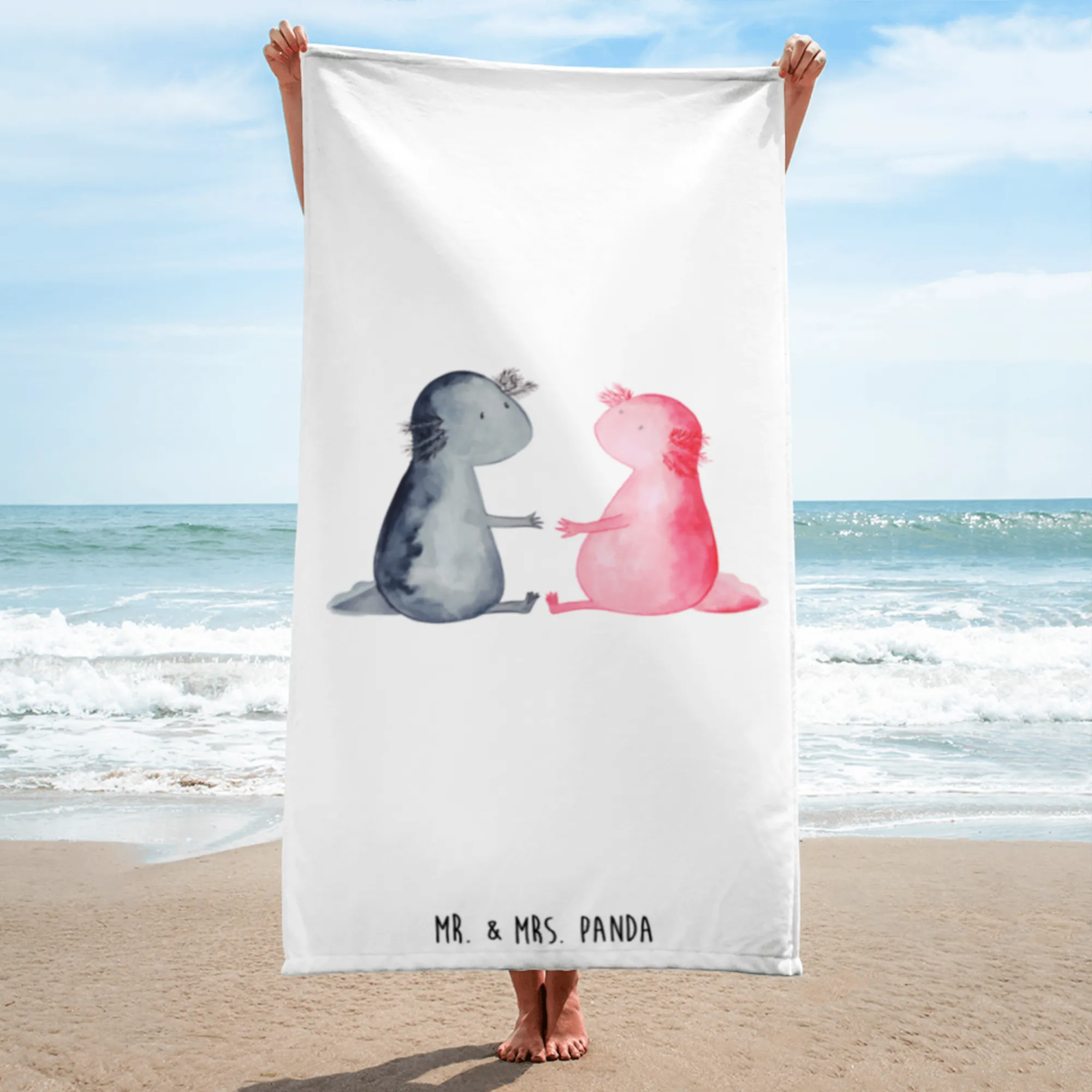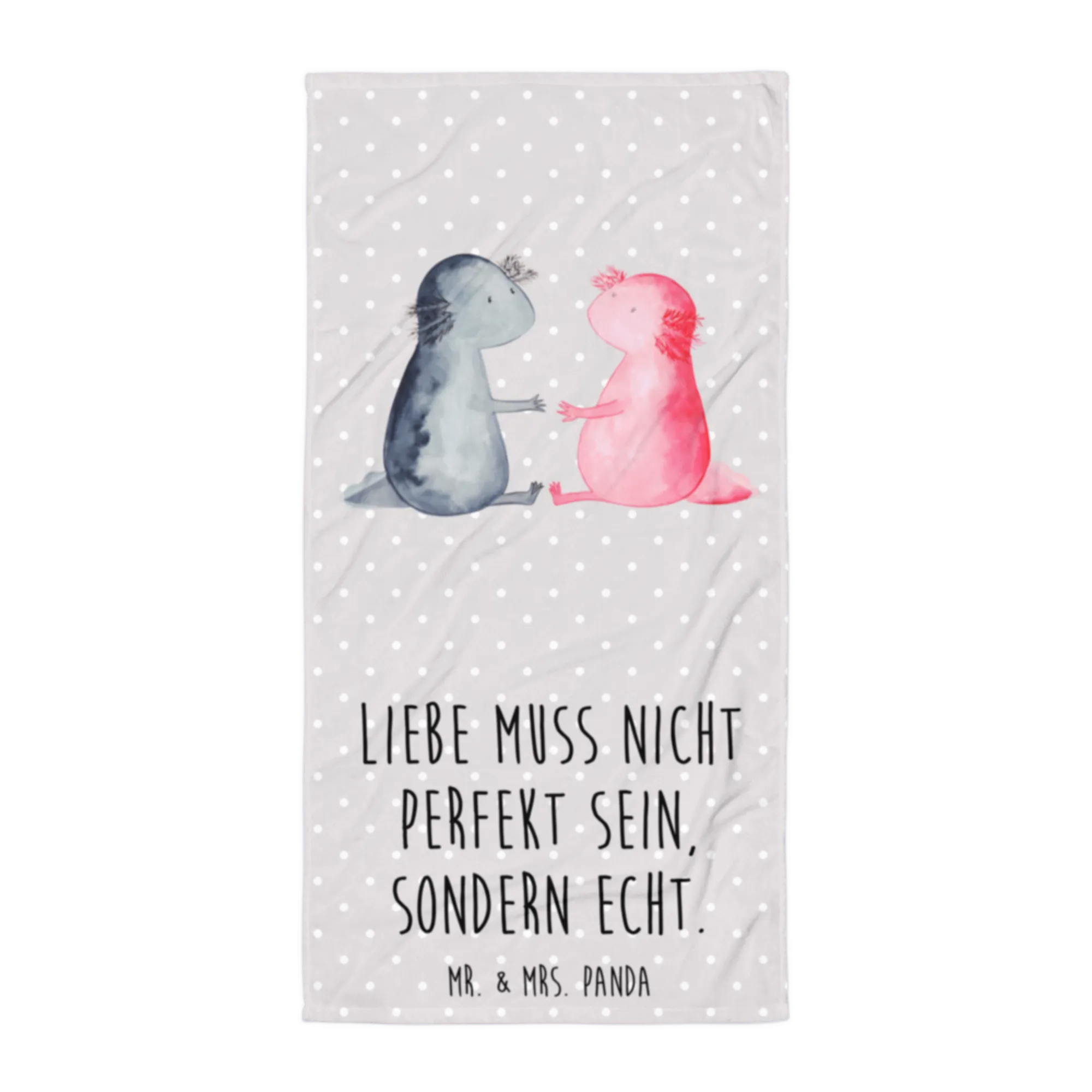 XL ręcznik kąpielowy Axolotl miłość - z napisem - Pastelowy szary