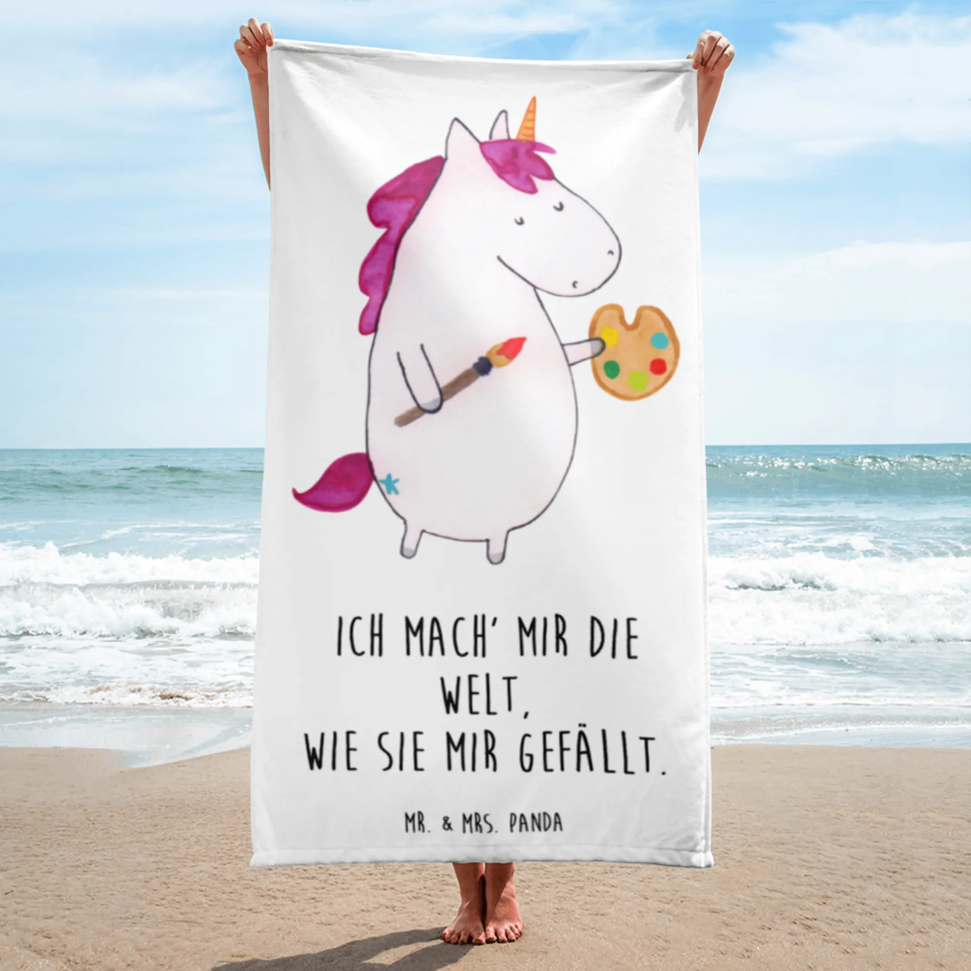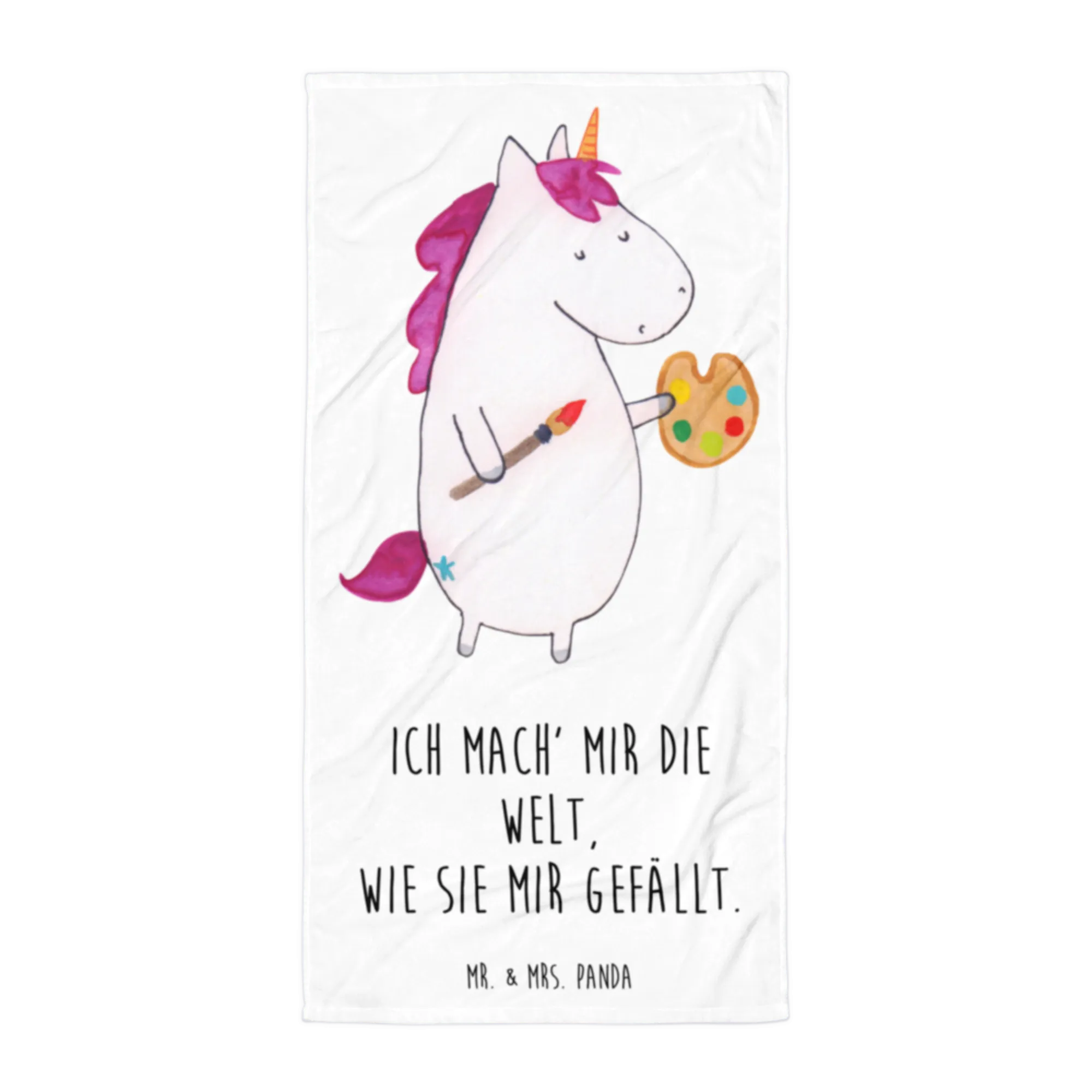 Das XL Badehandtuch "Einhorn Künstler" von Mr. & Mrs. Panda ist das perfekte Geschenk für kreative Seelen und Einhorn-Liebhaber! 🌈 Mit seinen bunten Farben und dem süßen Motiv eines Einhorns, das an einer Staffelei malt, zaubert es ein Lächeln auf jedes Gesicht.