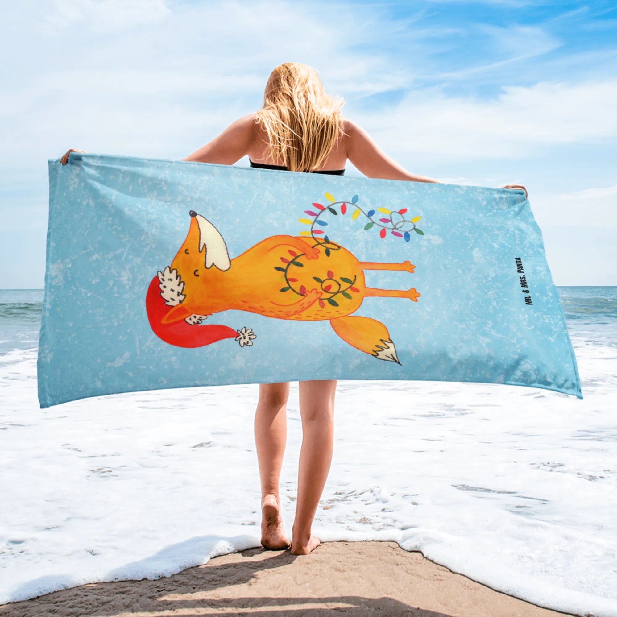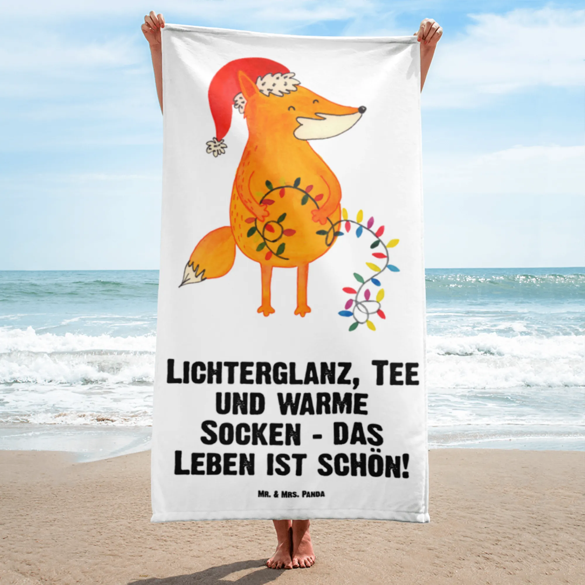 XL ręcznik kąpielowy lis Boże Narodzenie - z napisem - biały