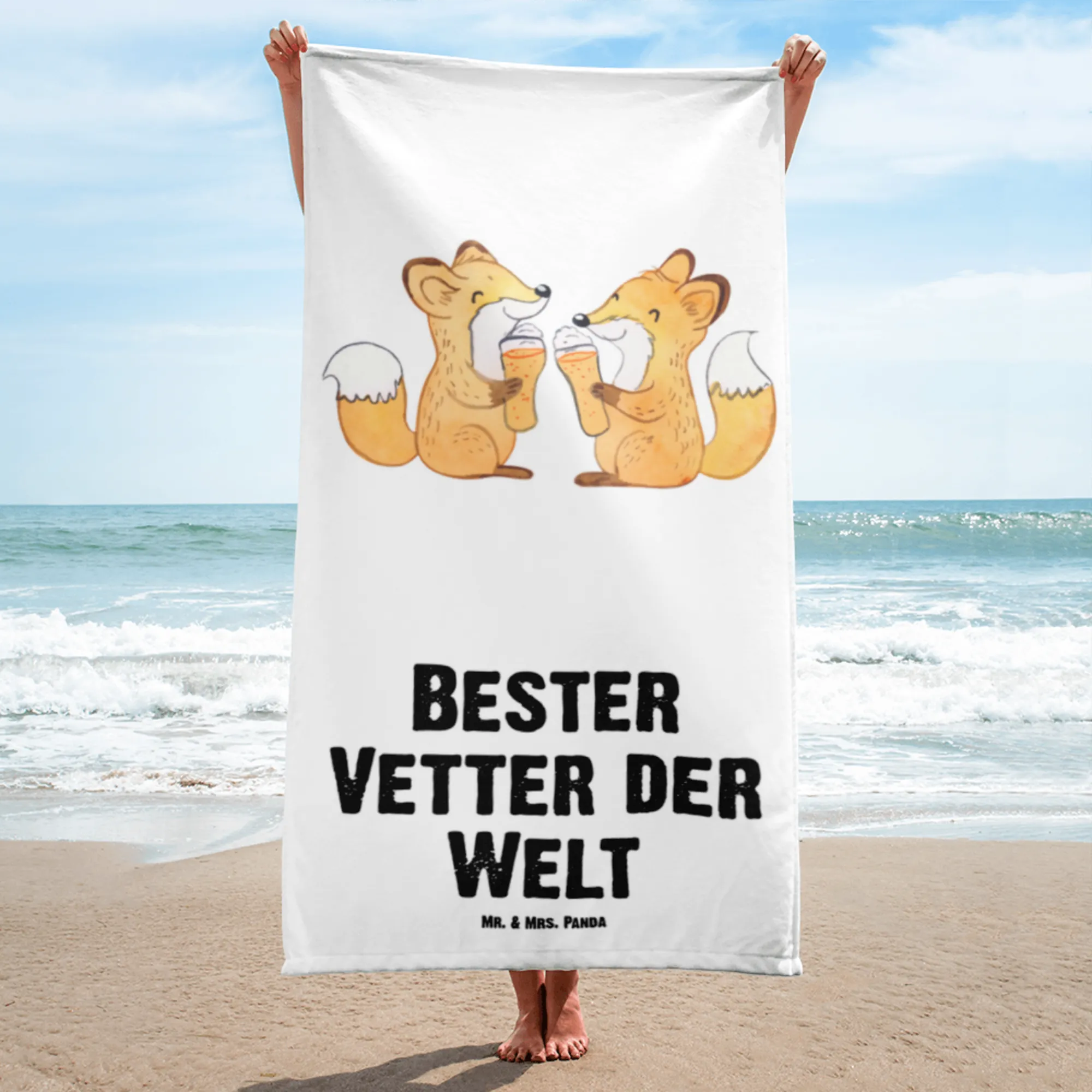 XL ręcznik kąpielowy lis Najlepszy kuzyn na świecie - Biały