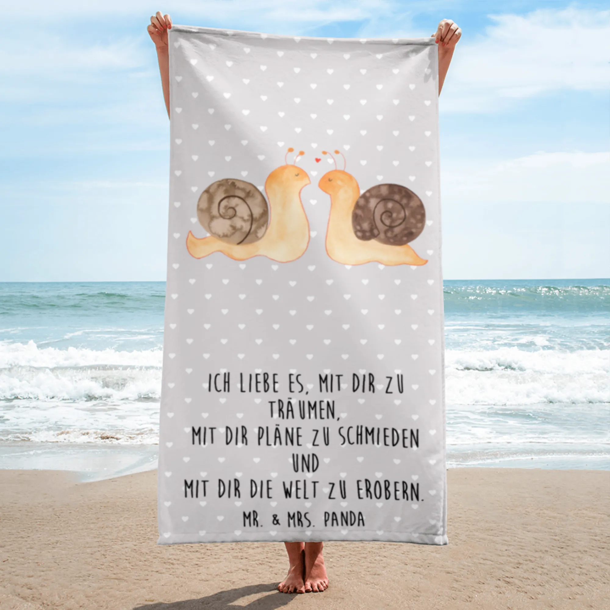 XL ręcznik kąpielowy Miłość ślimaków - z napisem - Pastelowy szary