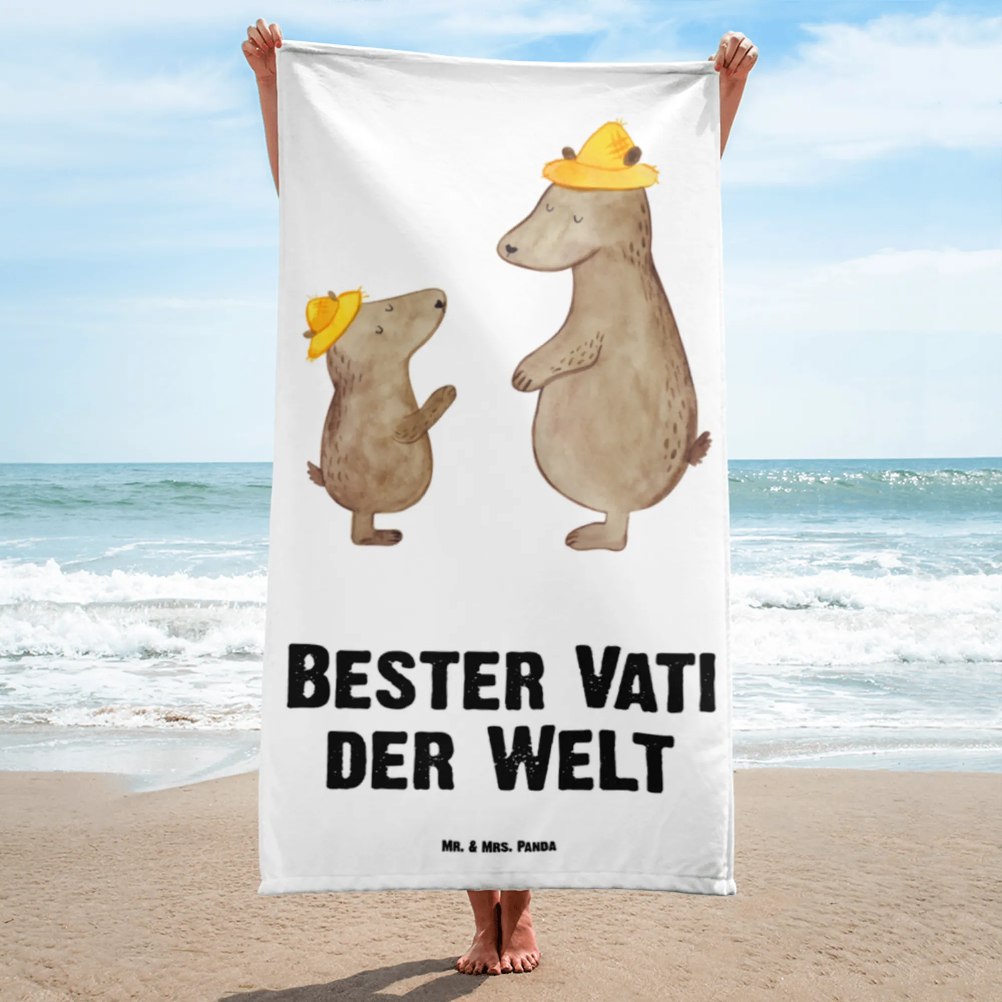 XL ręcznik kąpielowy Niedźwiedź Najlepszy tata na świecie - biały