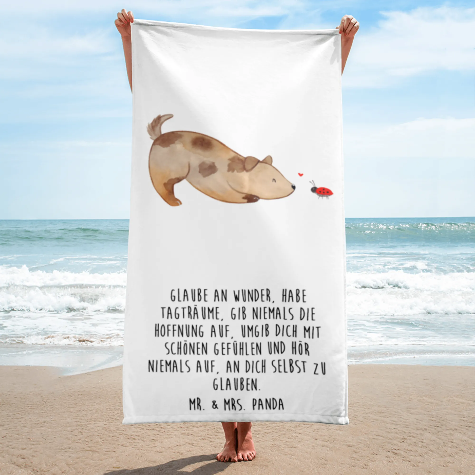 XL ręcznik kąpielowy pies biedronka - z napisem - Hundeglück