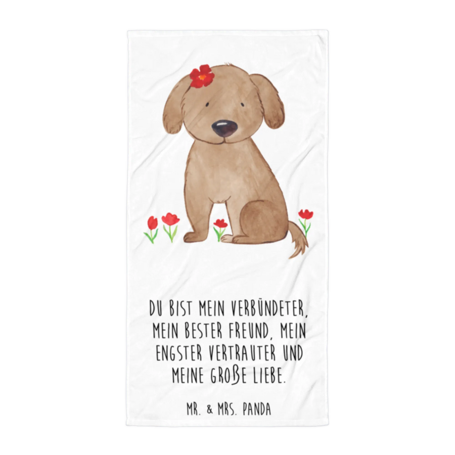 XL ręcznik kąpielowy pies Dama - z napisem - biały