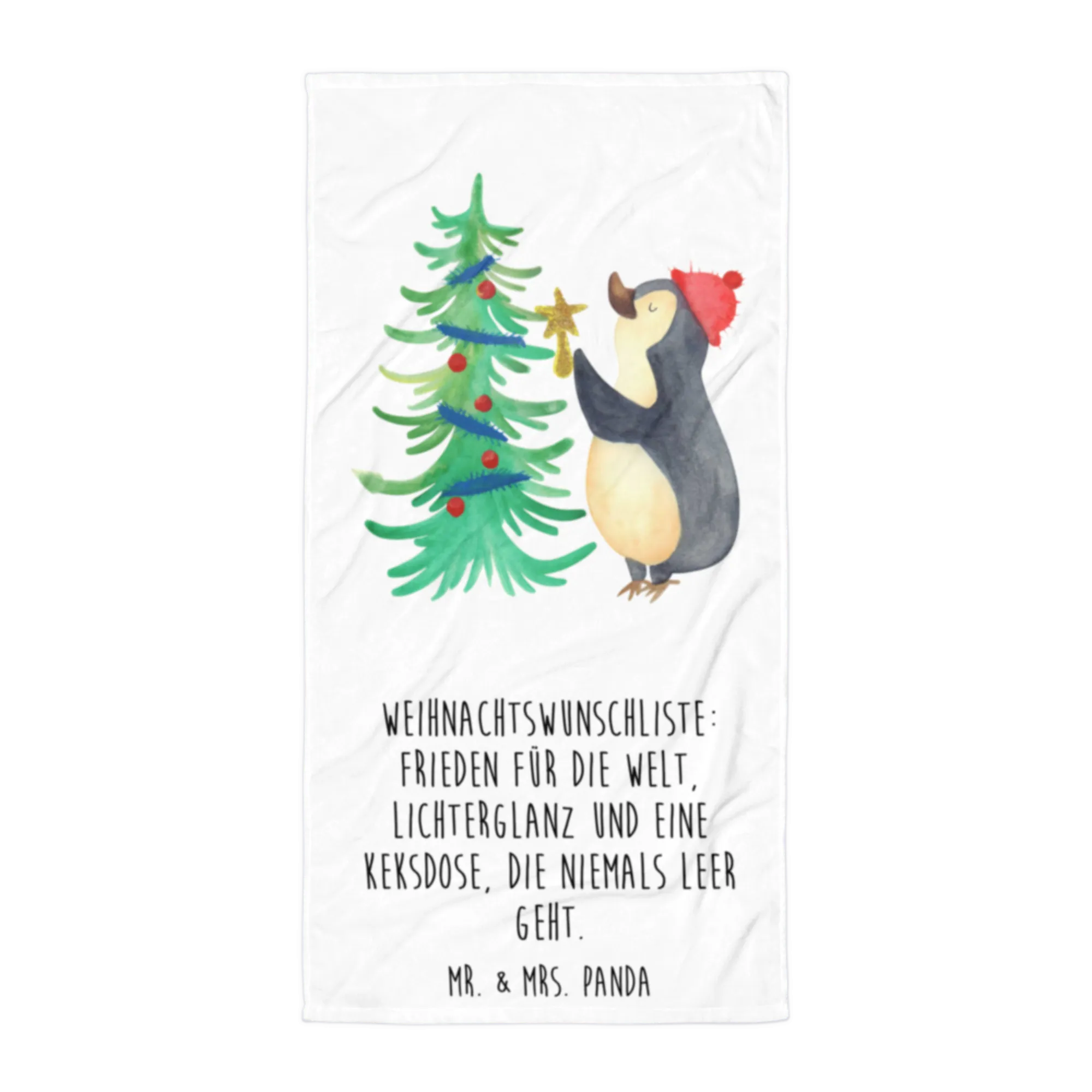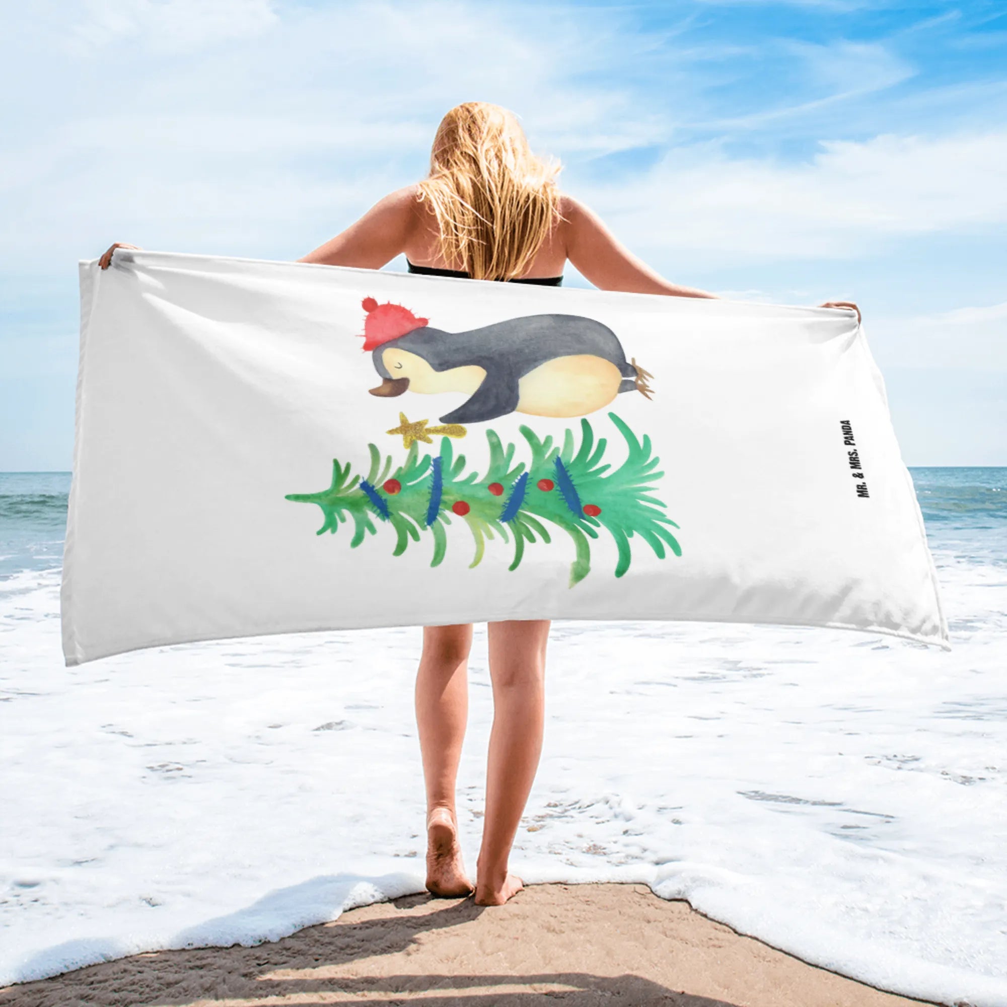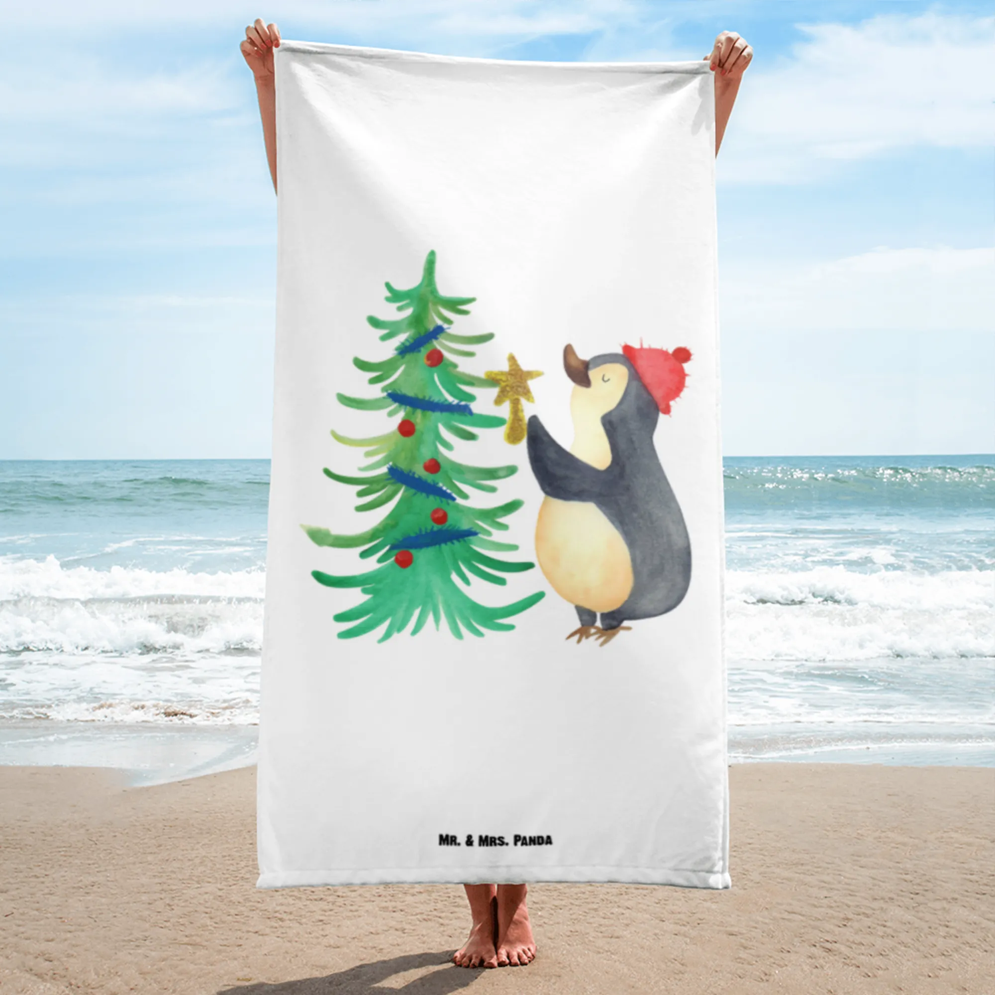 XL ręcznik kąpielowy Pingwin choinka - z napisem - biały
