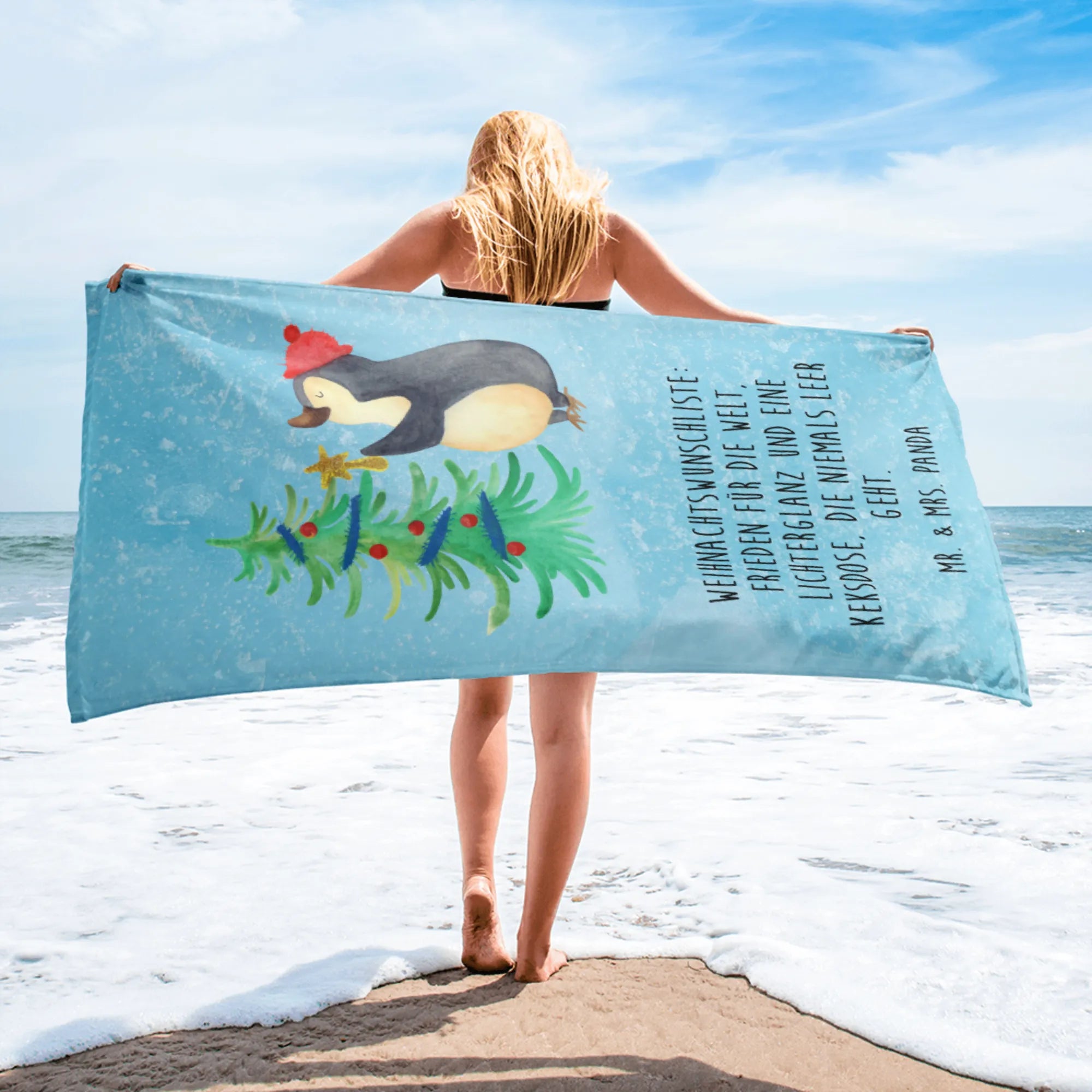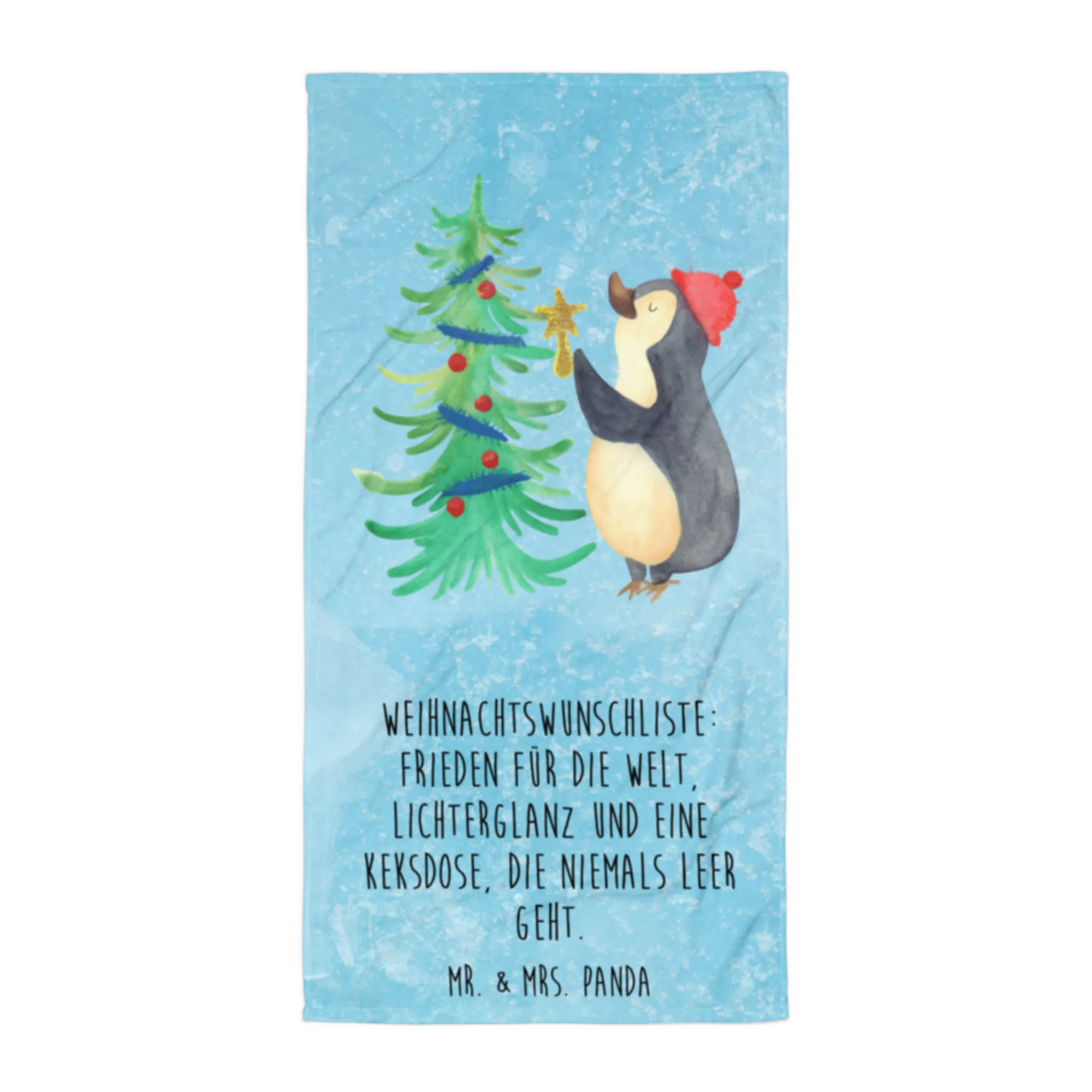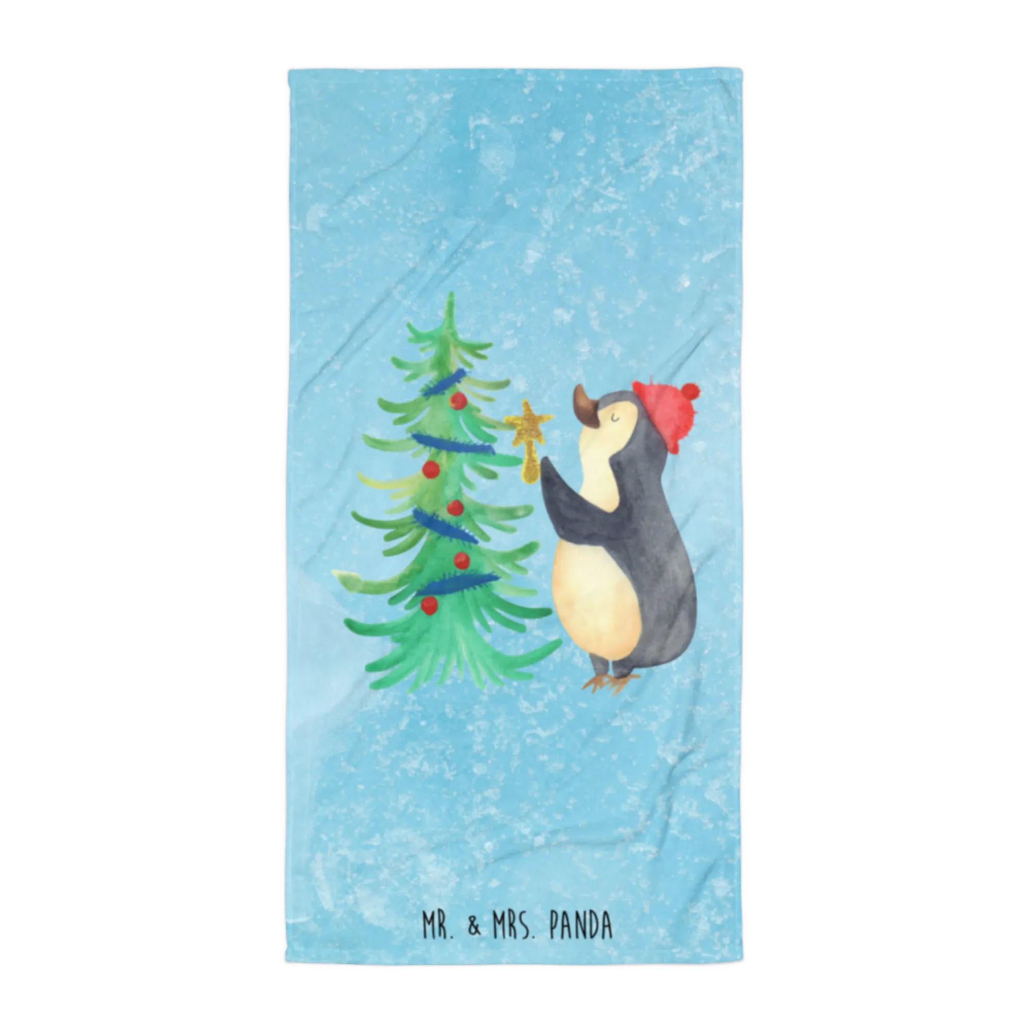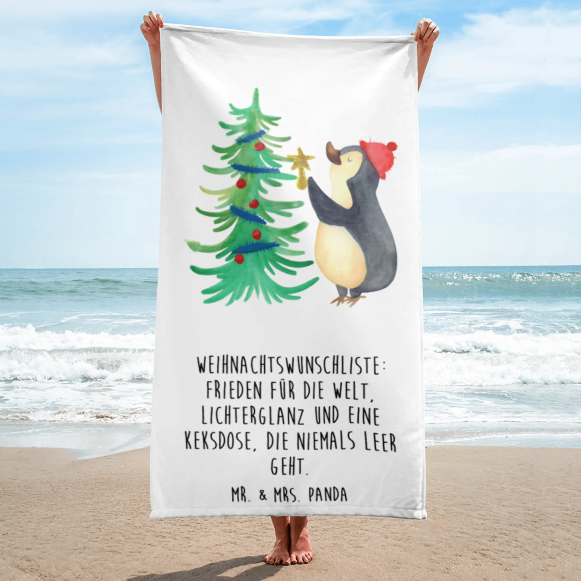 XL ręcznik kąpielowy Pingwin choinka - z napisem - biały