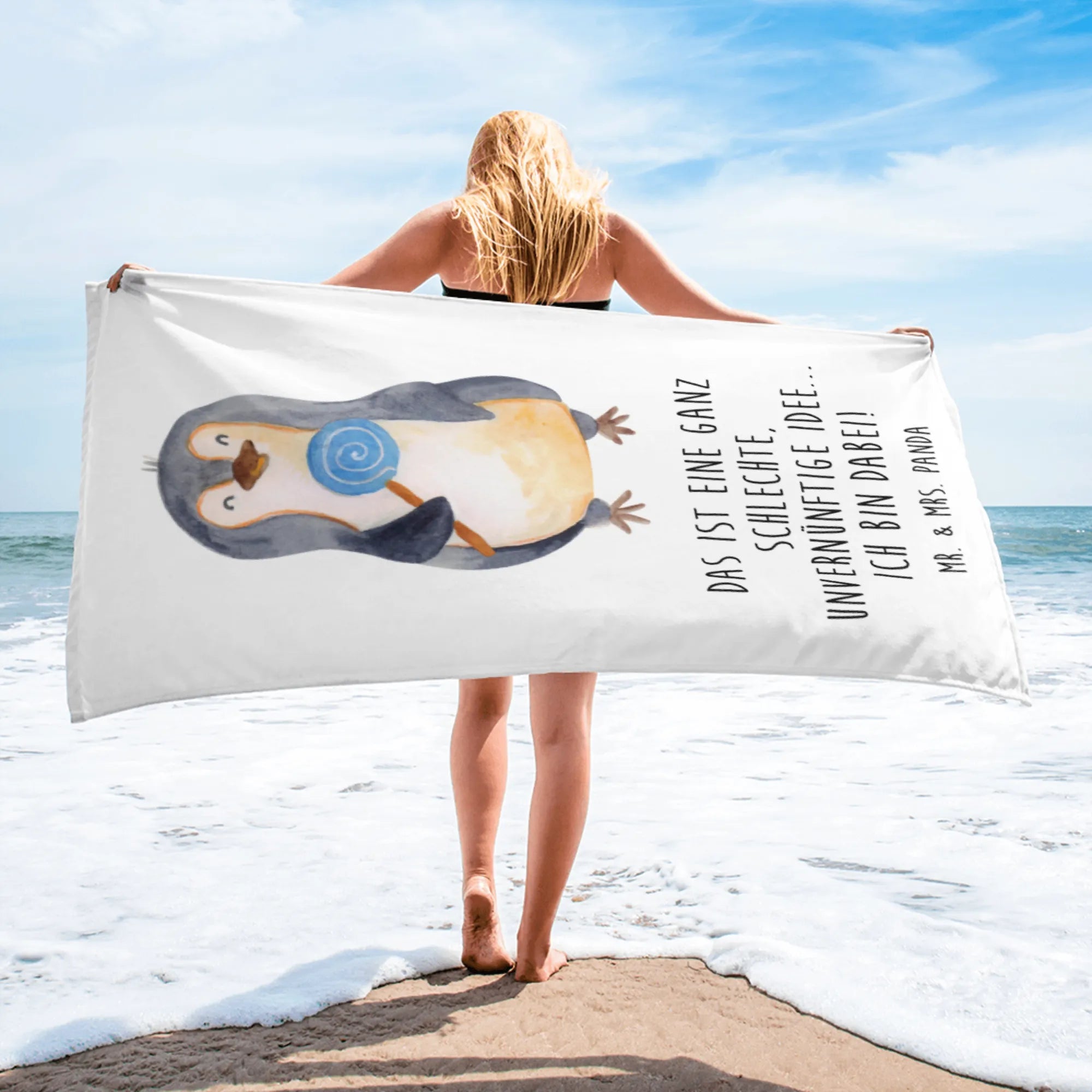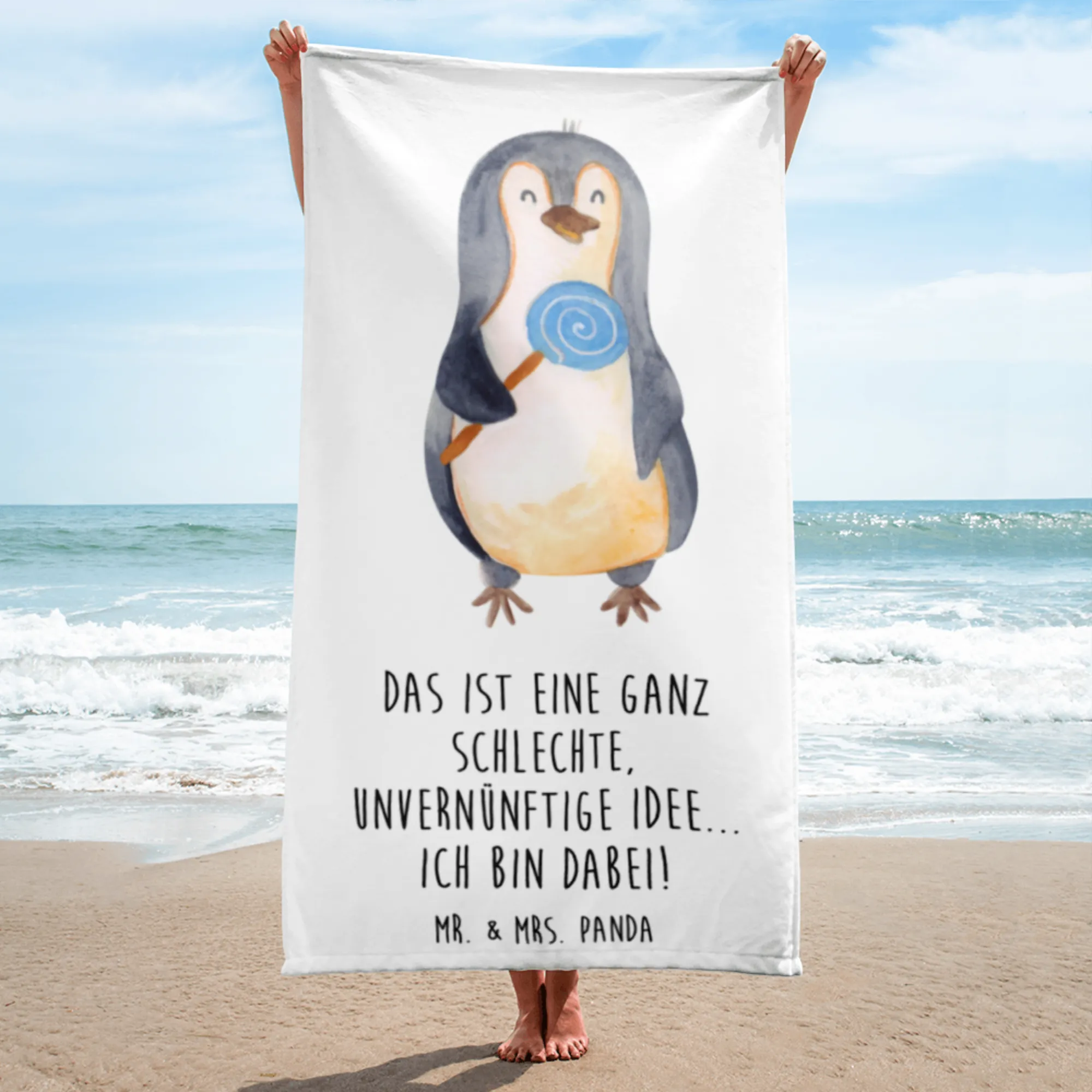 XL ręcznik kąpielowy pingwin lizak - z napisem - Biały