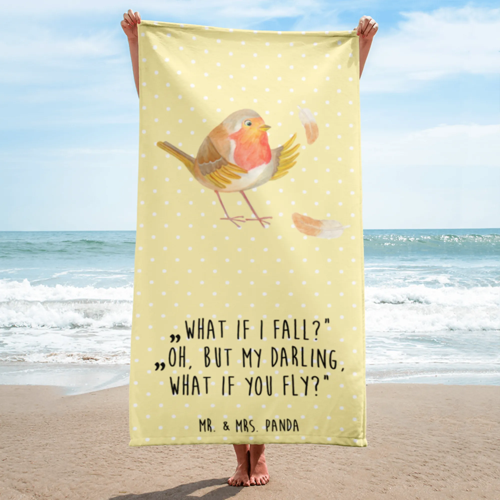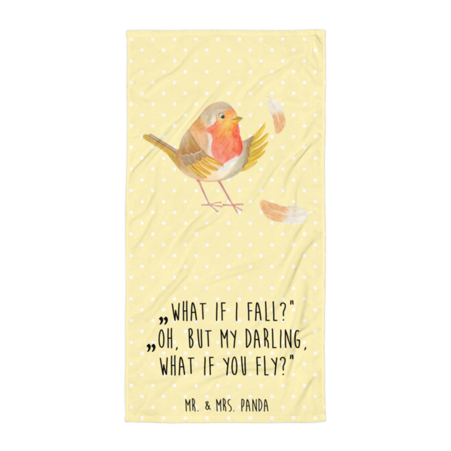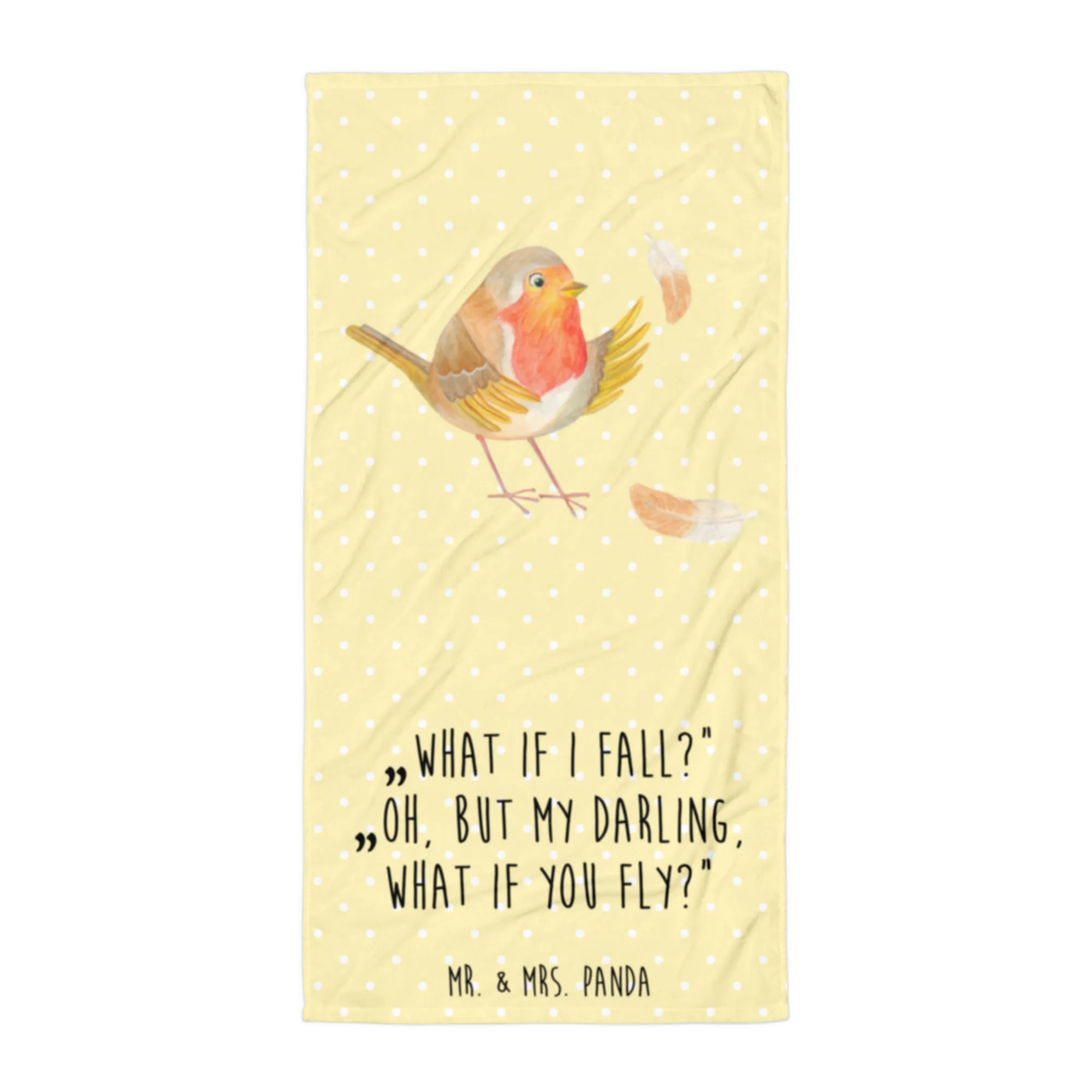 XL ręcznik kąpielowy rudzik Pióra - z napisem - Żółty Pastel
