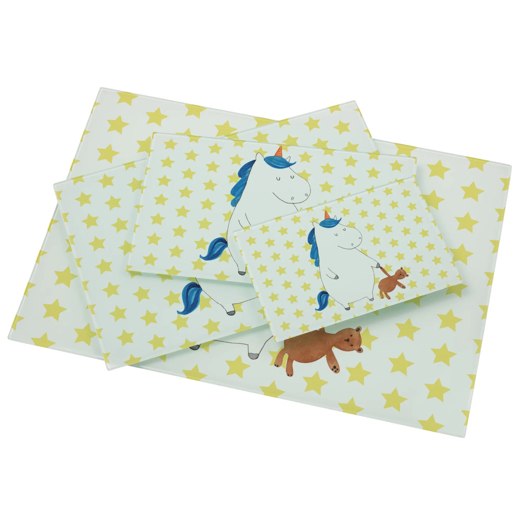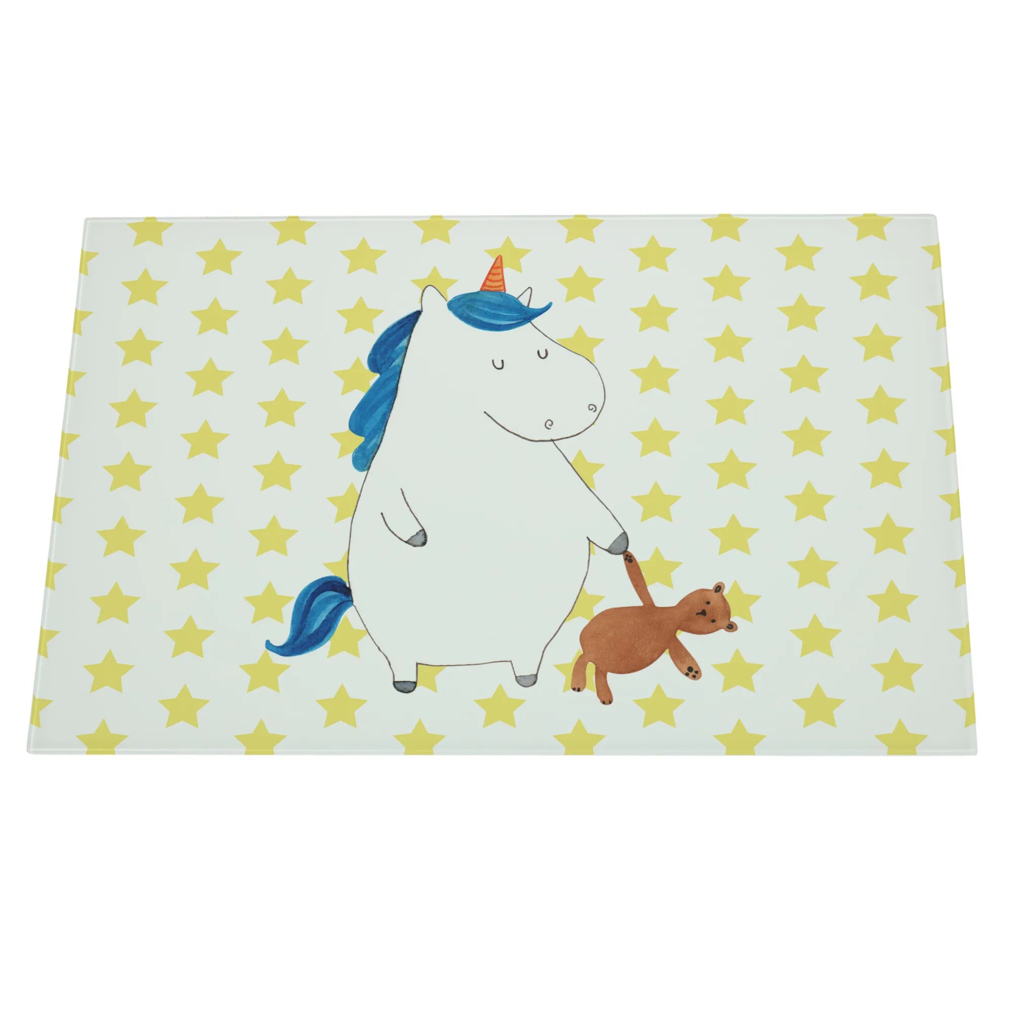 XL Szklana Deska do Krojenia Jednorożec Miś - Średnia szklana deska do krojenia - z napisem - biały