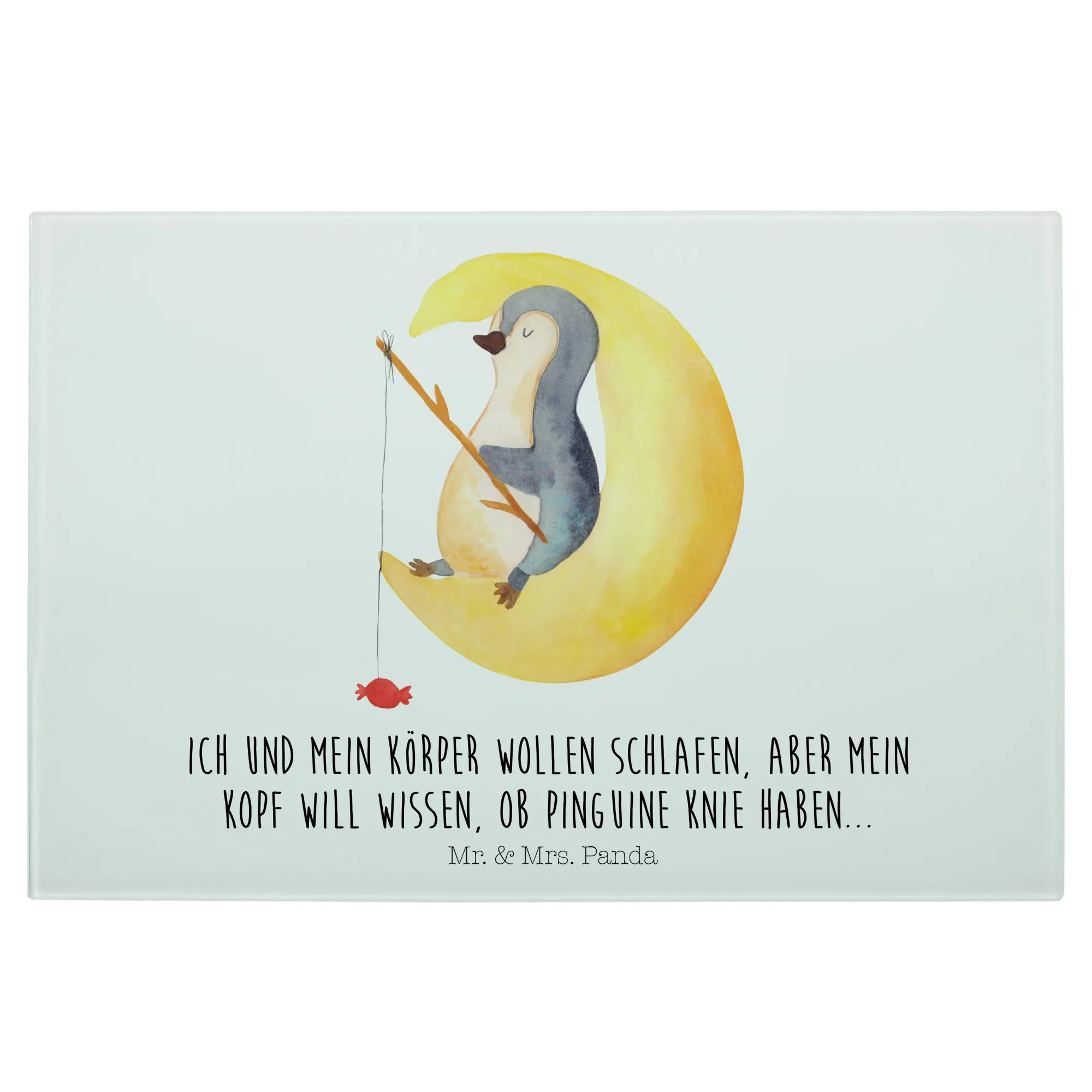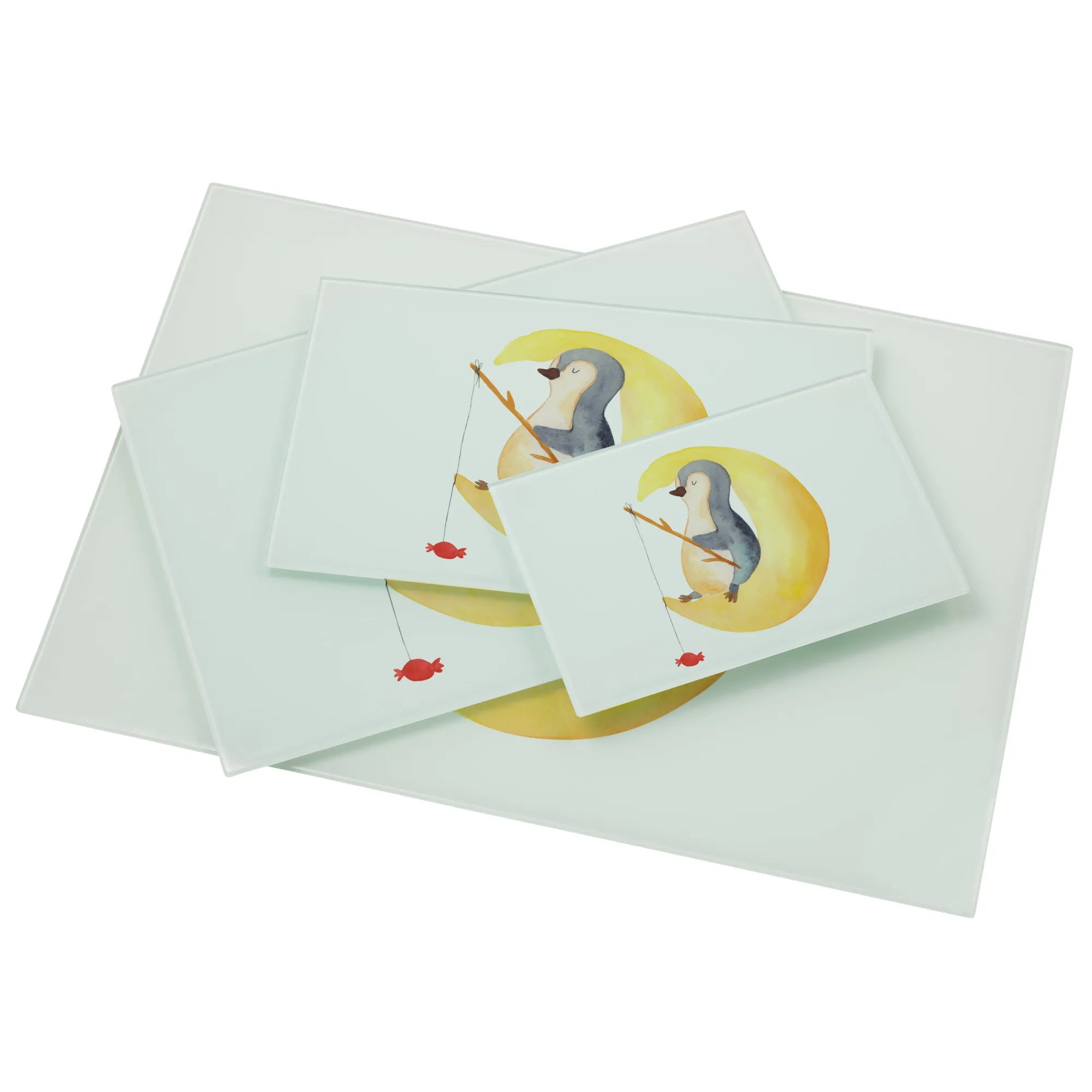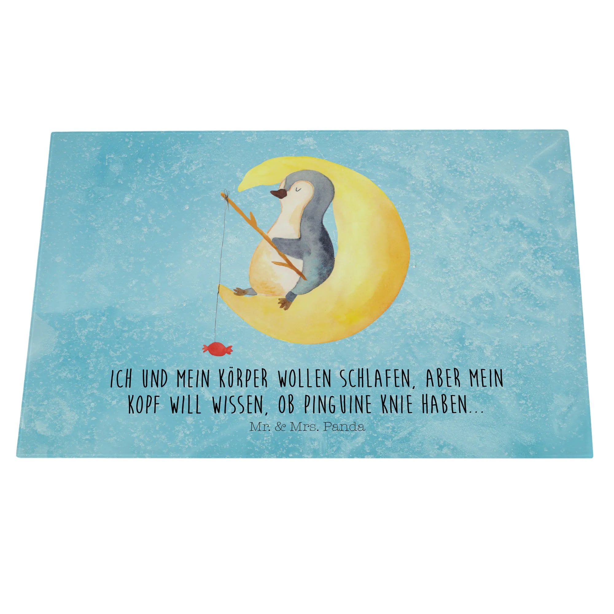 XL Szklana Deska do Krojenia pingwin księżyc - Medium Glas Schneidbrett - z napisem - biały
