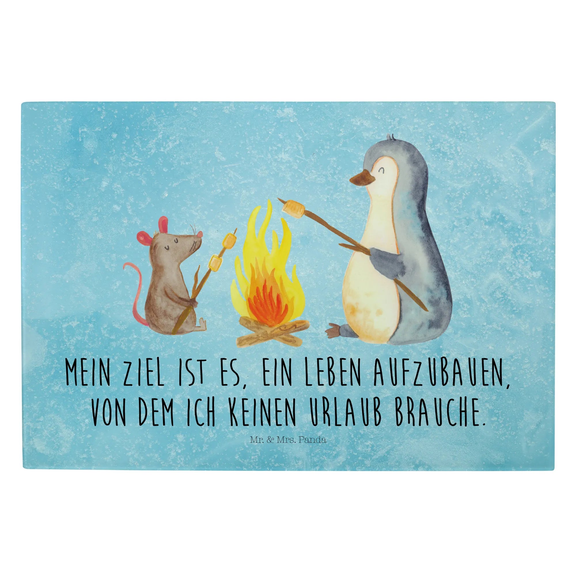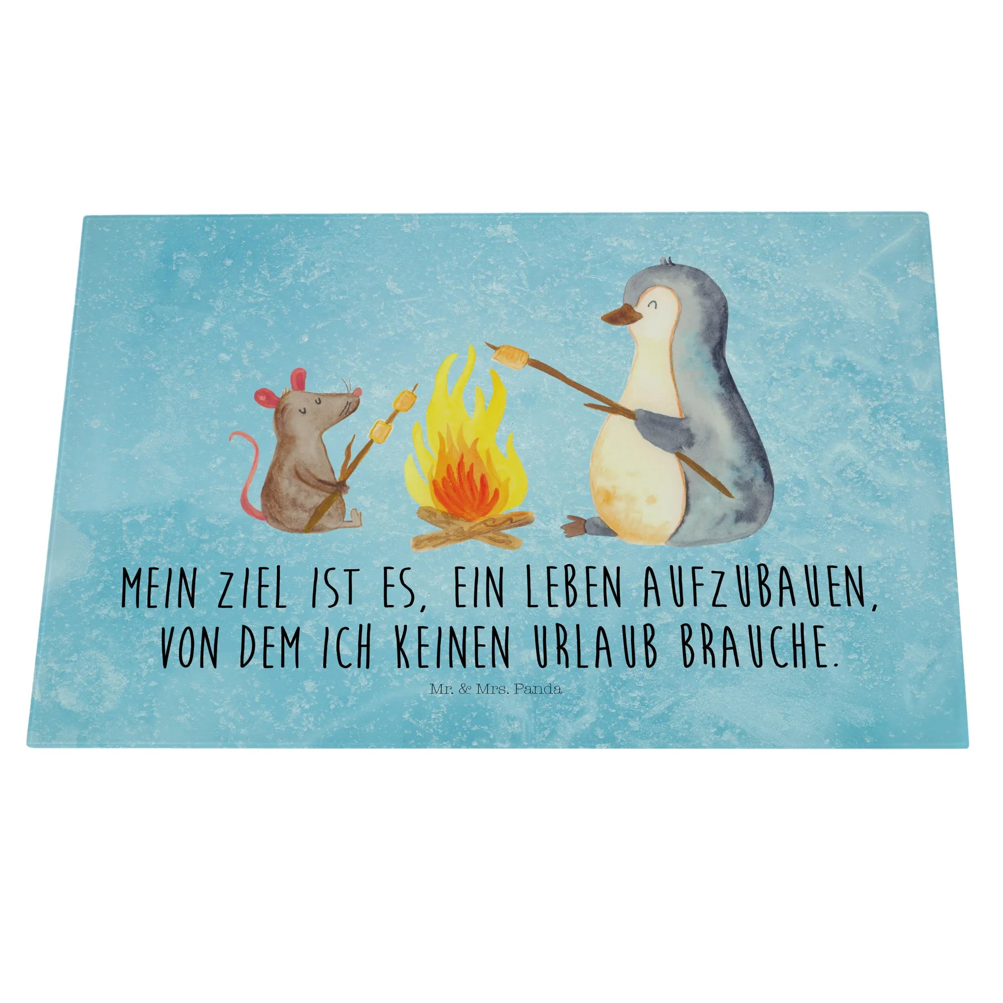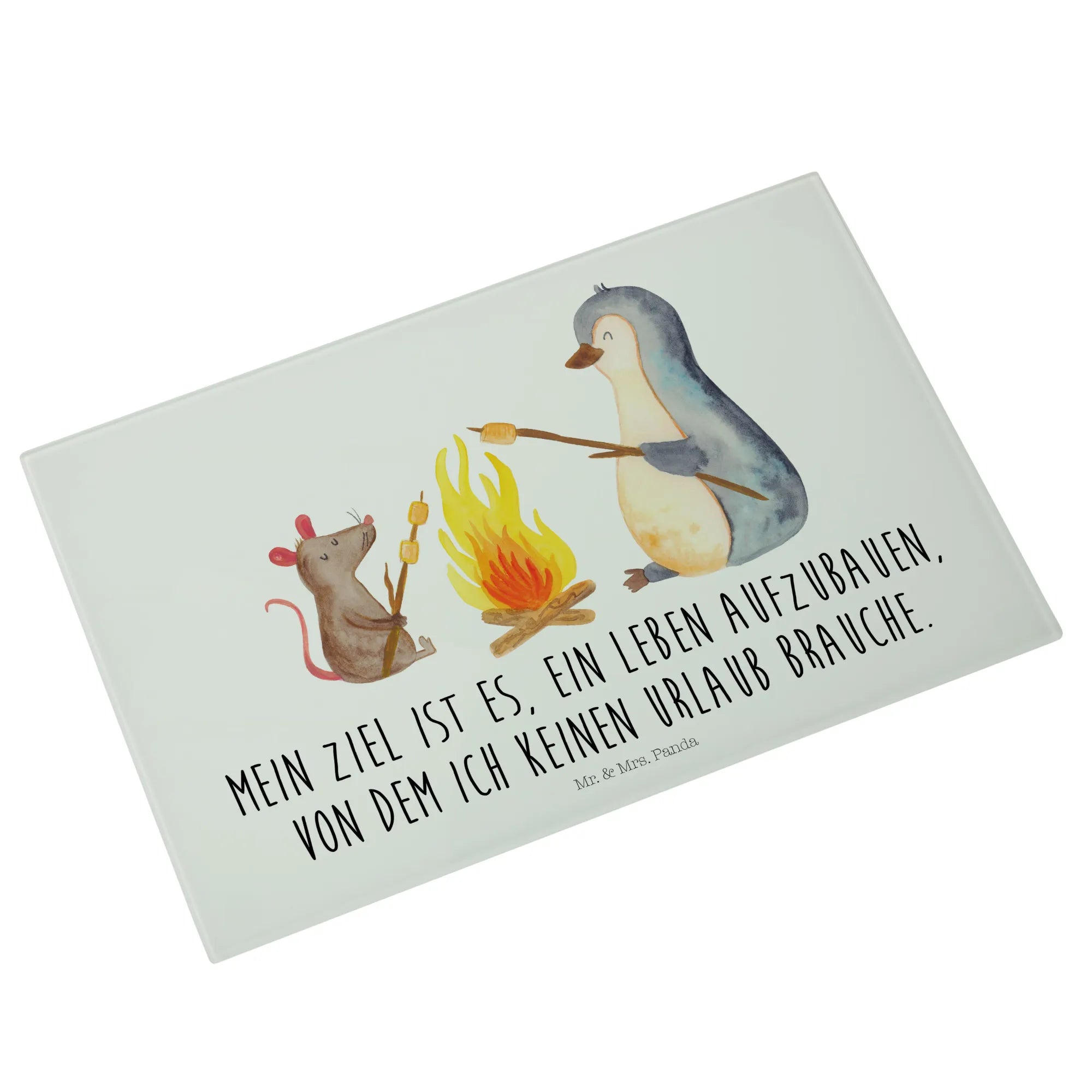XL Szklana Deska do Krojenia pingwin ognisko - Medium Glas Schneidbrett - z napisem - biały