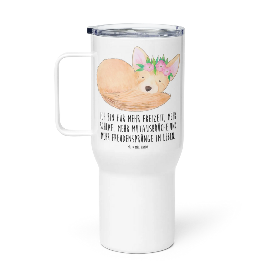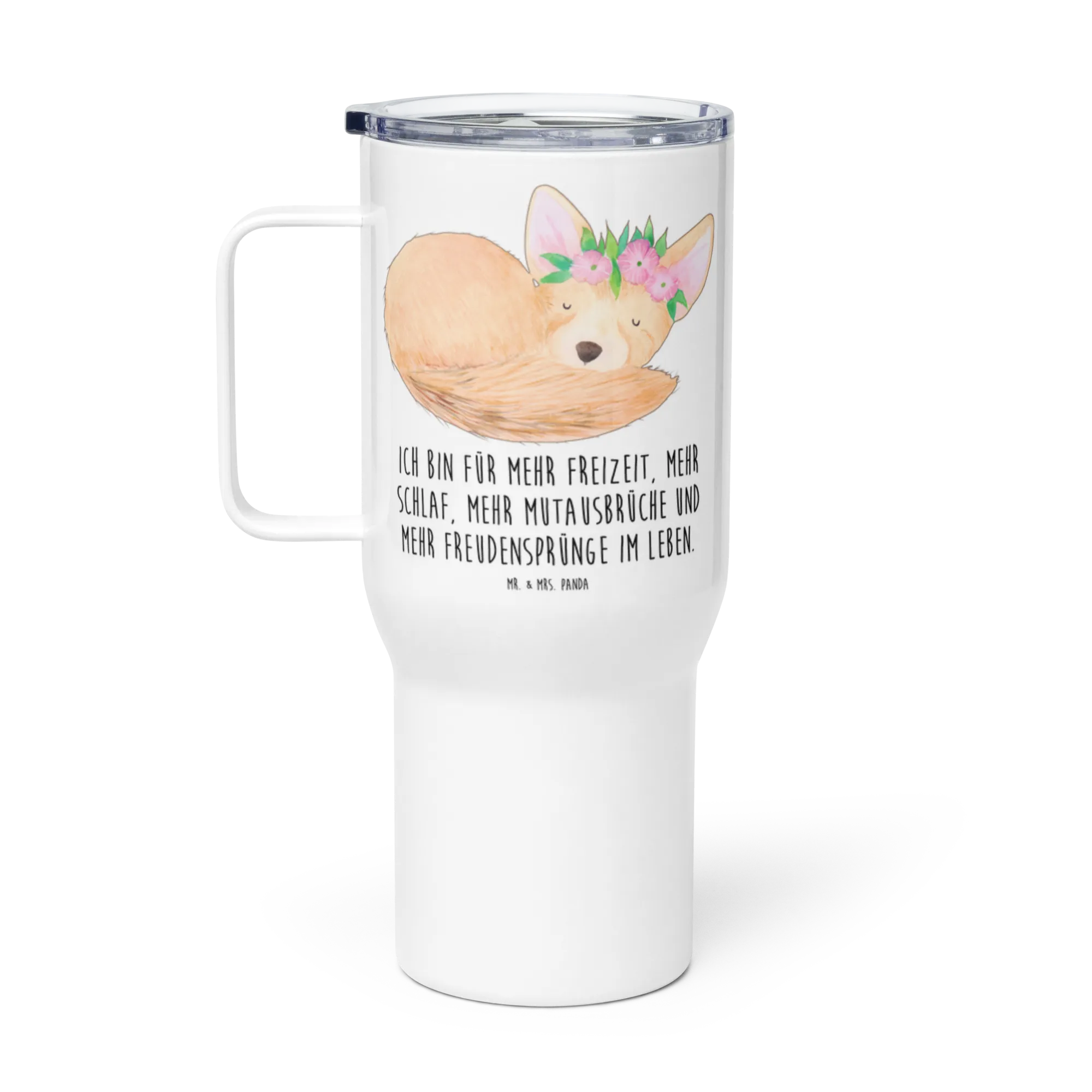 XXL Thermobecher Wüstenfuchs Blumen XL Reisetasse, Jumbo Becher, Autobecher, XL Thermobecher, Großer Thermobecher, Reisebecher, Afrika, Wildtiere, Wüstenfuchs, Blumen, Blumenkranz, Wüste, Glücklich