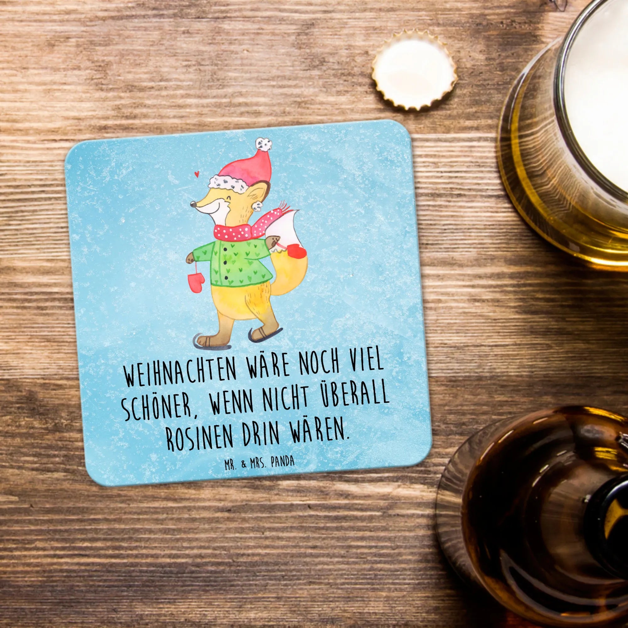Zestaw podkładek lis łyżwy - 6er Set - z napisem - lodowoniebieski