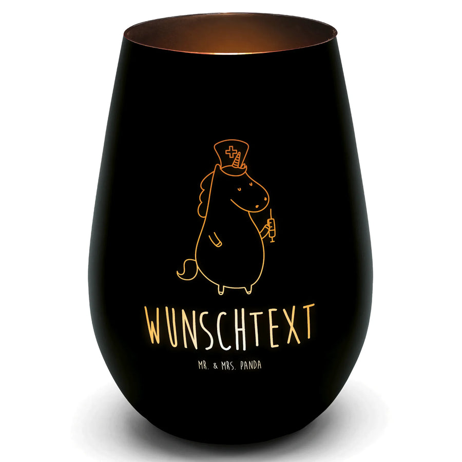 Złoty świecznik spersonalizowany Jednorożec Pielęgniarka - Czarny