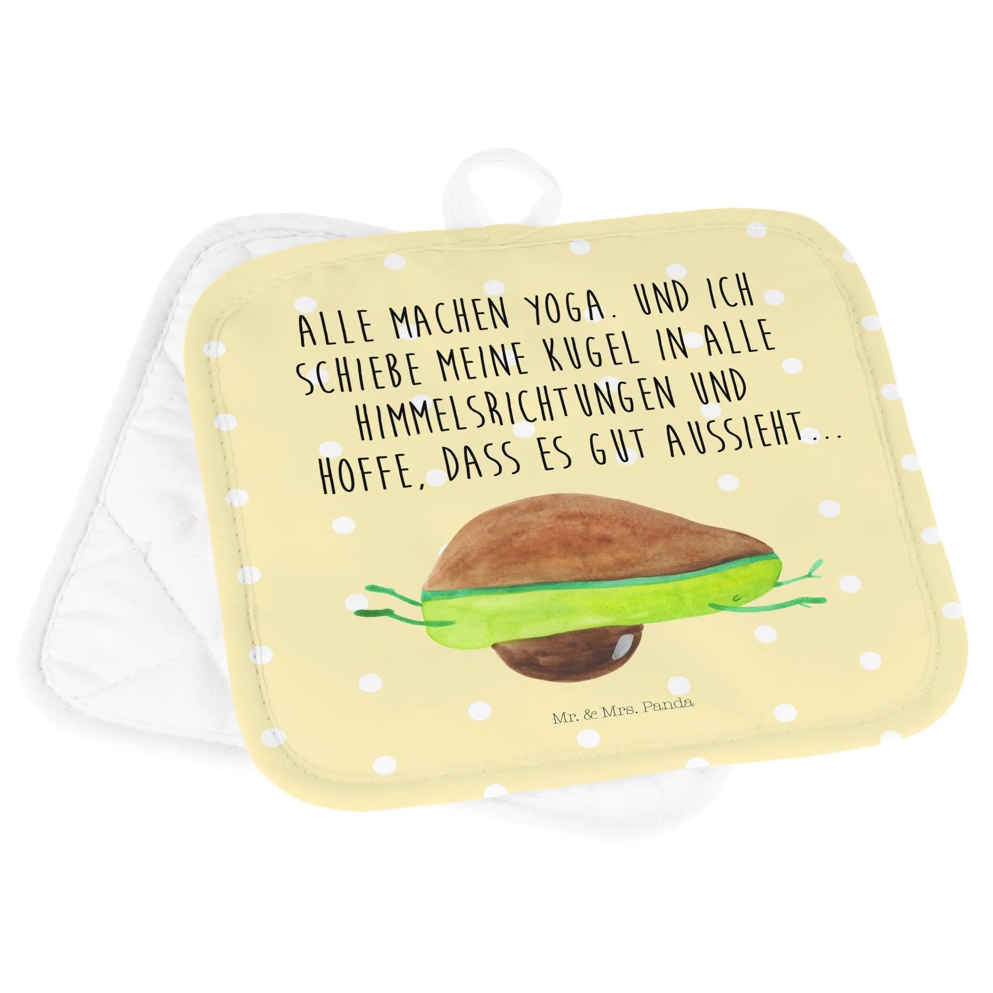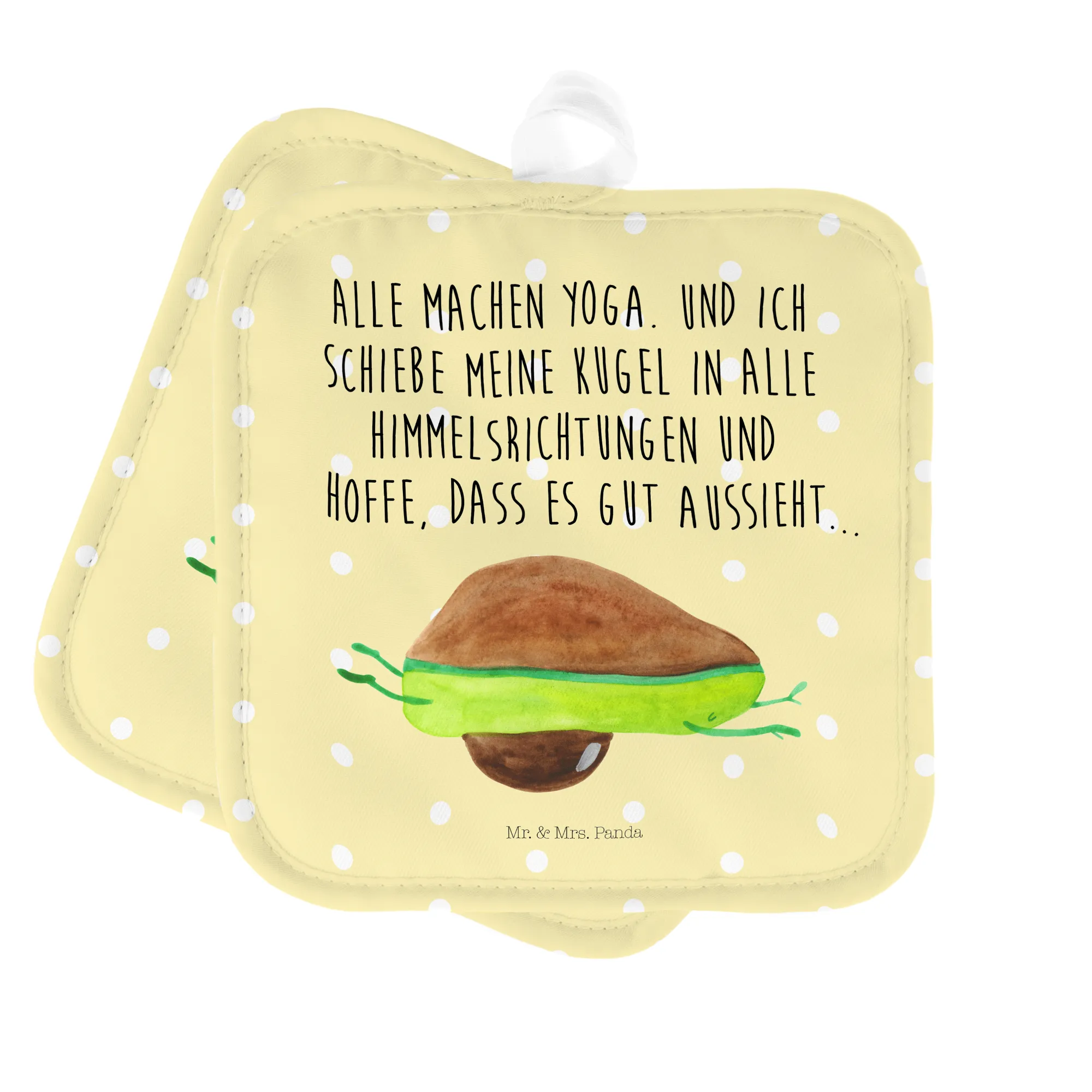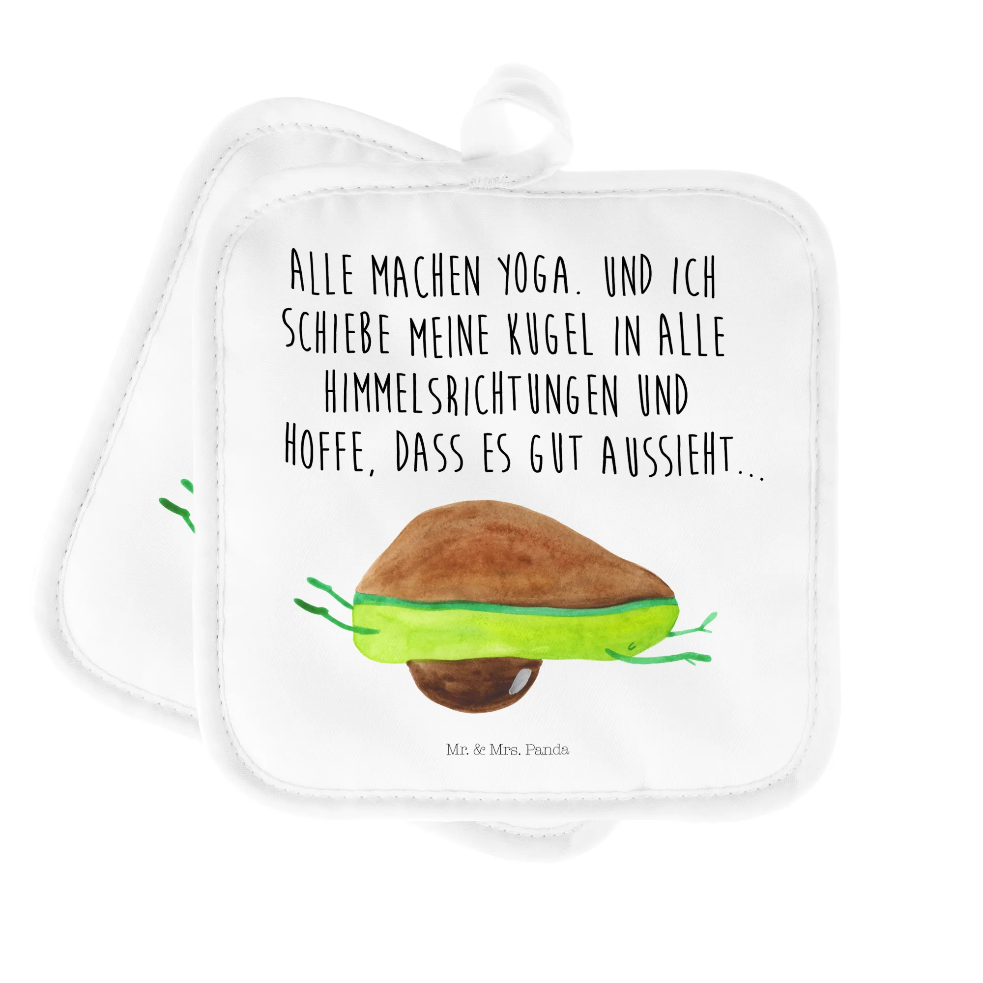 2er Set Topflappen Avocado Yoga - mit Spruch - Weiß