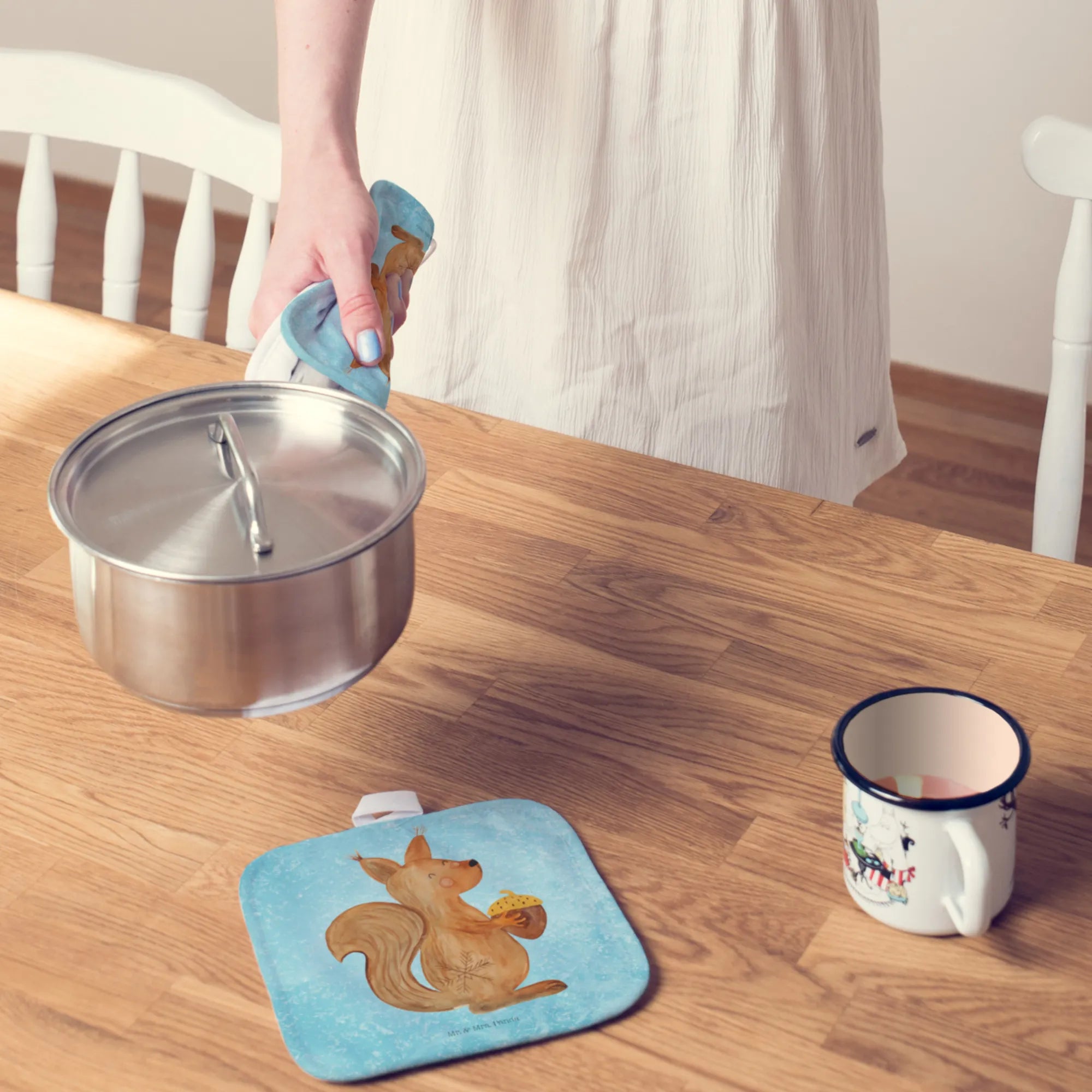 Entdecke die zauberhafte Winterkollektion von Mr. & Mrs. Panda mit dem 2er Set Topflappen 'Eichhörnchen Weihnachtszeit'. Perfekt für diese magische Zeit des Jahres, in der der Duft von frisch gebackenen Plätzchen in der Luft liegt und die Vorfreude auf Weihnachten die Herzen erwärmt. Diese hübschen Topflappen sind nicht nur funktional, sondern auch ein tolles Deko-Element für deine Küche!