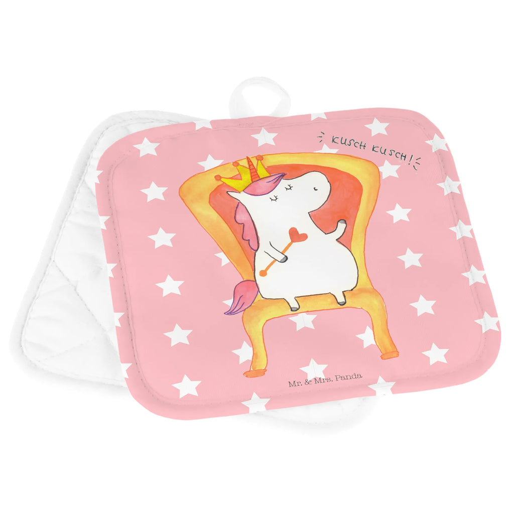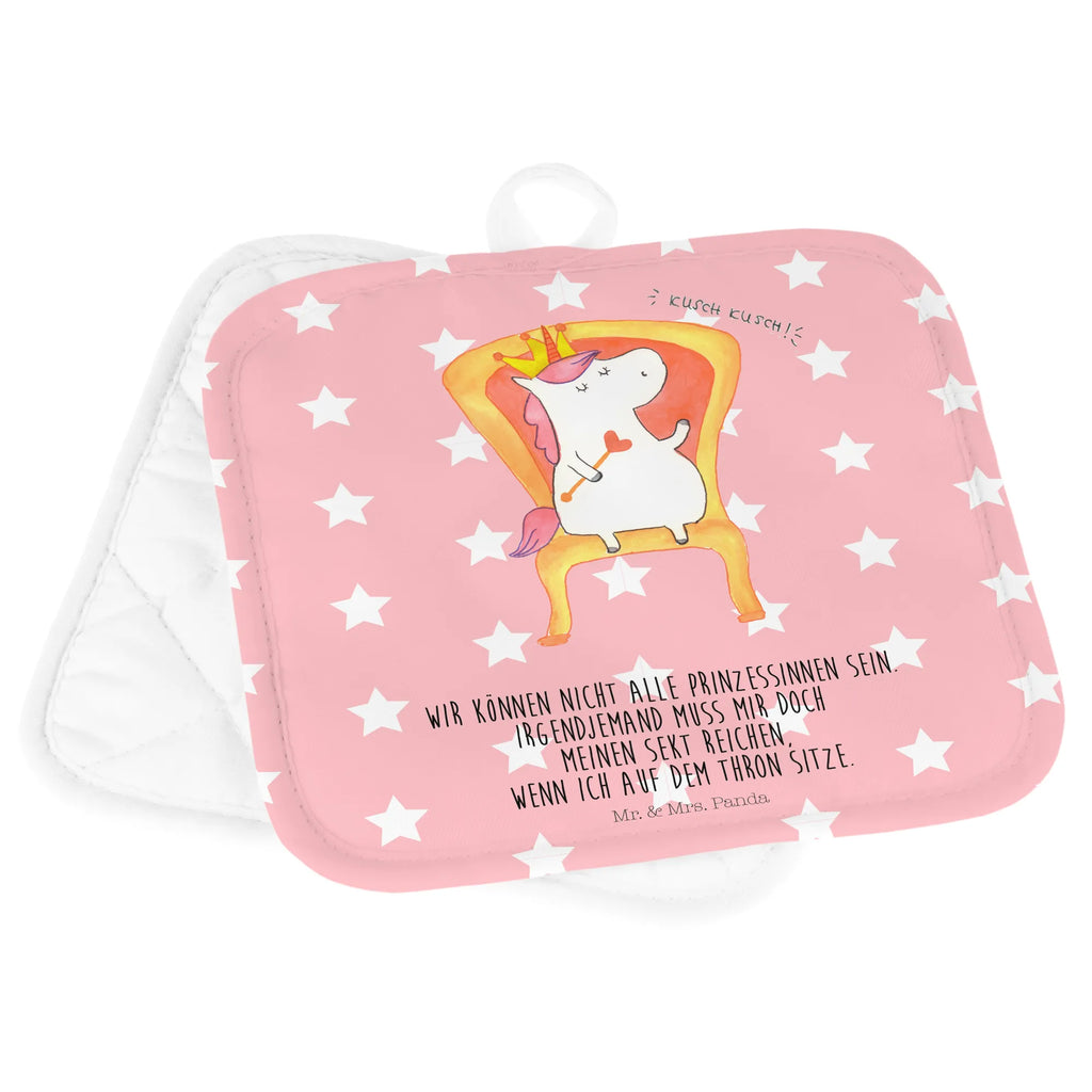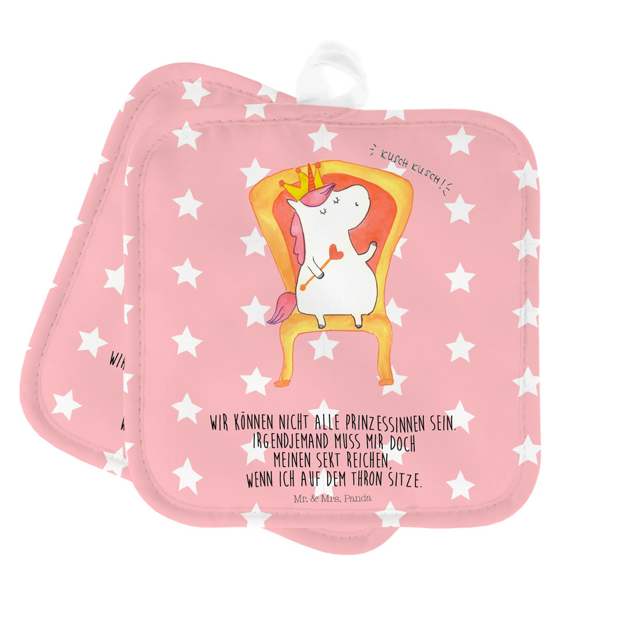 2er Set Topflappen Einhorn König - mit Spruch - Rot Pastell