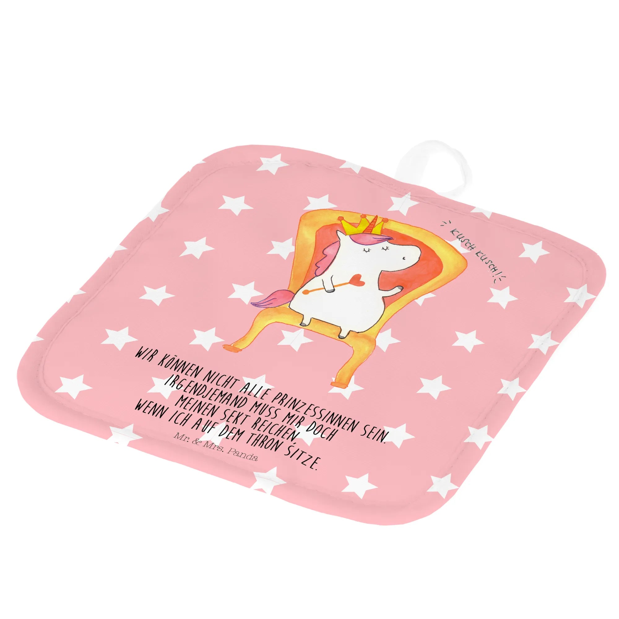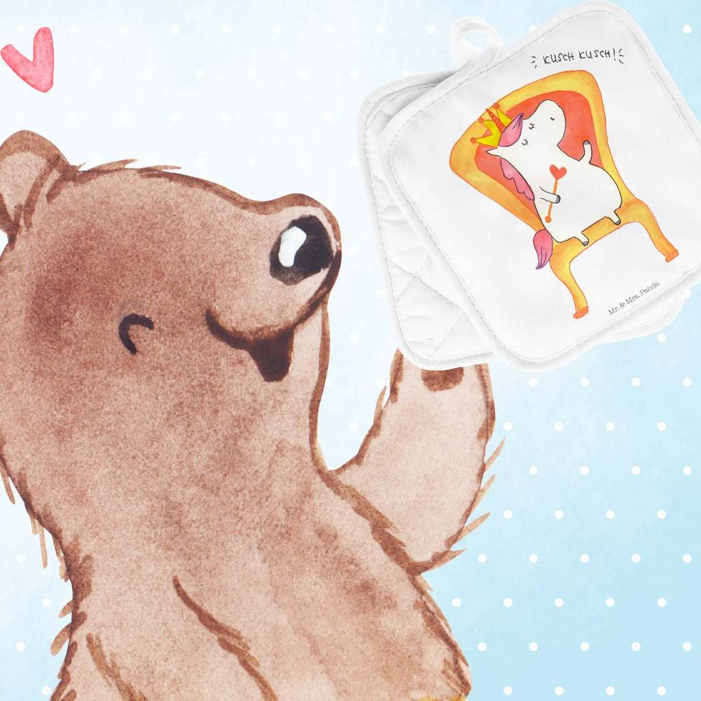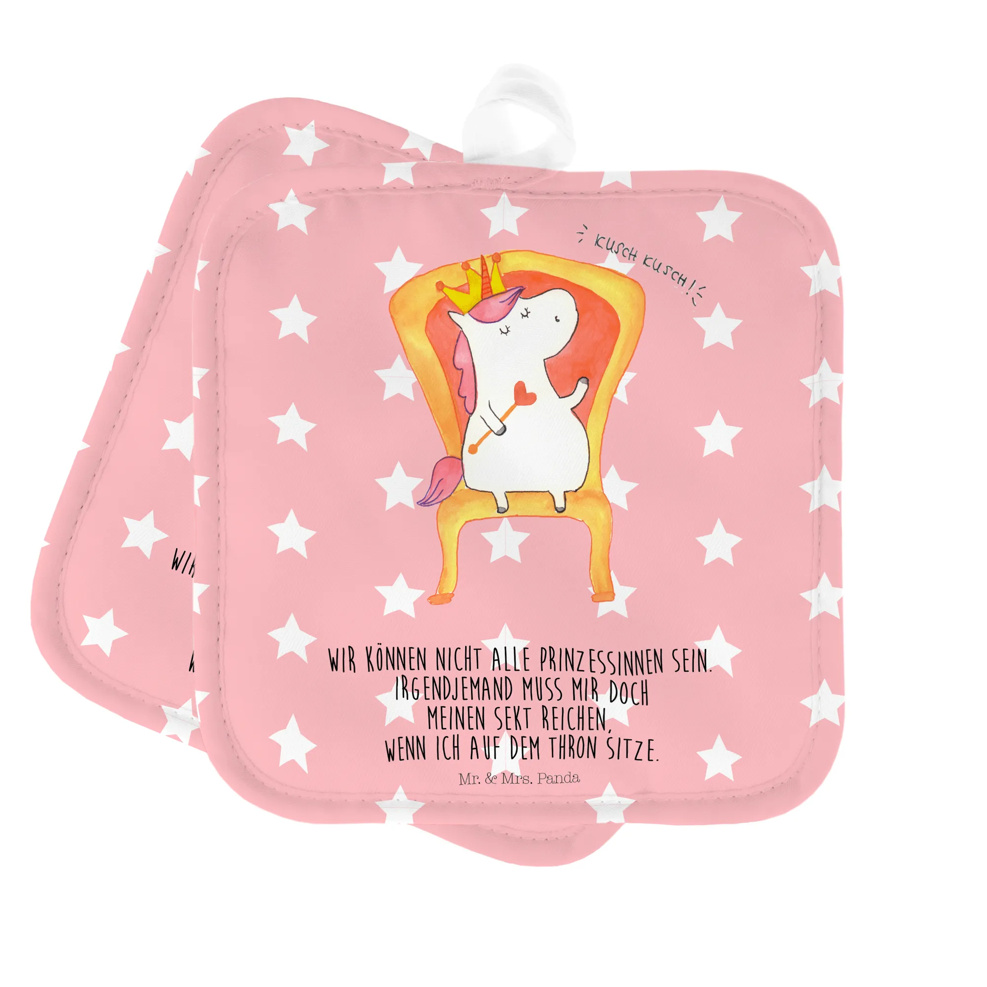 2er Set Topflappen Einhorn König - mit Spruch - Rot Pastell