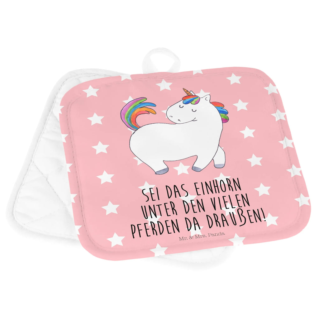 2er Set Topflappen Einhorn Stolzieren - mit Spruch - Rot Pastell