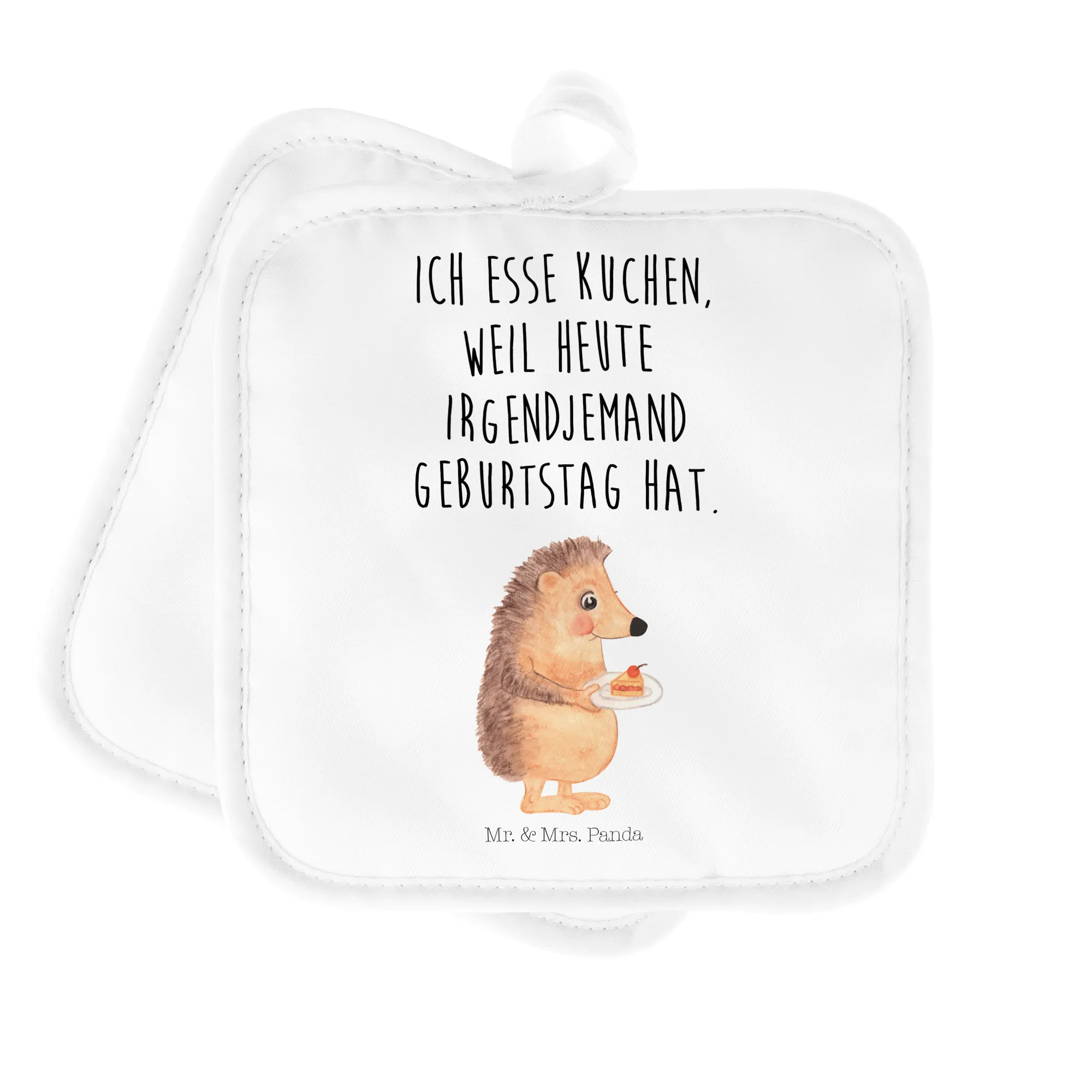 2er Set Topflappen Igel Kuchenstück - mit Spruch - Weiß