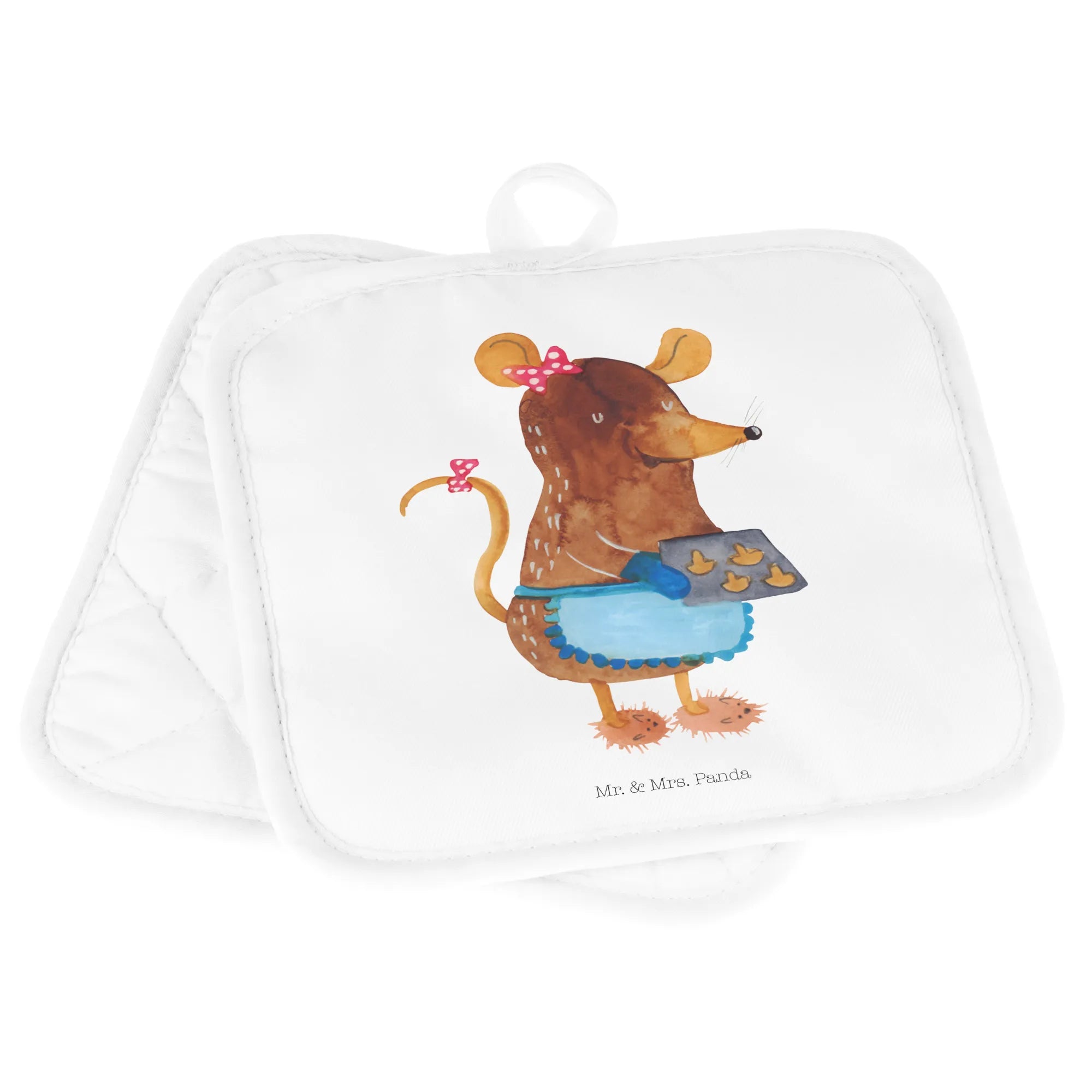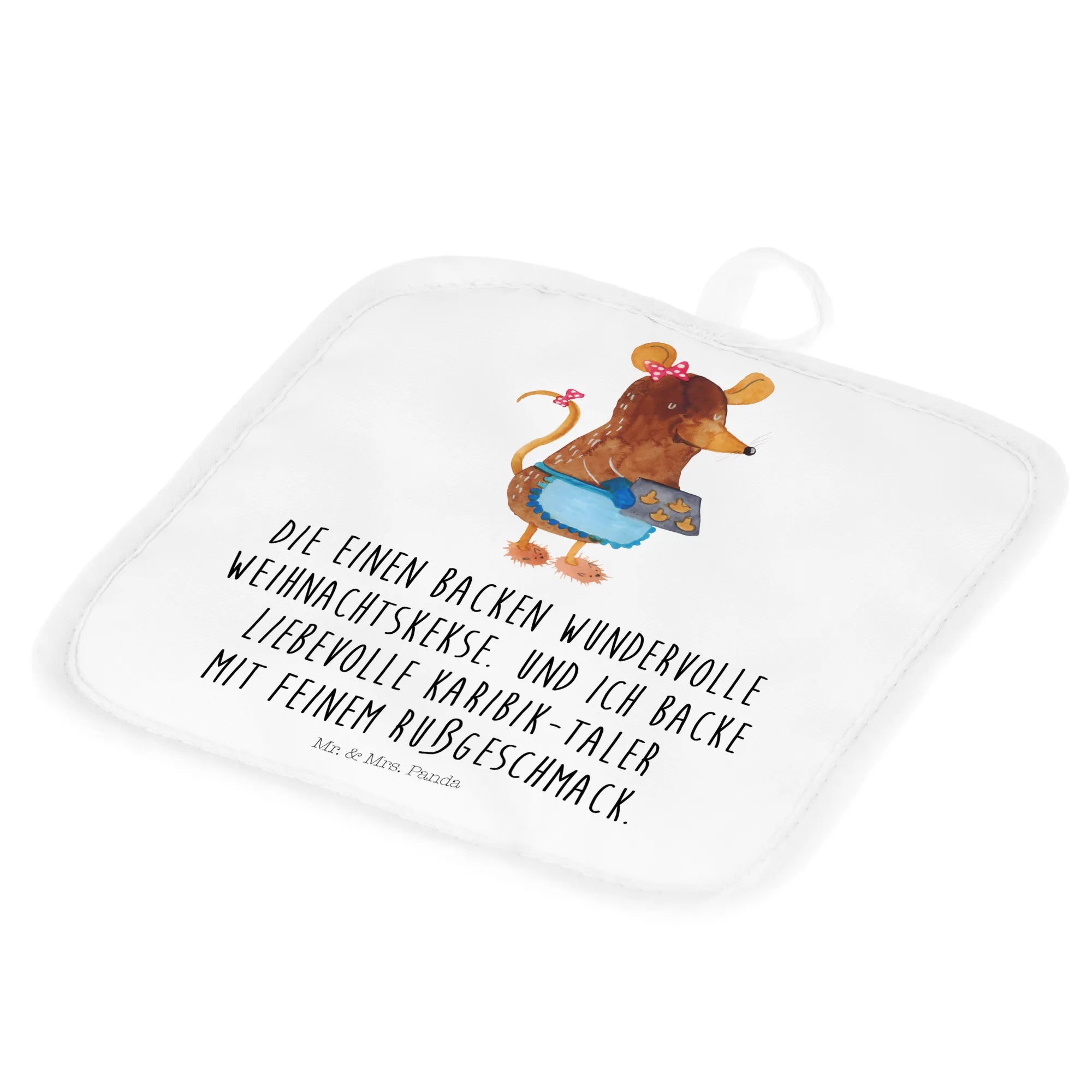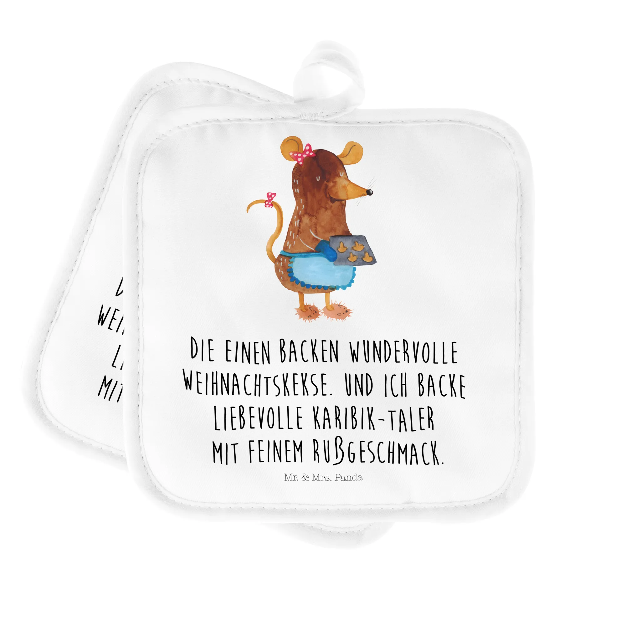 2er Set Topflappen Maus Kekse - mit Spruch - Weiß