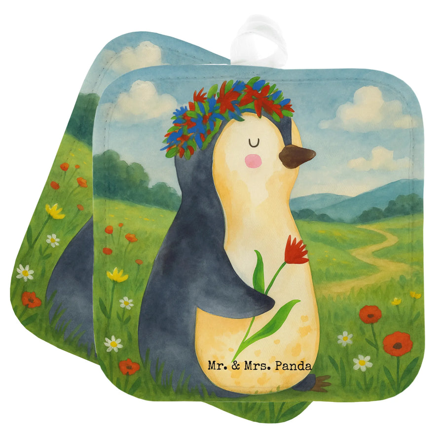 2er Set Topflappen Pinguin Blumen Design